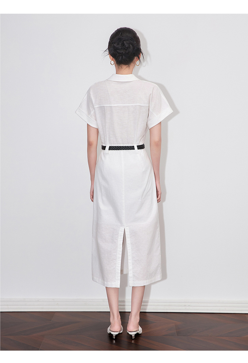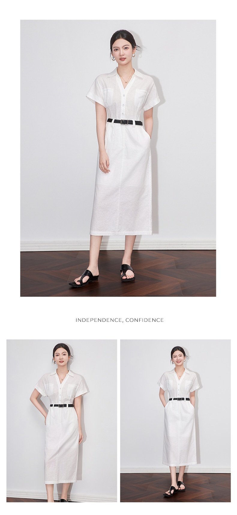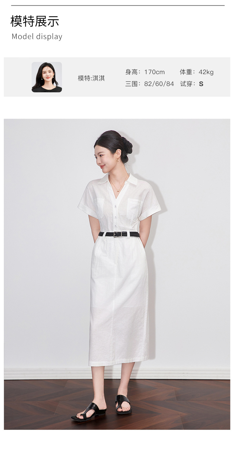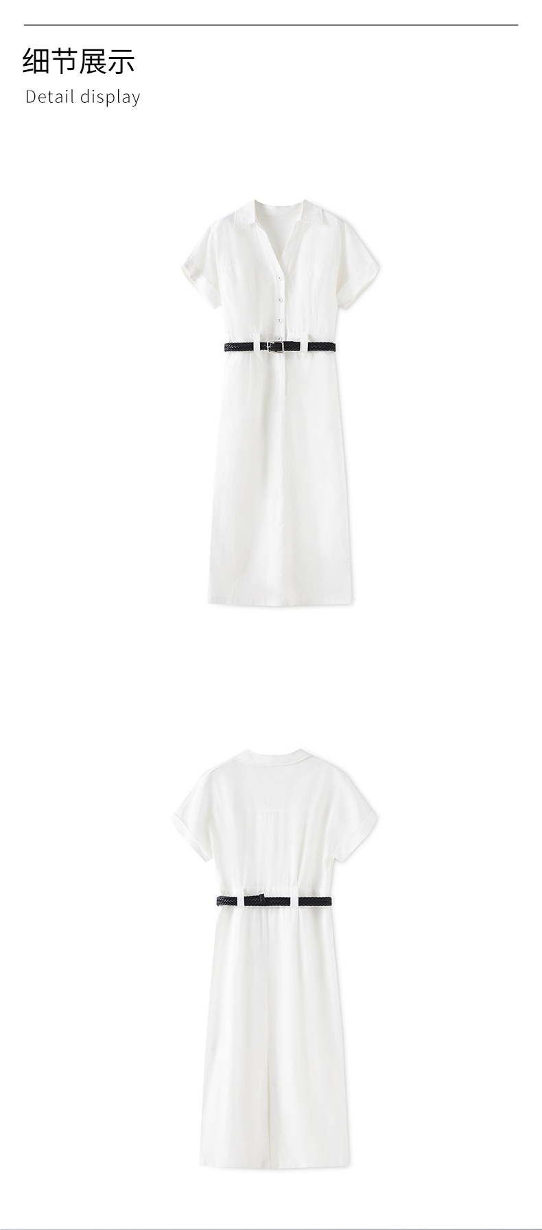 「高货wl」全新升级【铂金会员367/天猫499/差价132】(43421)洛诗琳气质法式亚麻衬衫裙2025夏季知性通勤收腰连衣裙女