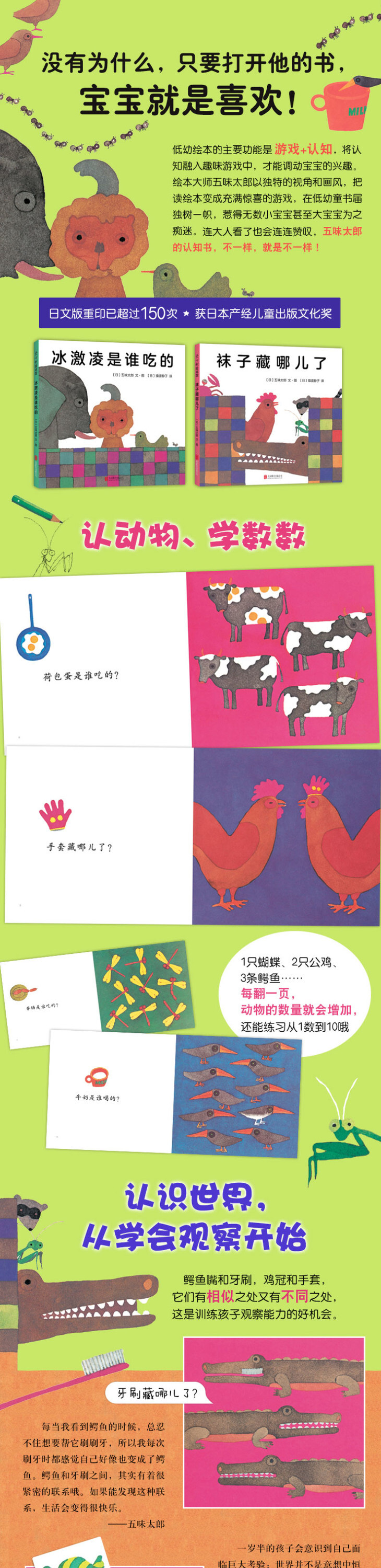 五味太郎观察力绘本4册套装(小金鱼逃走了+小牛的春天+冰激凌是谁吃的+袜子藏哪儿了)