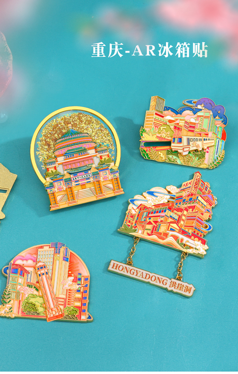 【重庆AR可动金属冰箱贴】解放碑洪崖洞李子坝长江索道城市旅游纪念品冰箱贴金属贴