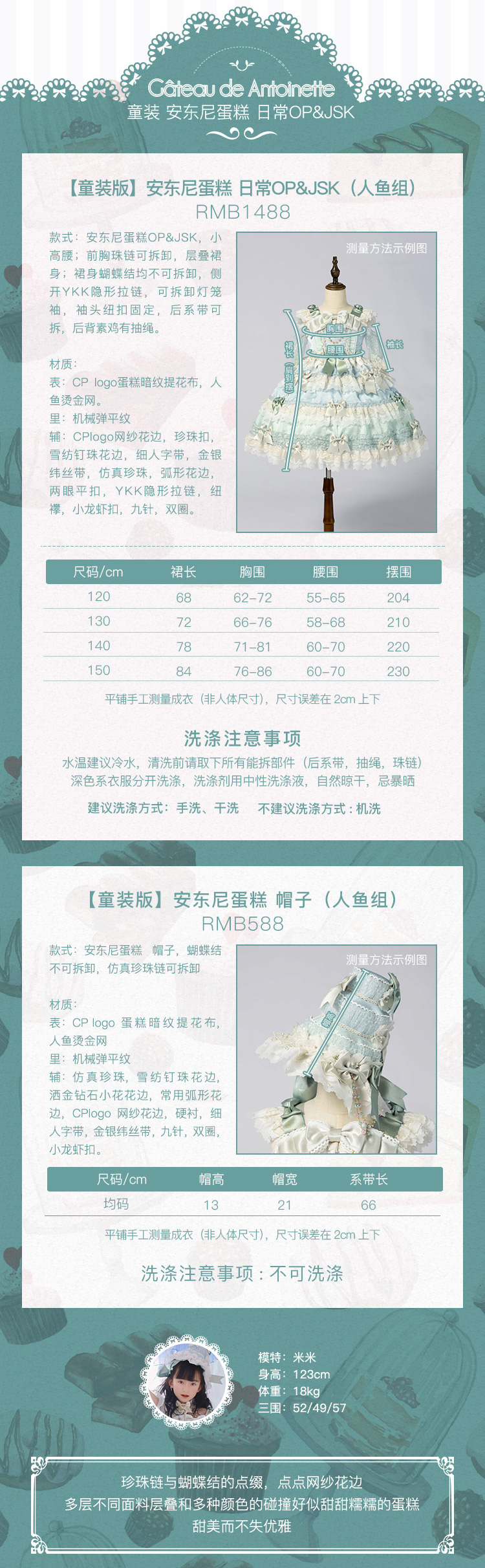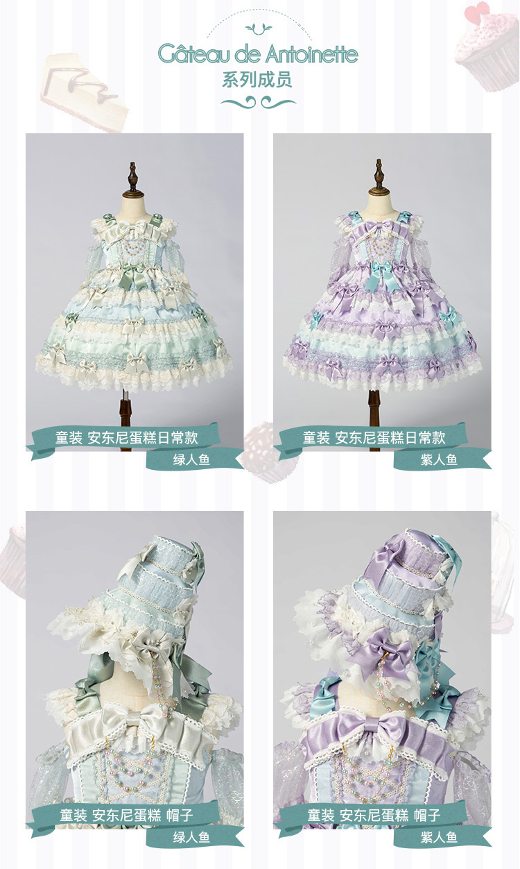 【再贩,全款预售】童装 安东尼蛋糕日常OP 绿人鱼/紫人鱼 古典玩偶 Lolita