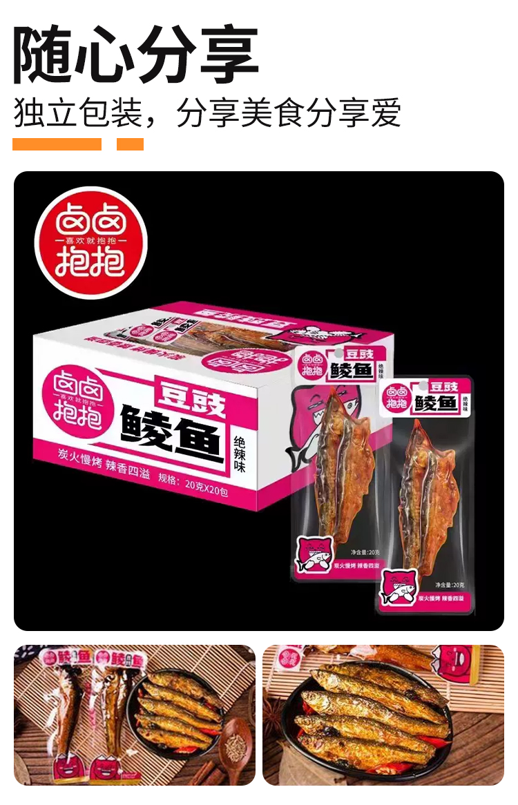 【新品尝鲜】卤卤抱抱香辣味豆豉鲮鱼400g/盒 休闲即食特产小鱼干