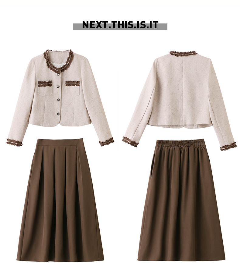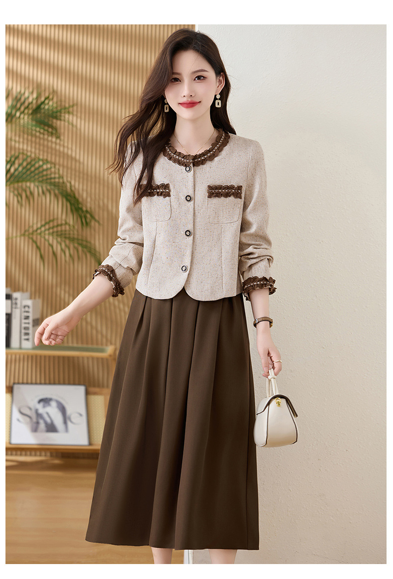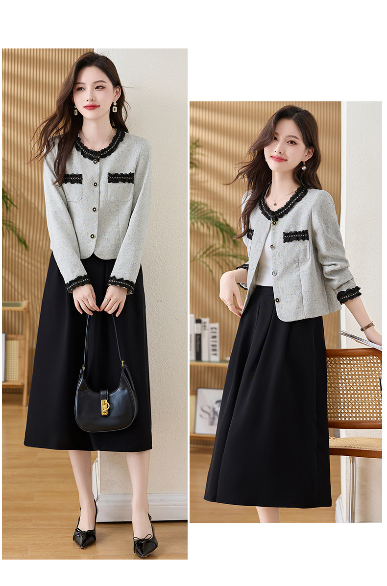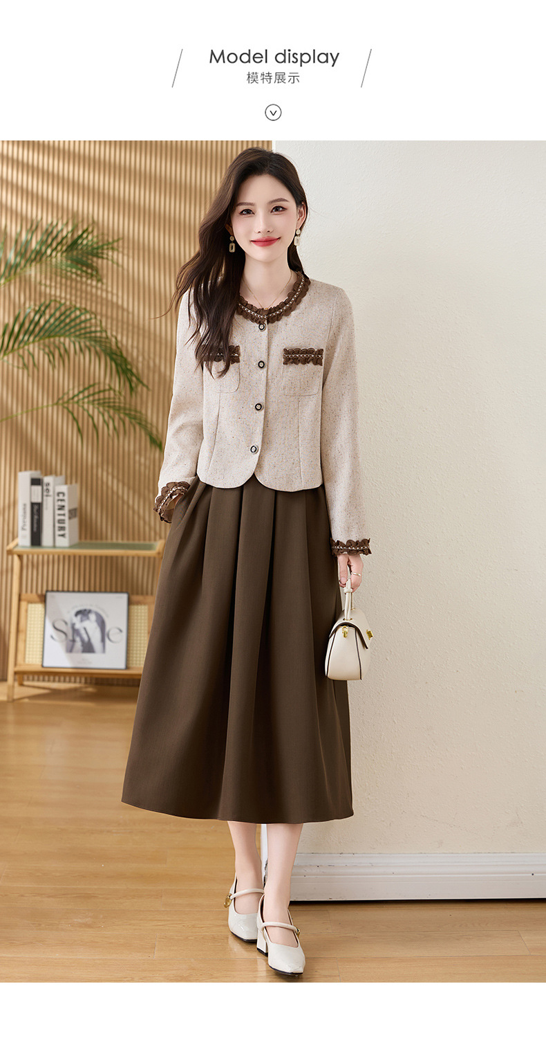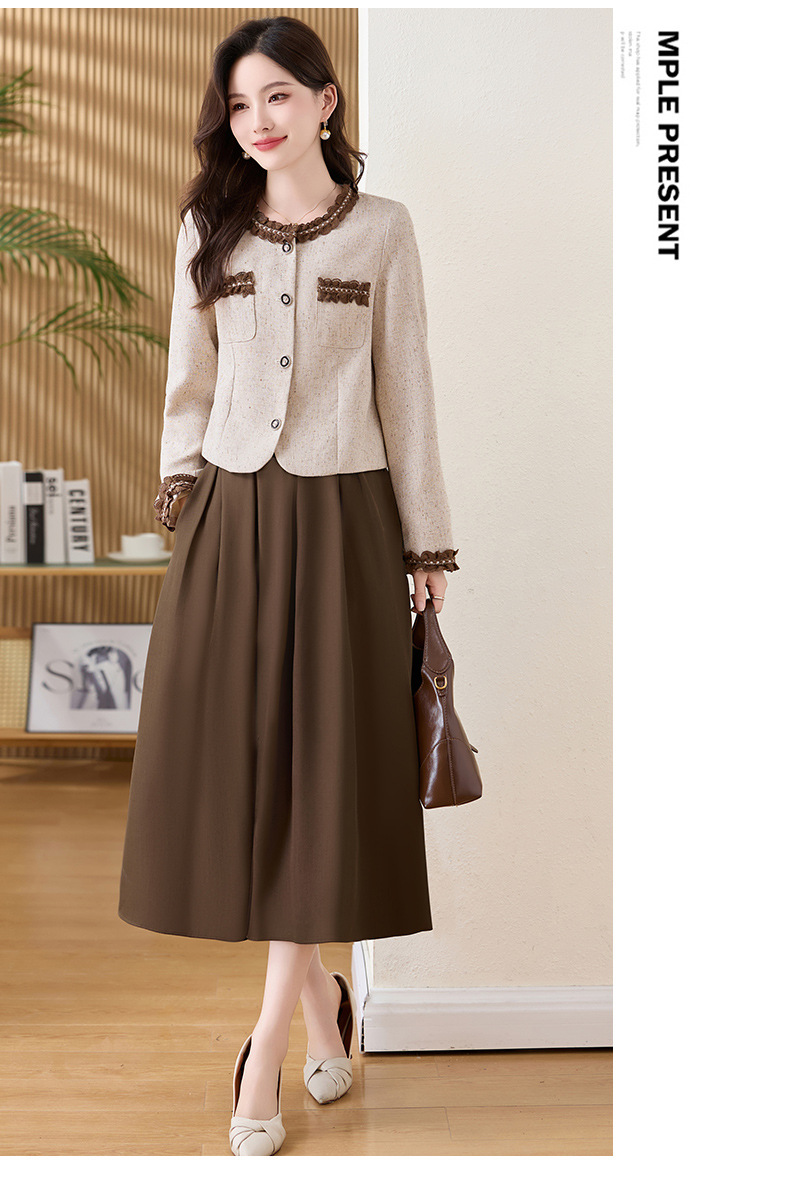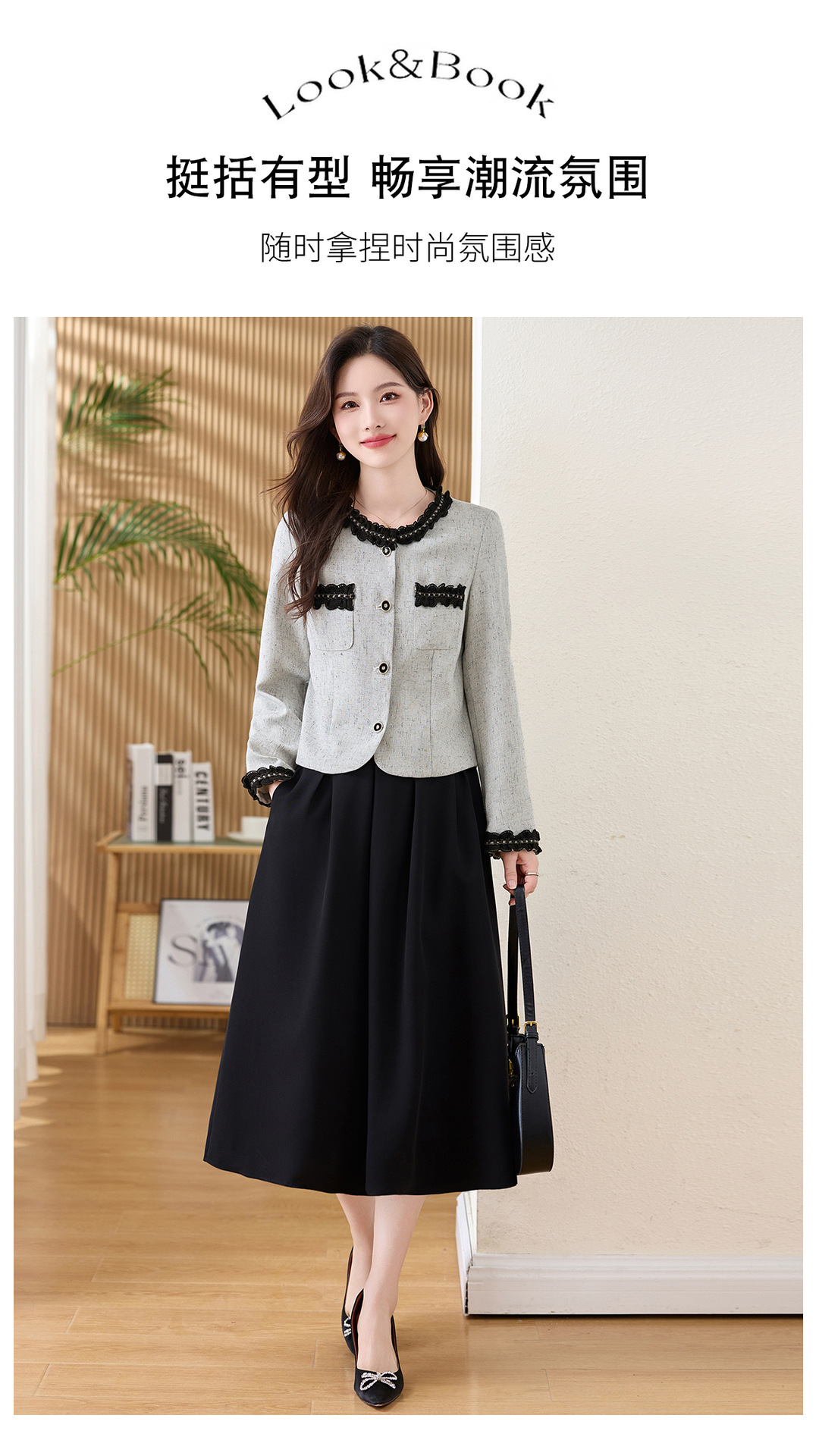 新款套装裙优雅小香风短款外套A字半身裙气质显瘦连衣裙XBL8512
