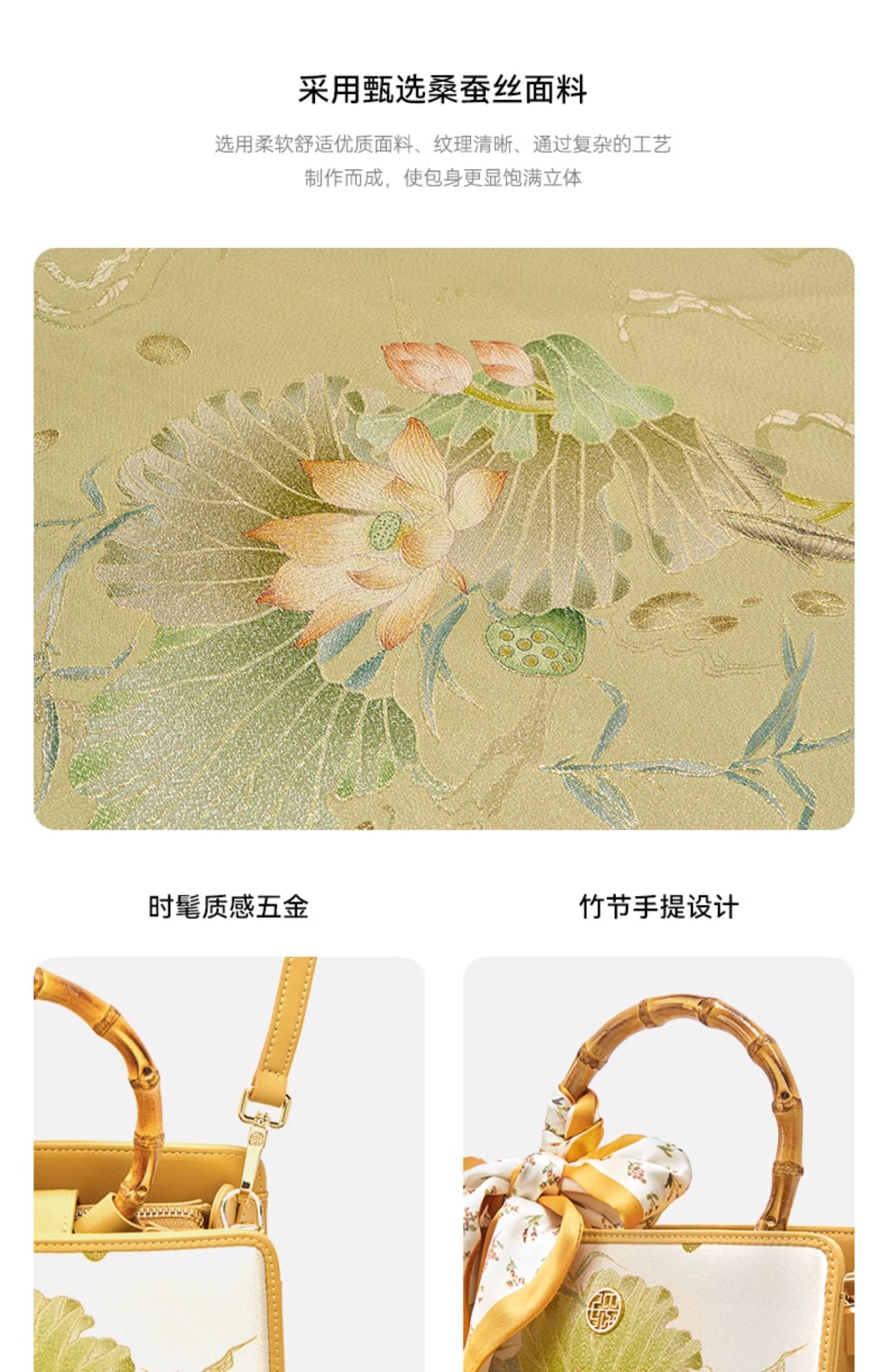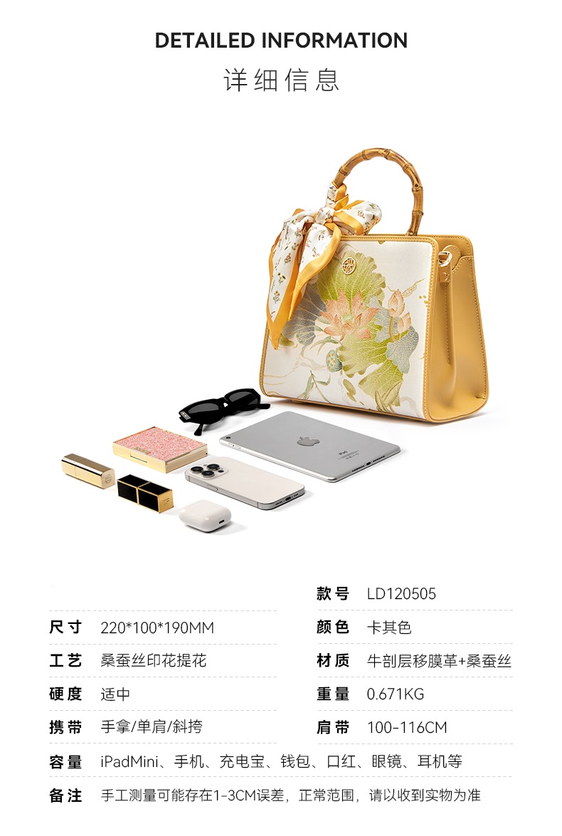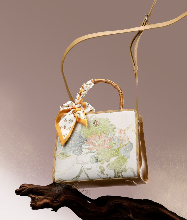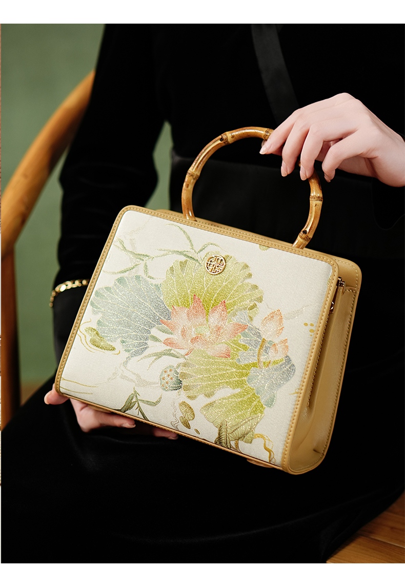 新中式国风桑蚕丝印花提花工艺,高级感单肩斜挎手提包TX-LD120505