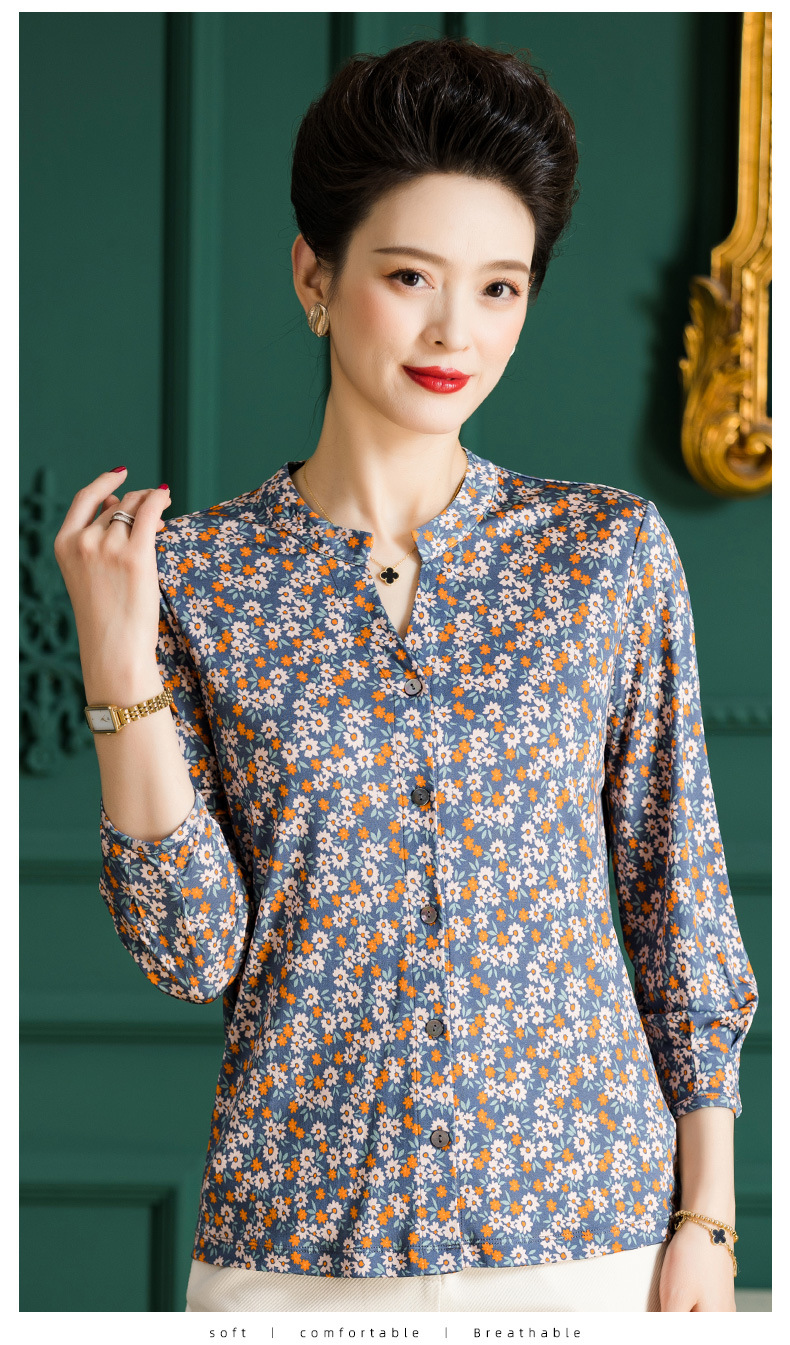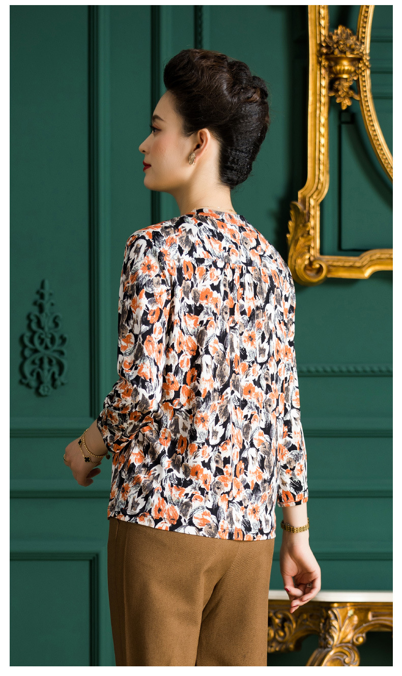 丁摩 印花桑蚕丝上衣圆领显瘦针织衬衫重磅真丝外搭上衣4ZF-F3365