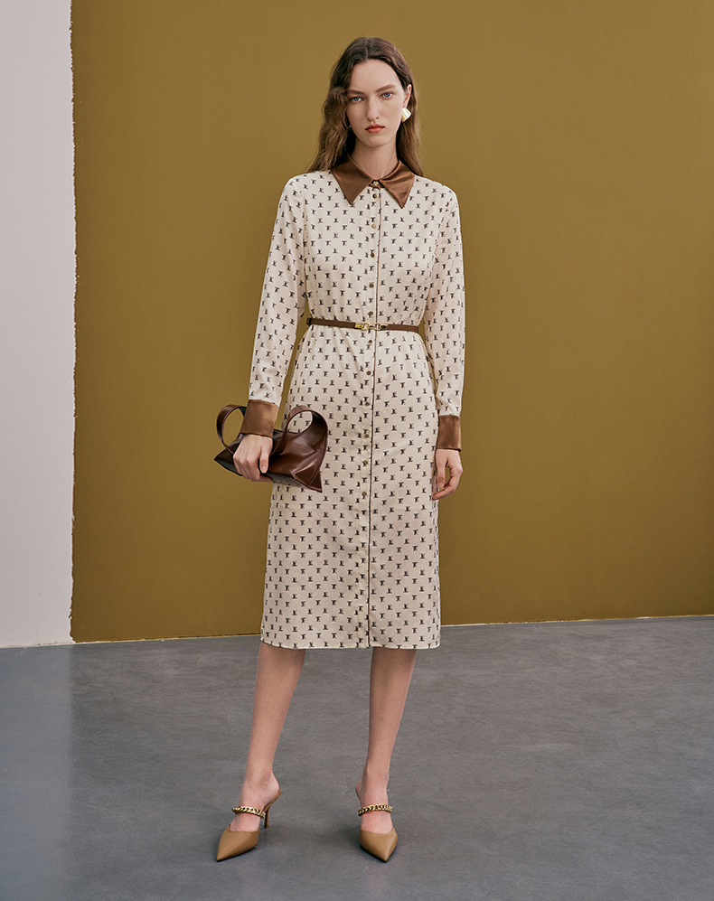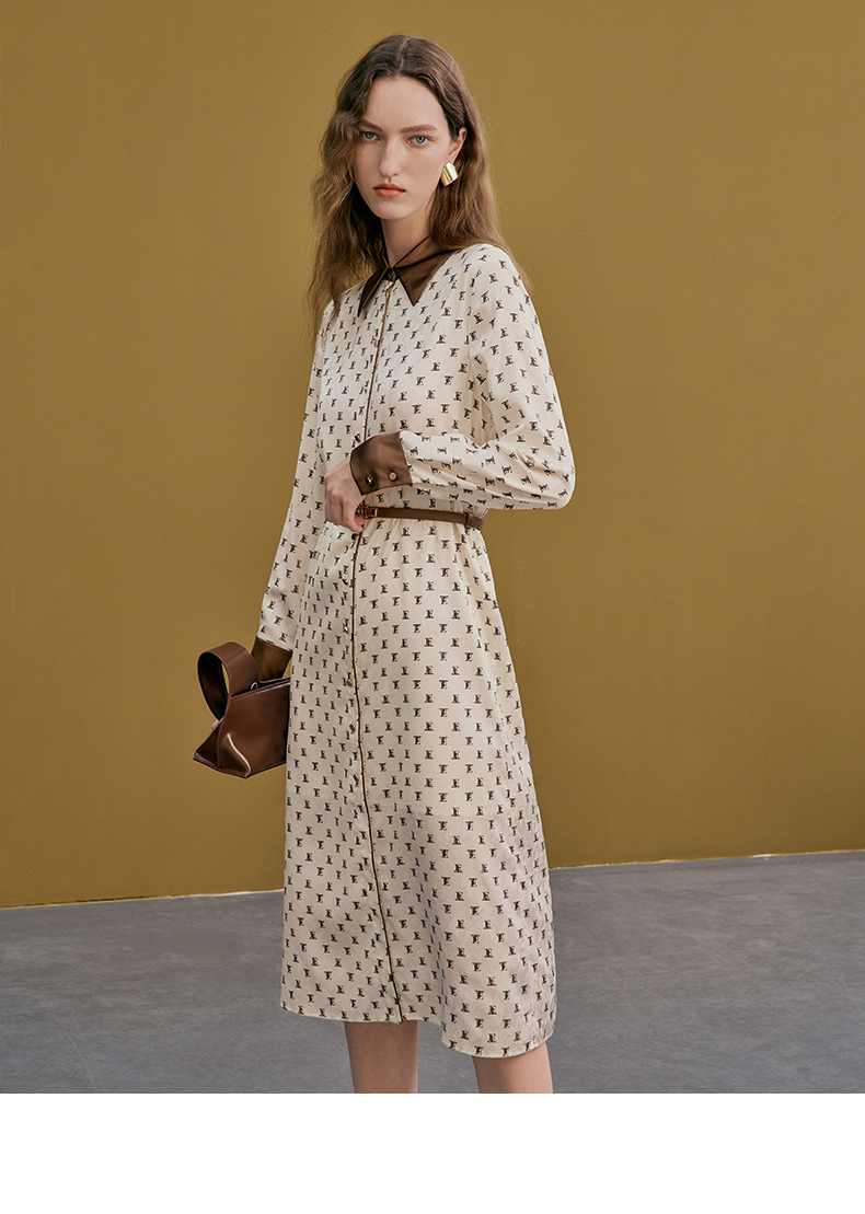 EITIE爱特爱秋季新款时尚气质金属印花衬衫女上衣A2009409