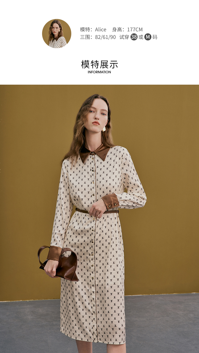 EITIE爱特爱春季新款气质优雅高腰显瘦连衣裙7307019