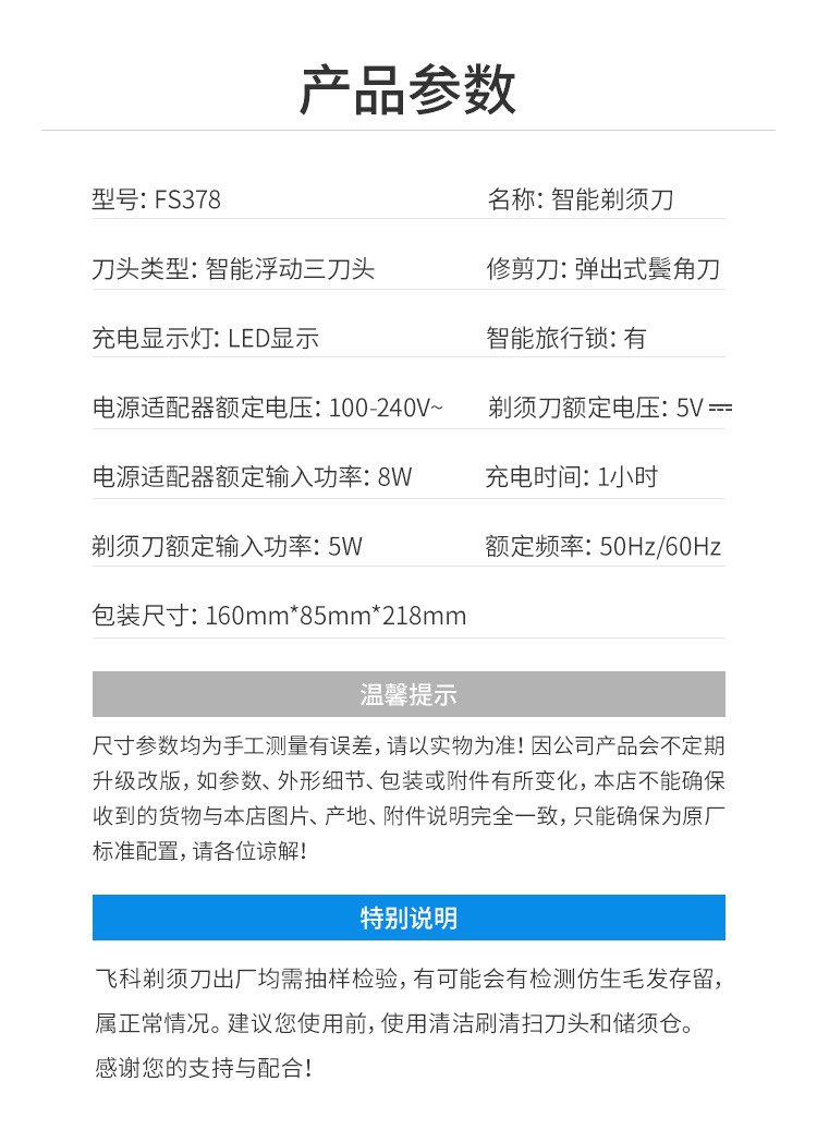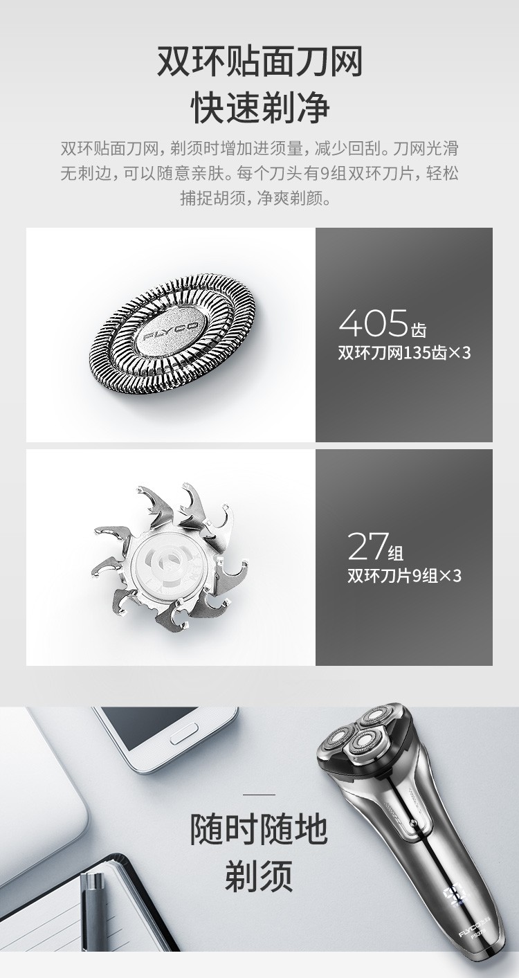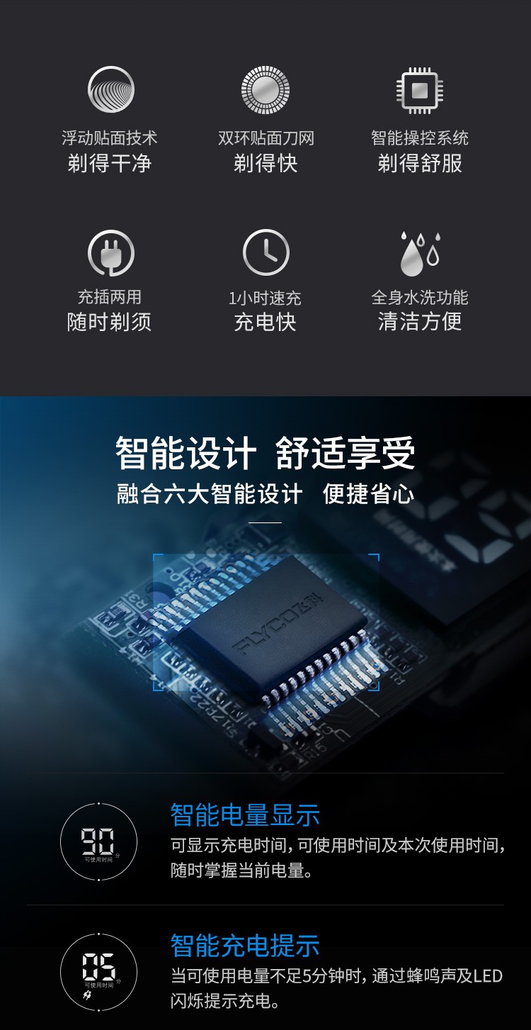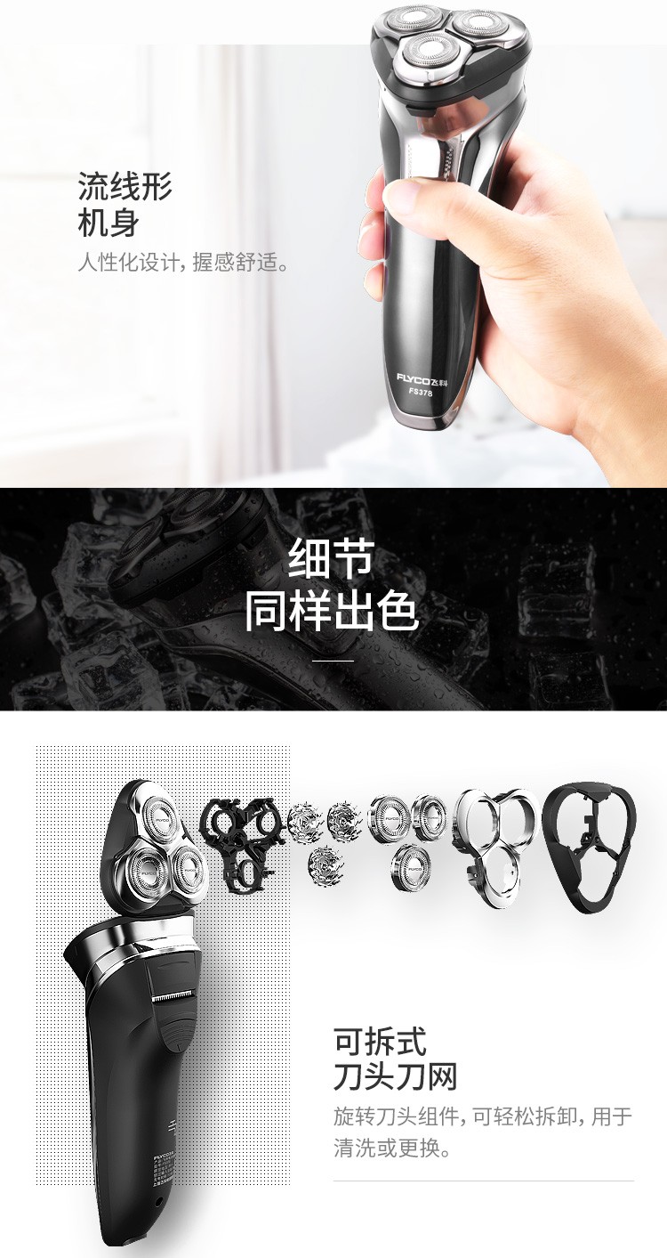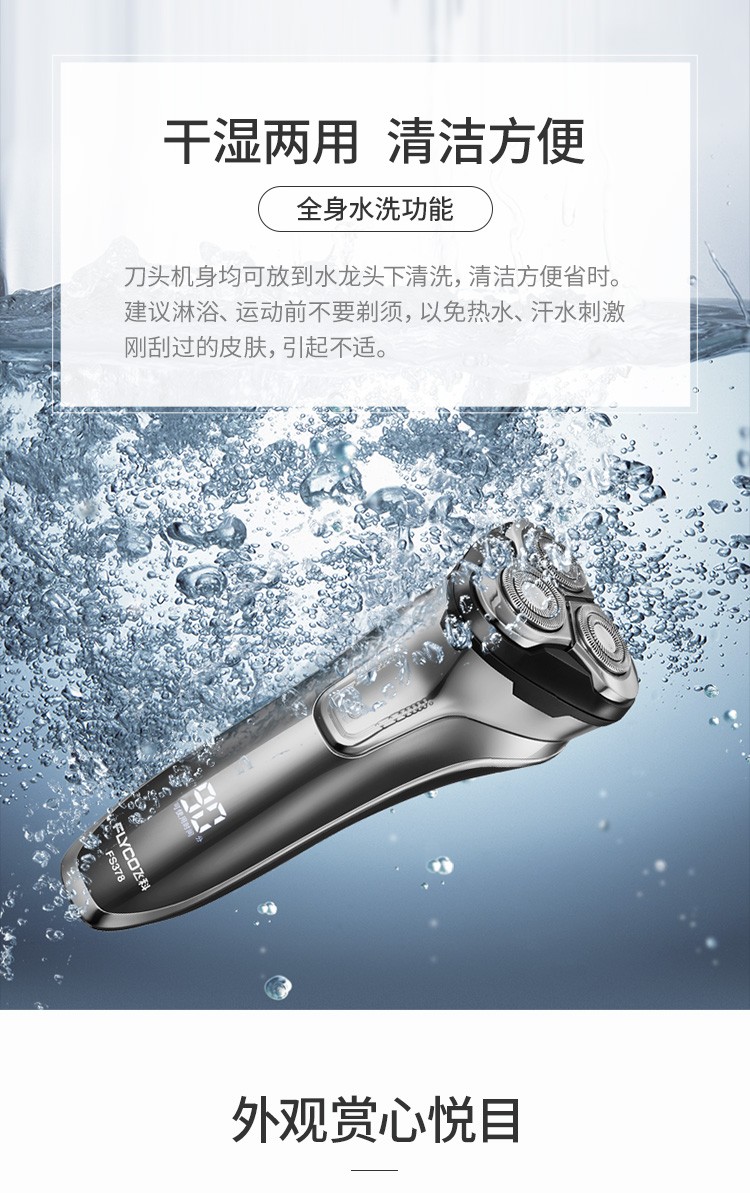 飞科(FLYCO)FS378 智能电动剃须刀全身水洗男士刮胡刀男士便携电须刀