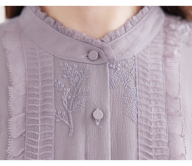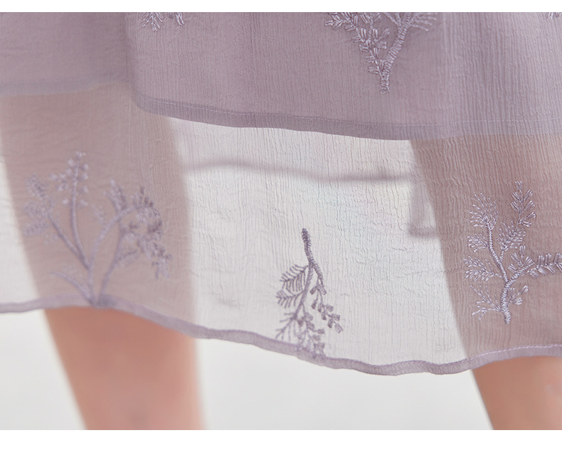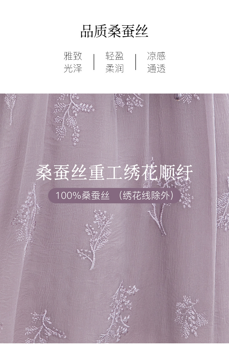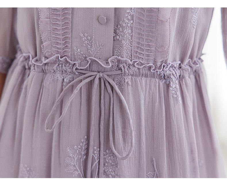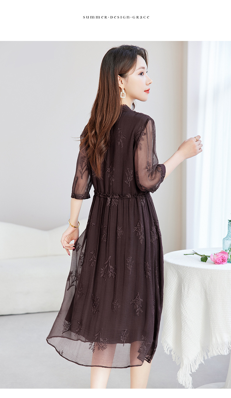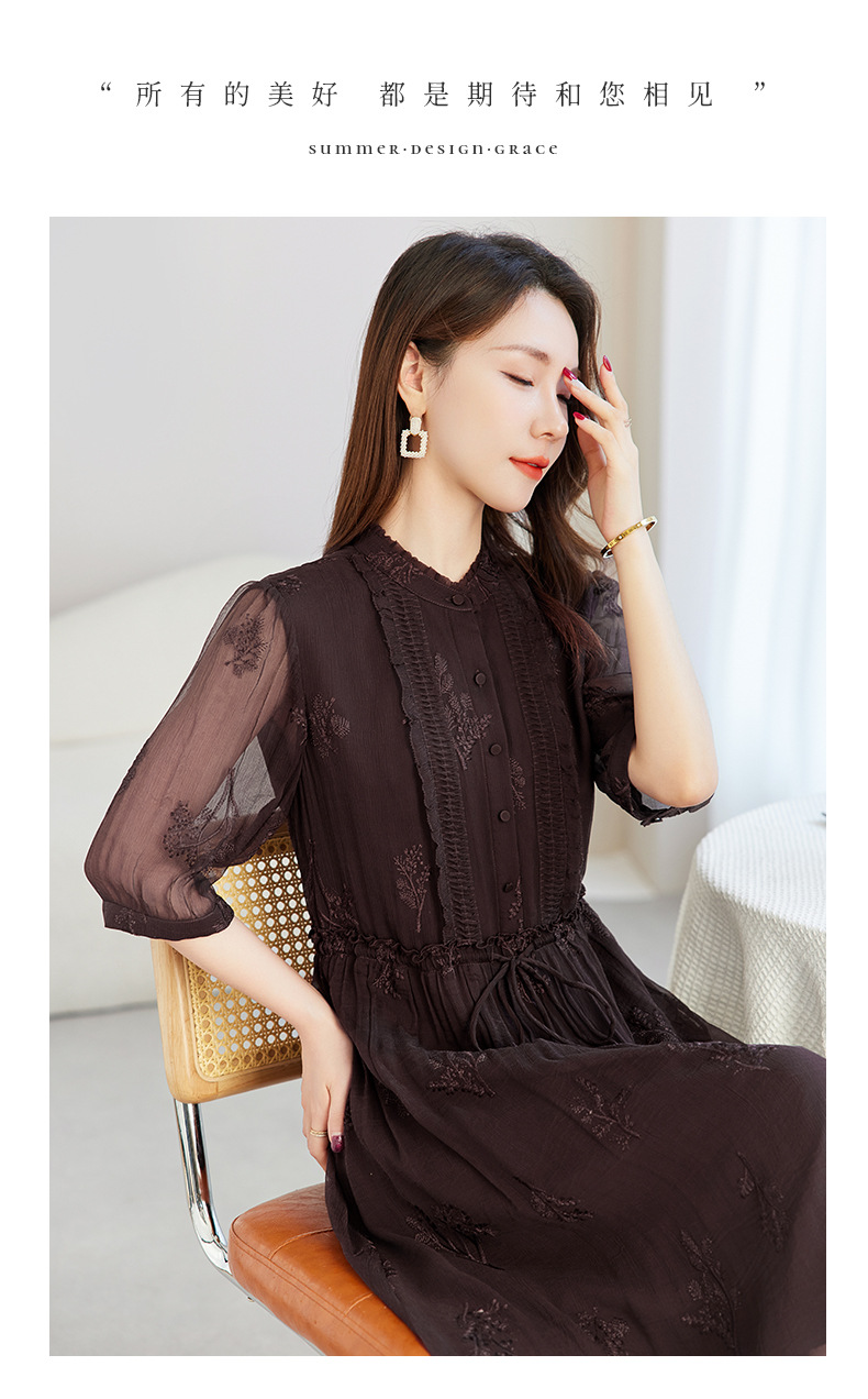QS-82599098真丝顺宇重工绣花立领中长裙子调节腰显瘦气质桑蚕丝连衣裙女9098