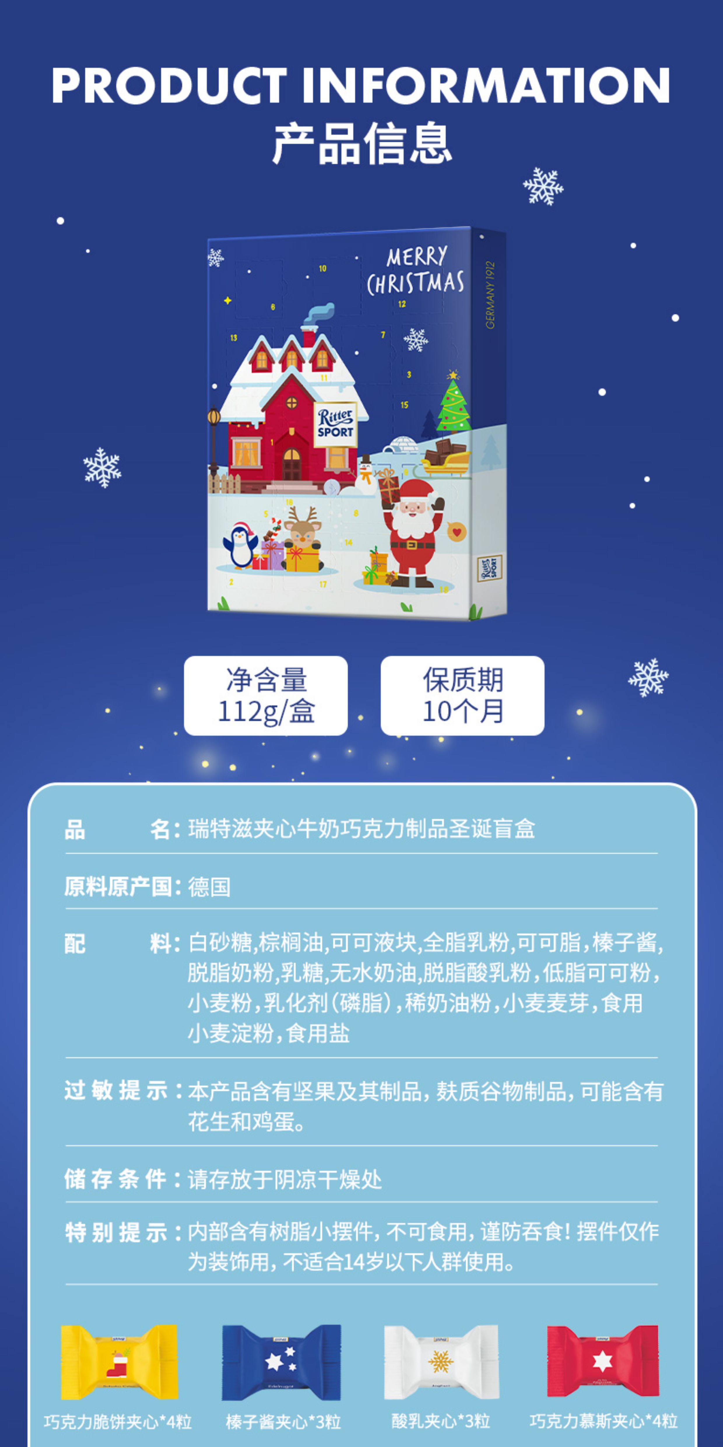 【新鲜市集】RitterSport瑞特滋圣诞限定巧克力礼盒盲盒(保质期至2026年4月)