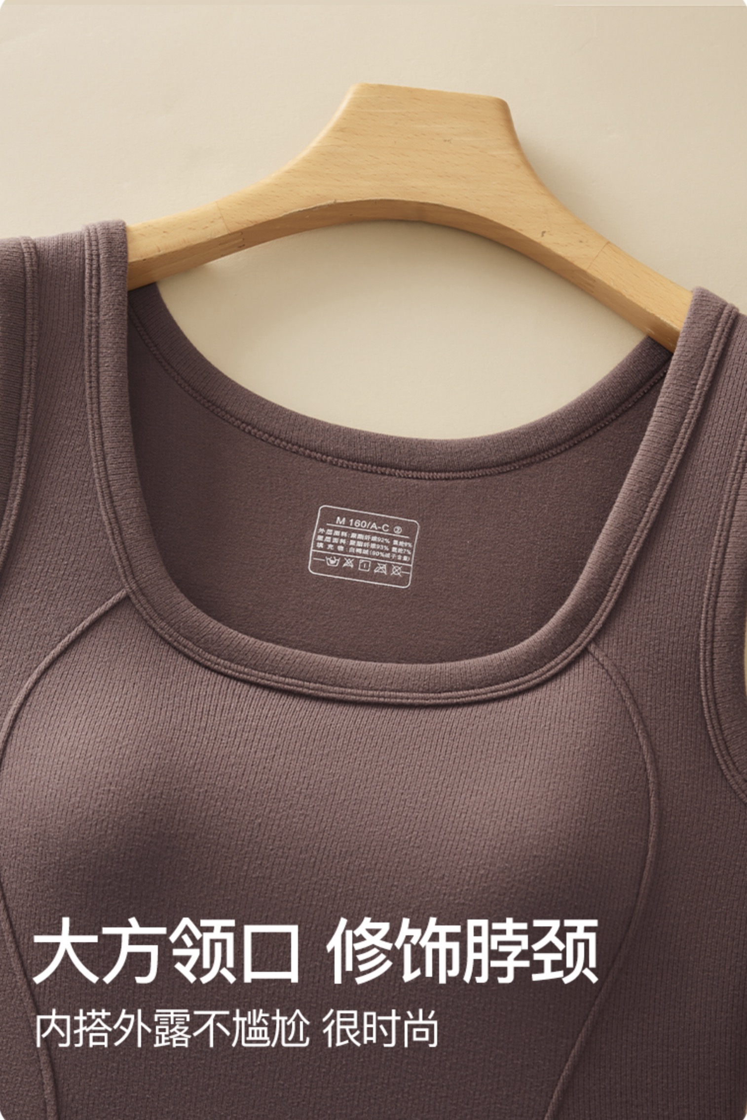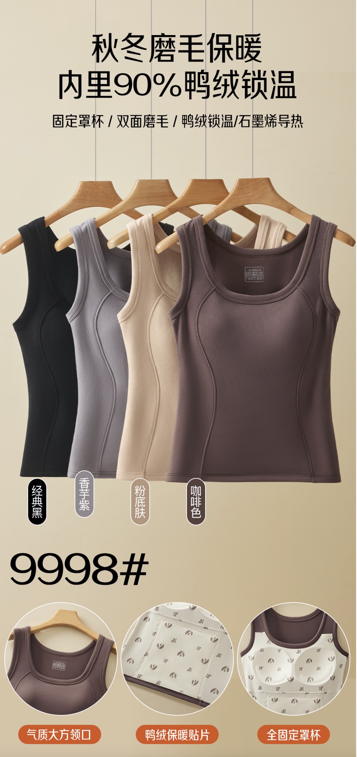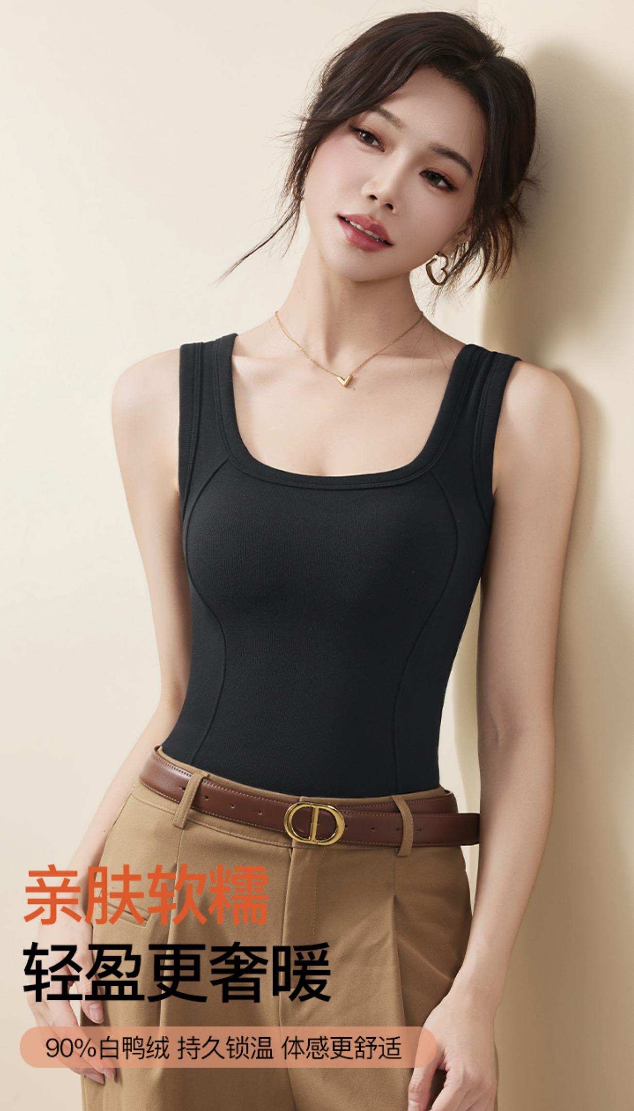 「老顾客福利—石墨烯保暖鸭绒磨毛背心」洛诗琳冬季新款含白鸭绒磨毛羽绒背心2025鱼骨显瘦U领胸带一体石墨烯保暖打底背心女45408