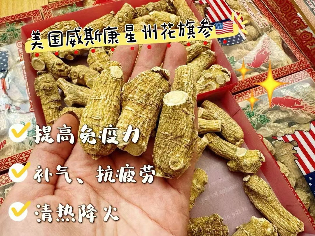 世界上产花期参最好的生产基地,秋冬滋补最好补品之一, 花旗參属于温补,有提高免疫力,补气,清热降火,抗疲劳等作用!一头大概7-10g左右,每盒约250g左右