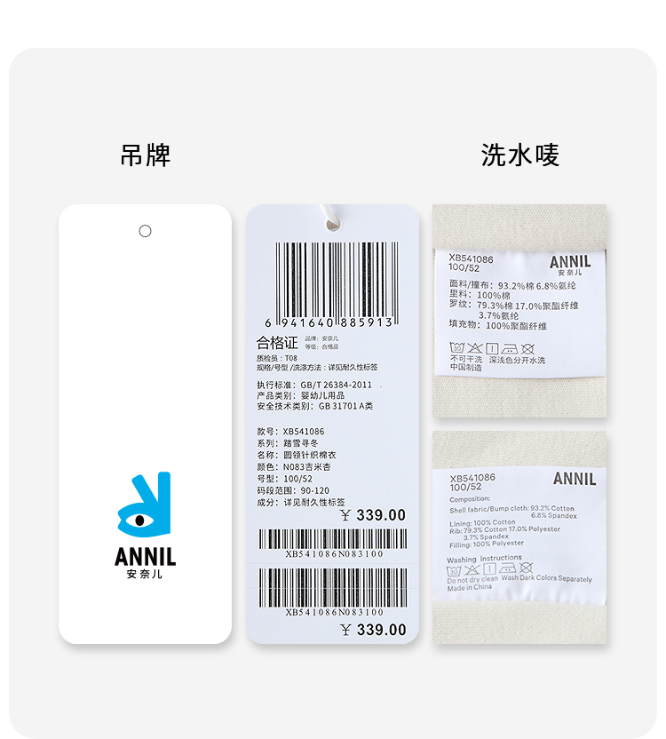 【实体店同款】男童圆领针织棉衣冬季新款安奈儿童装XB541086
