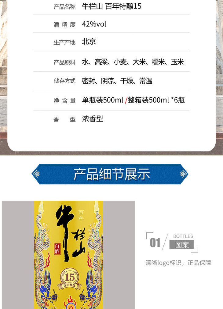 【推荐】牛栏山 特酿 15年 42度 500ml*6瓶【整箱装】浓香型白酒