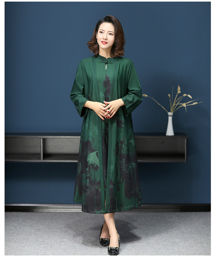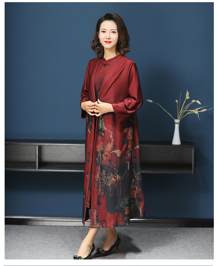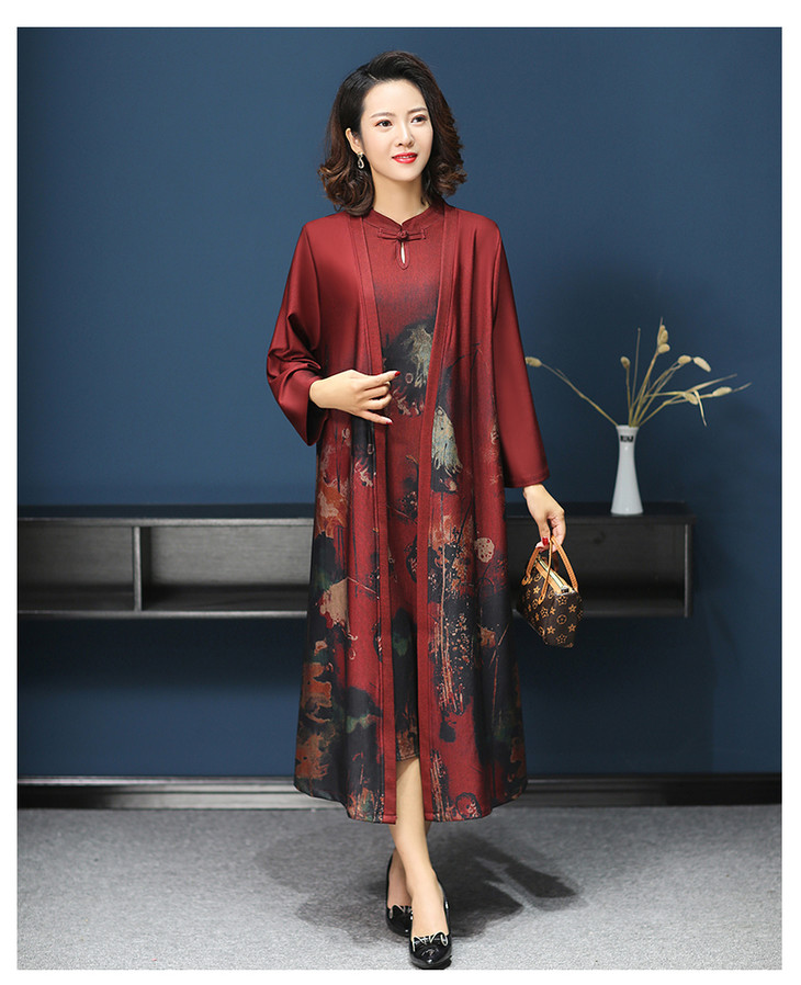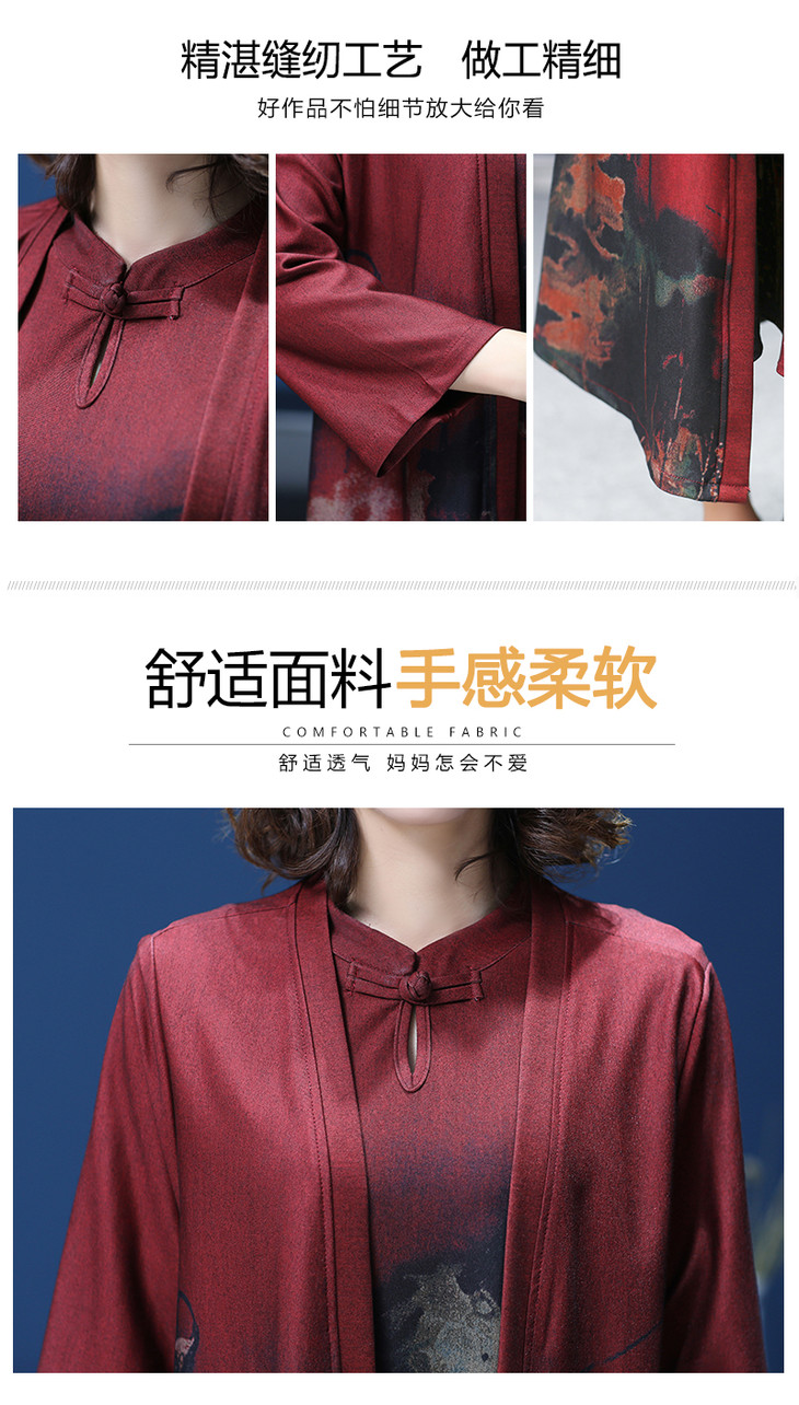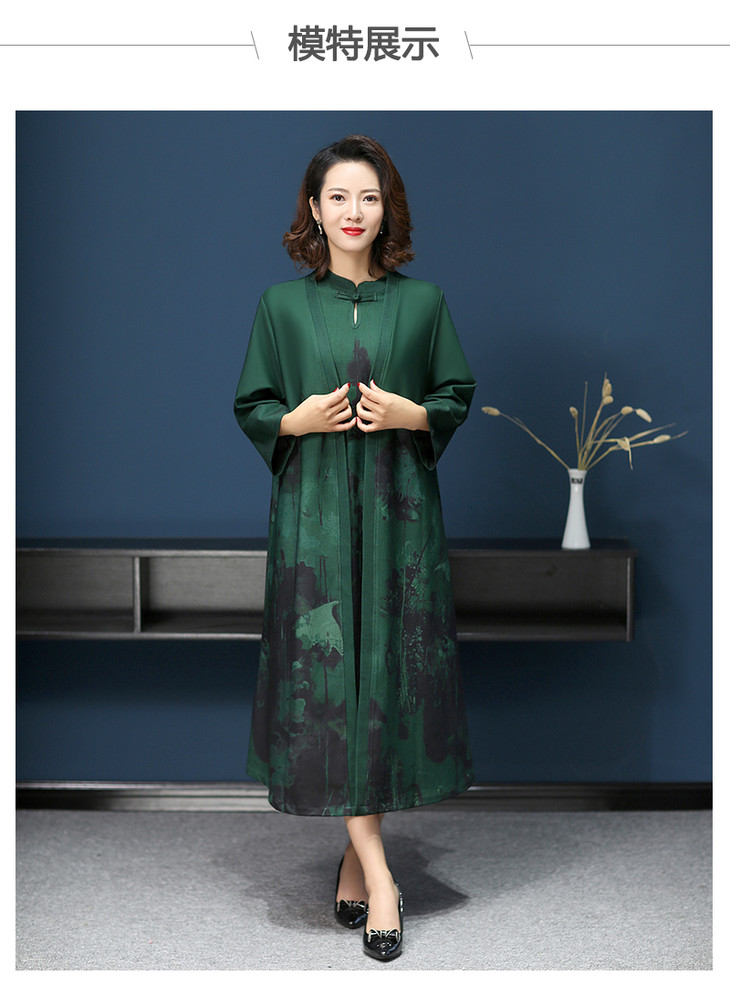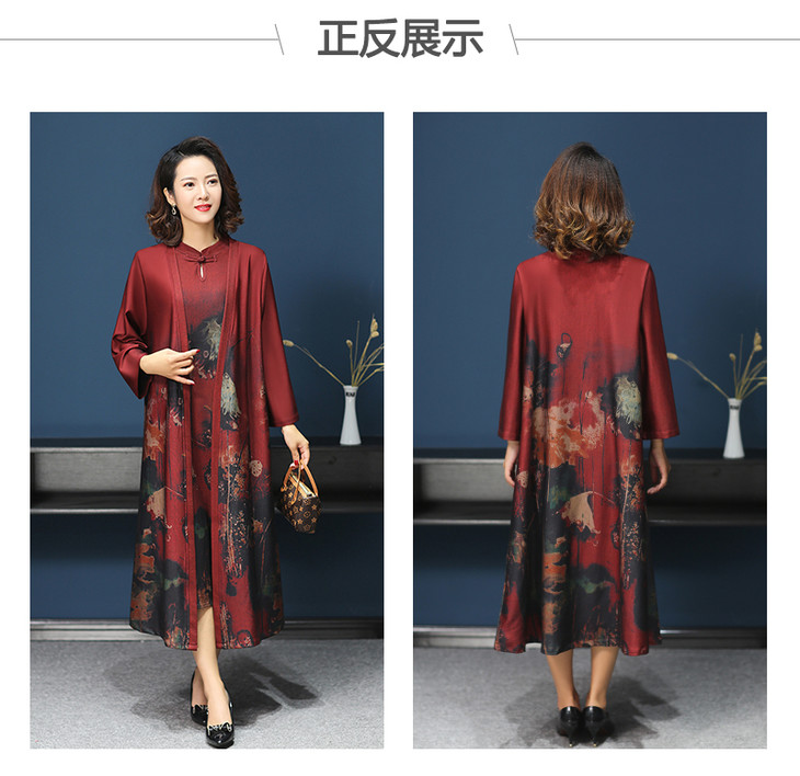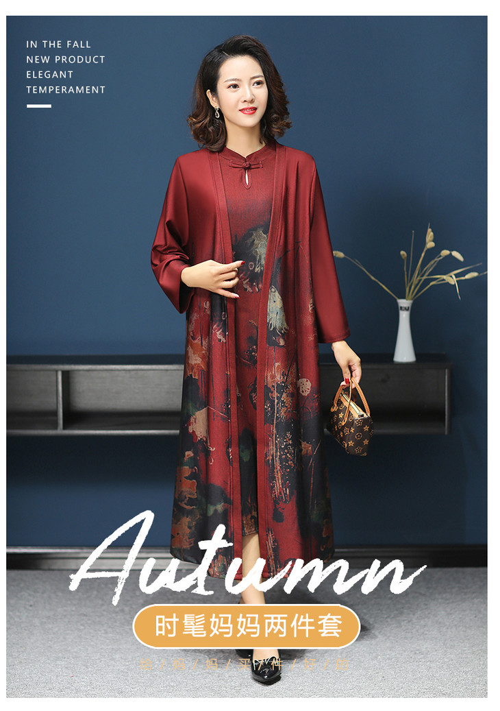 W-1700中老年女秋装连衣裙气质2020新款妈妈两件套装中长款婚礼旗袍高贵