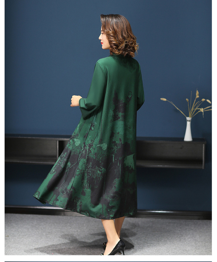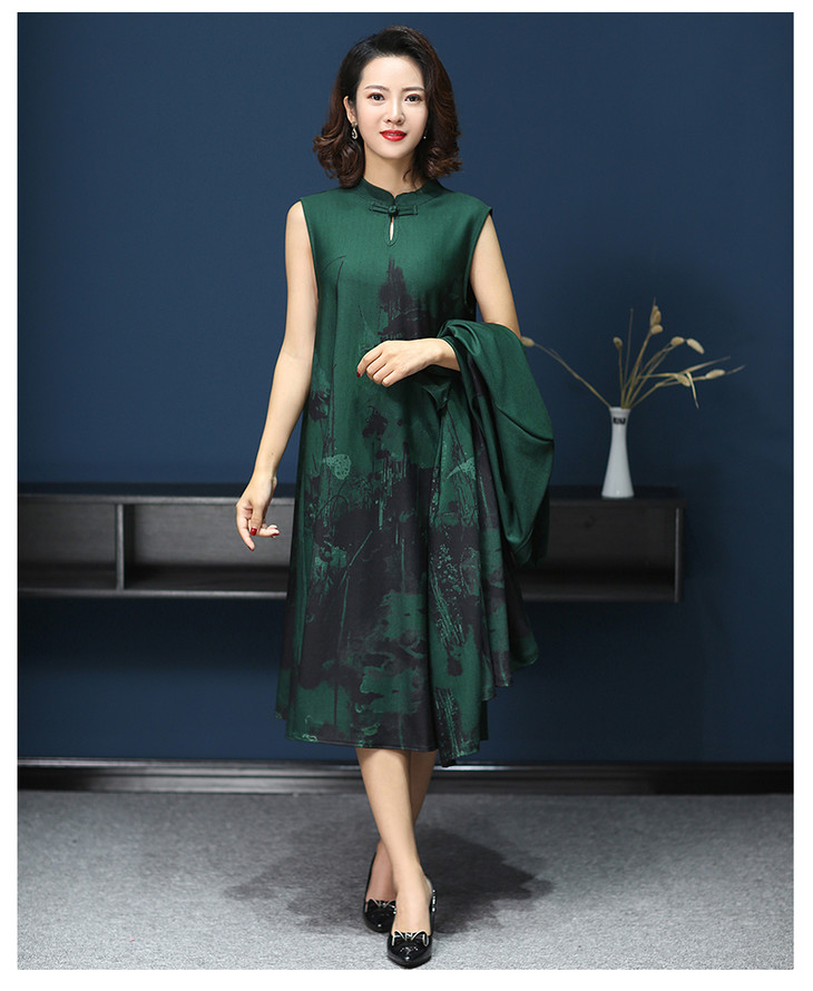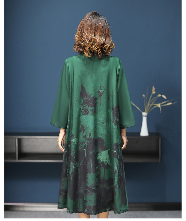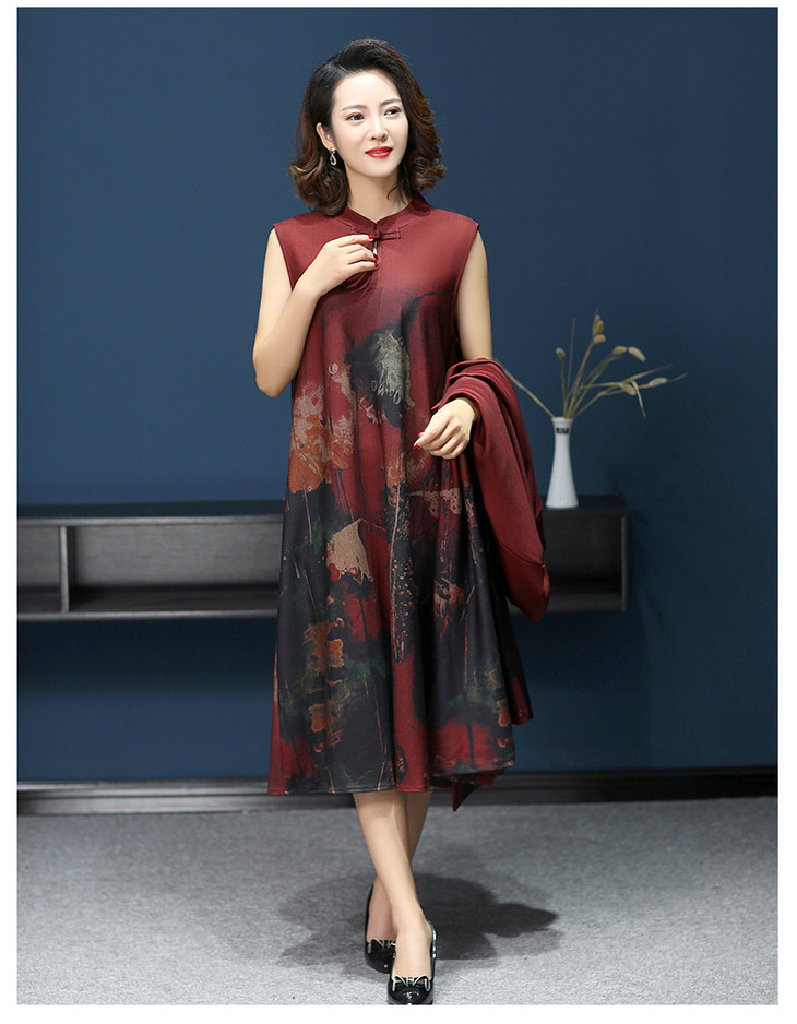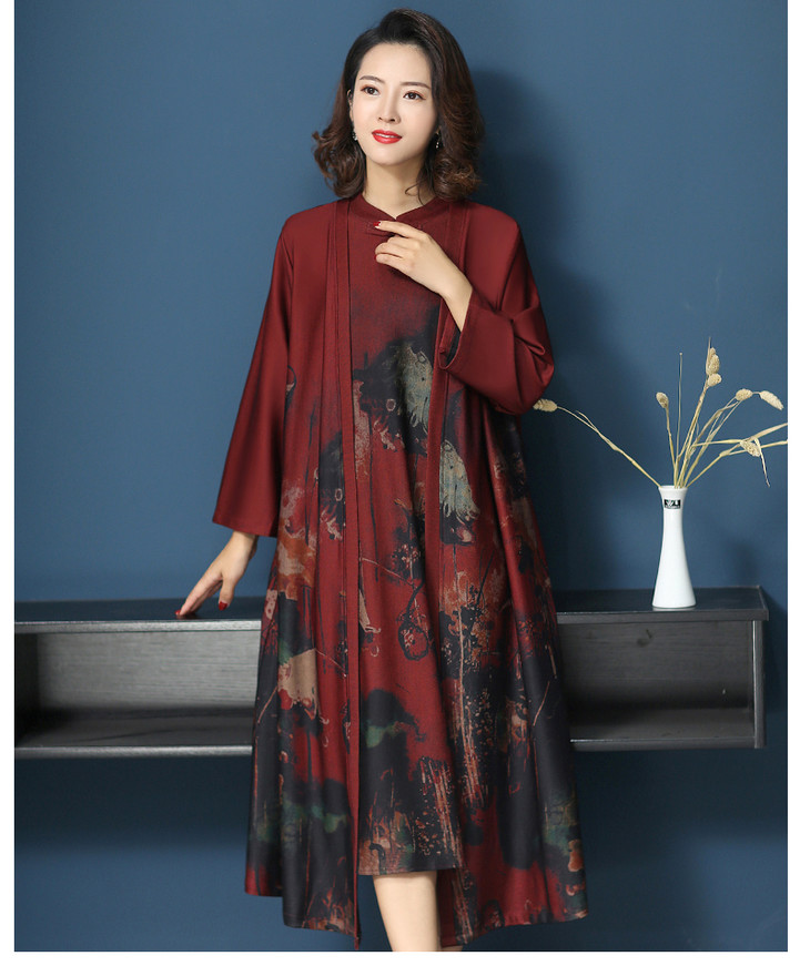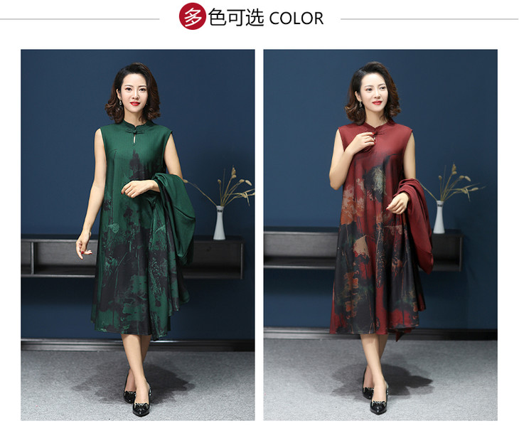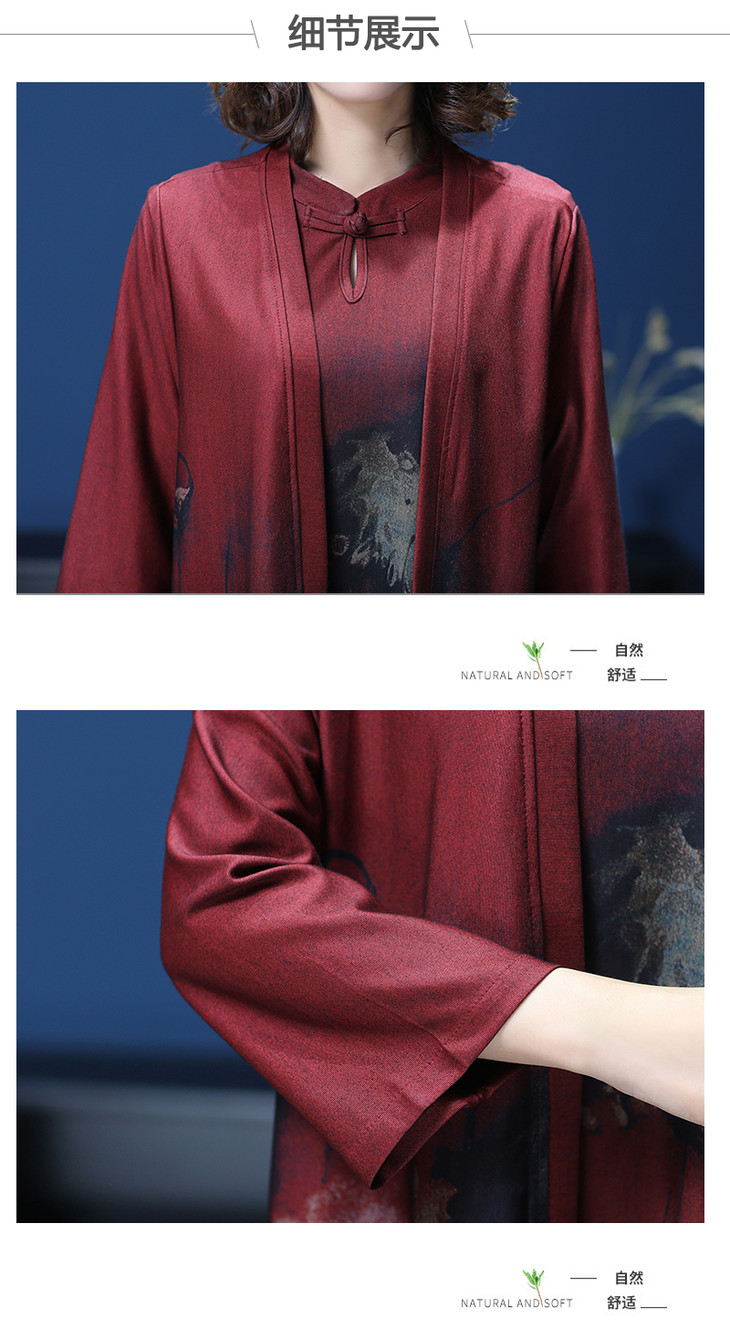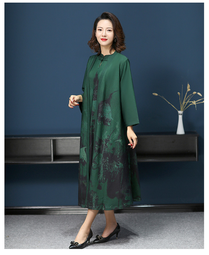 W-1700中老年女秋装连衣裙气质2020新款妈妈两件套装中长款婚礼旗袍高贵