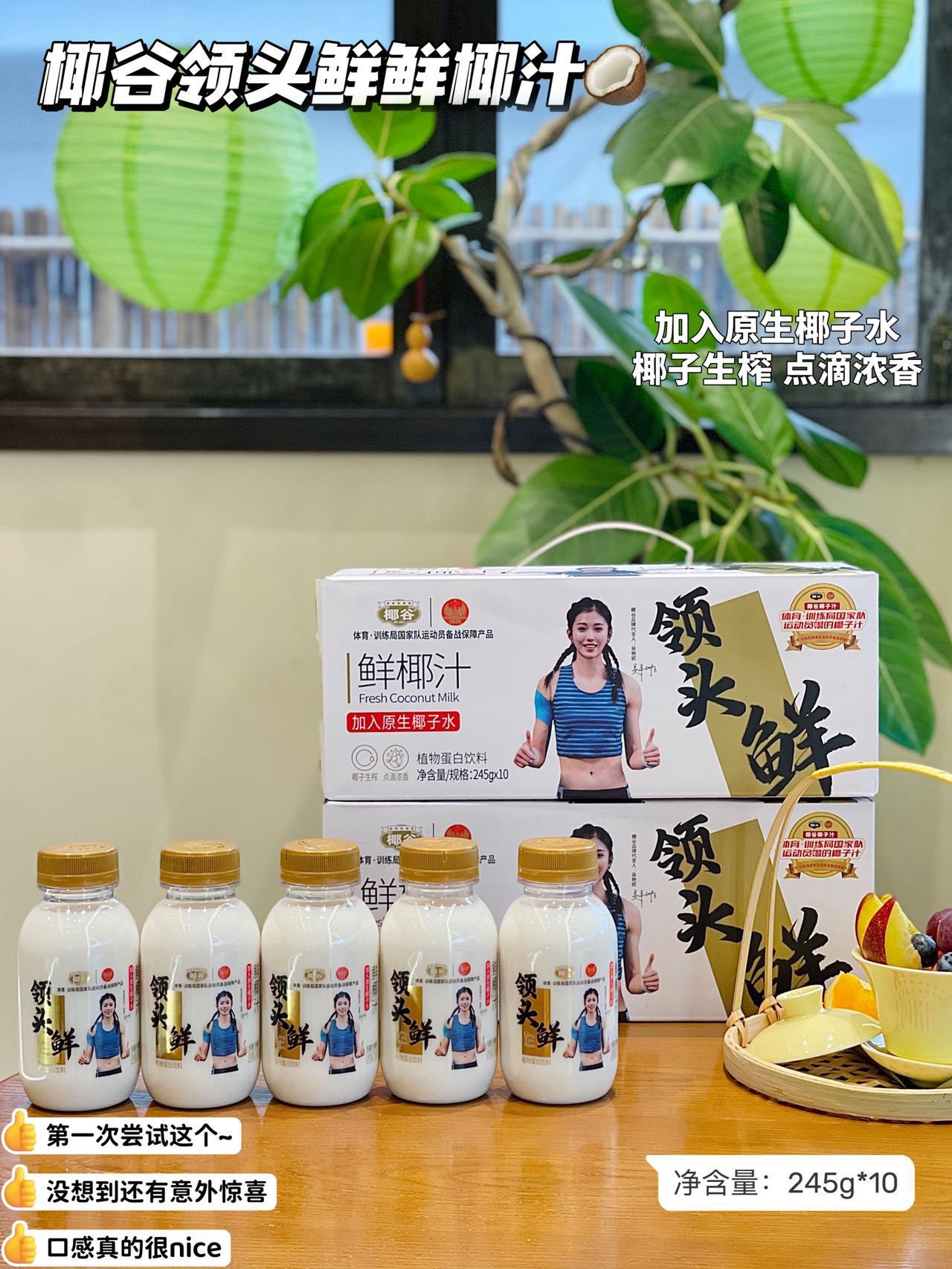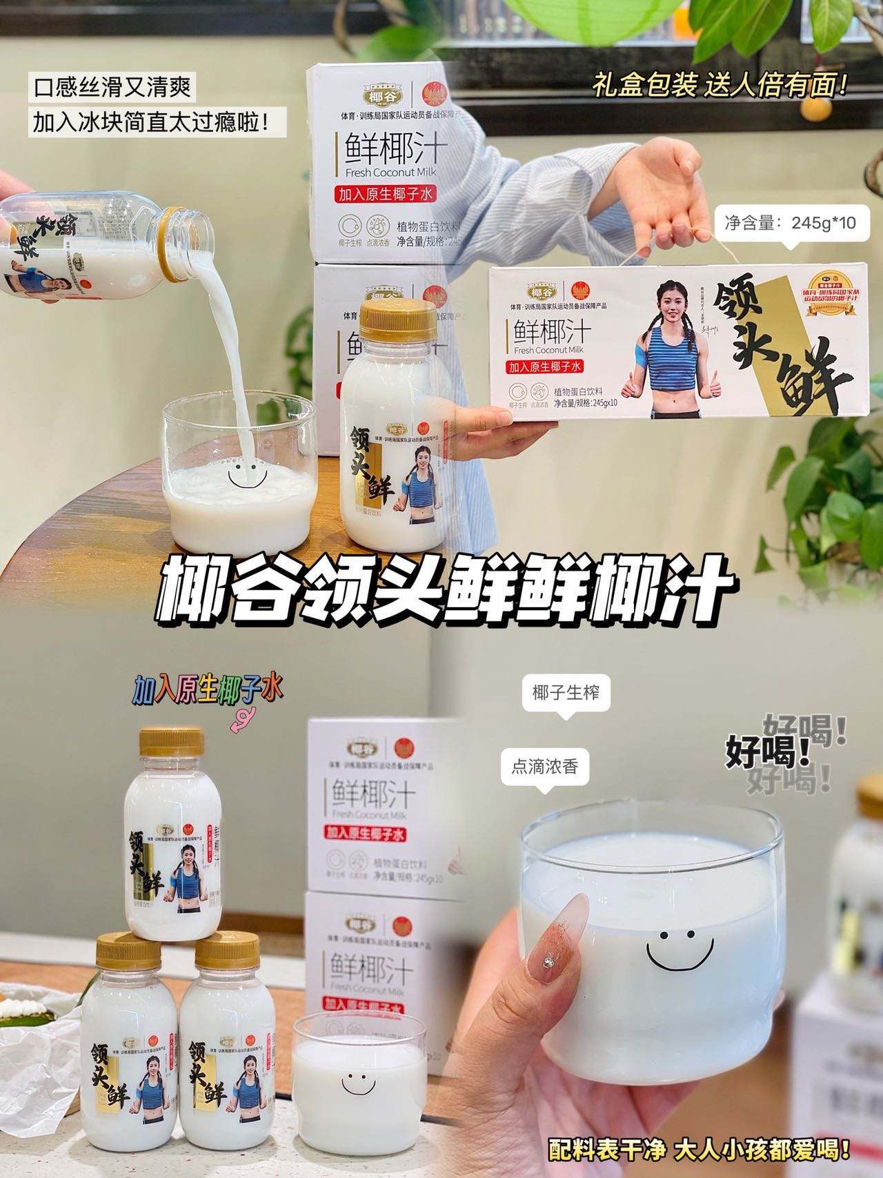 🏆奥运运动员吴艳妮代言品牌🔥「椰谷领头鲜椰汁」国家队都在喝的鲜椰汁🥥❗10瓶💰39.9!椰谷升级新包装高端款-领头鲜鲜椰汁245g/瓶,椰汁控停不下来的生榨椰汁!
