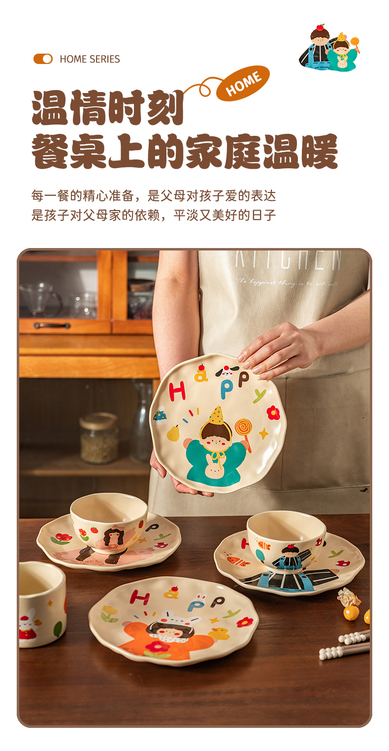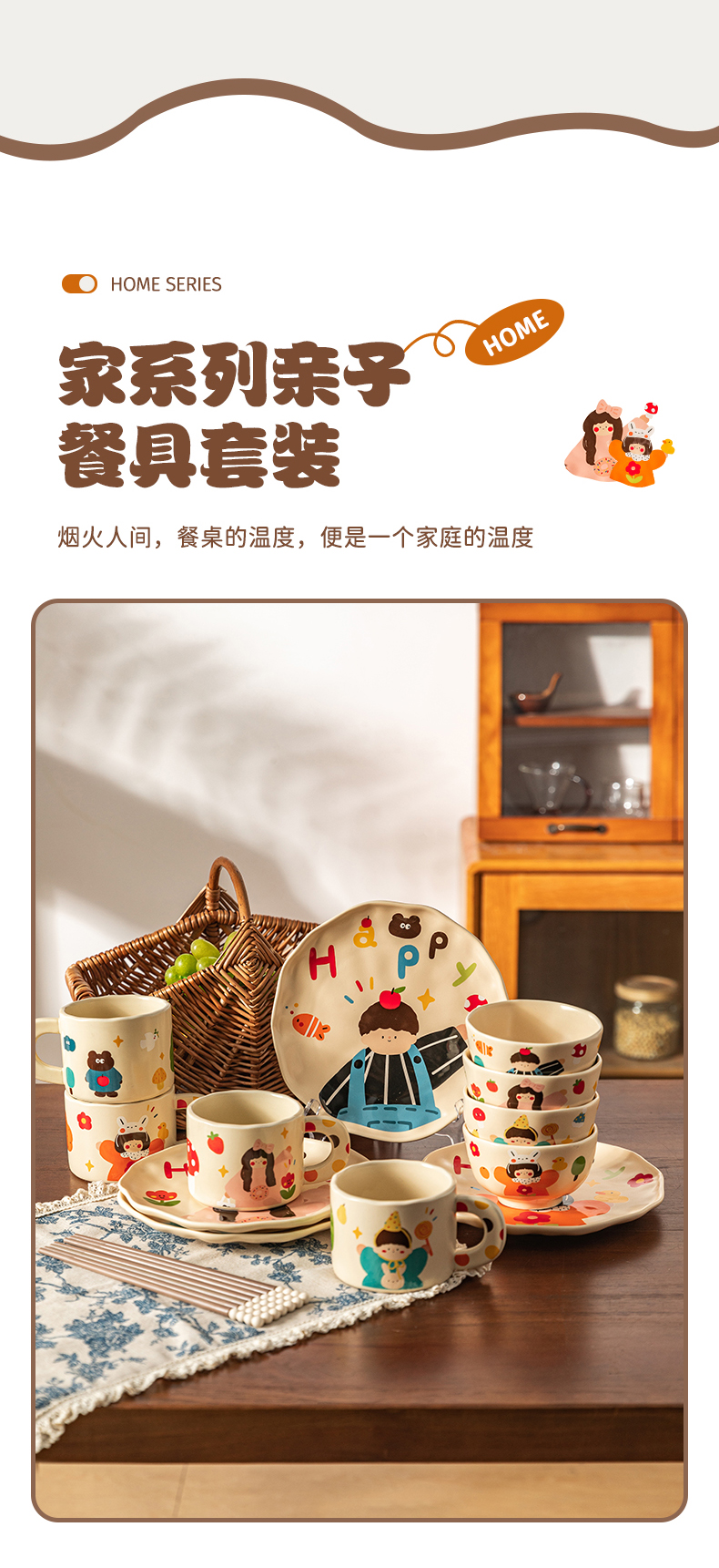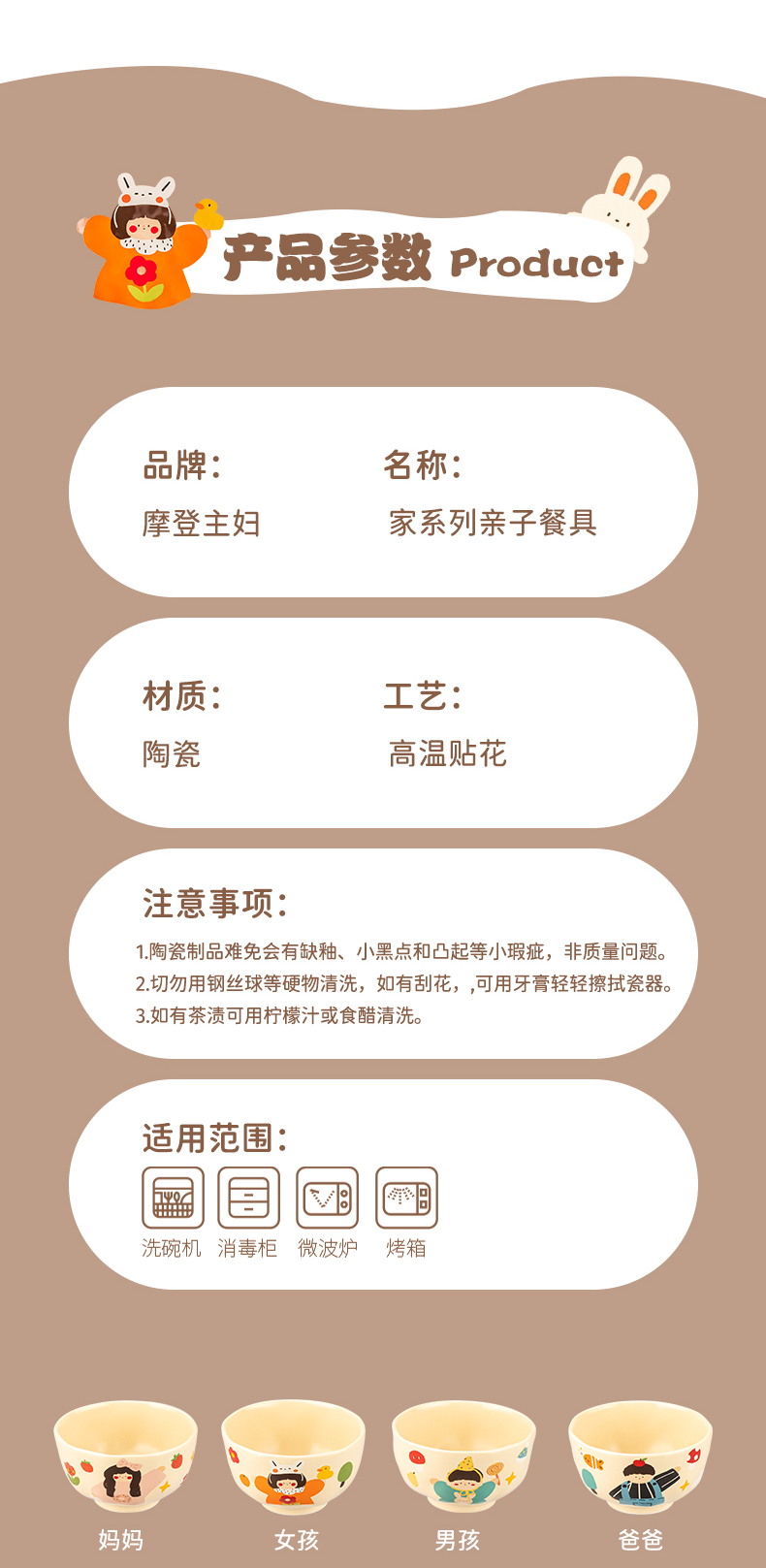 摩登主妇一家三口陶瓷碗亲子餐具可爱儿童吃饭碗筷子杯子盘子菜盘