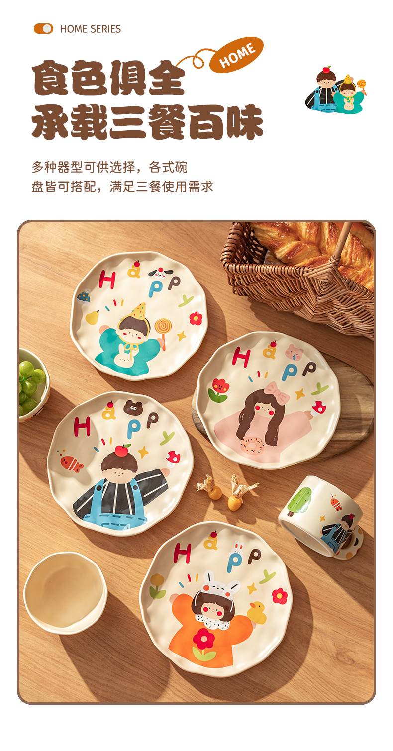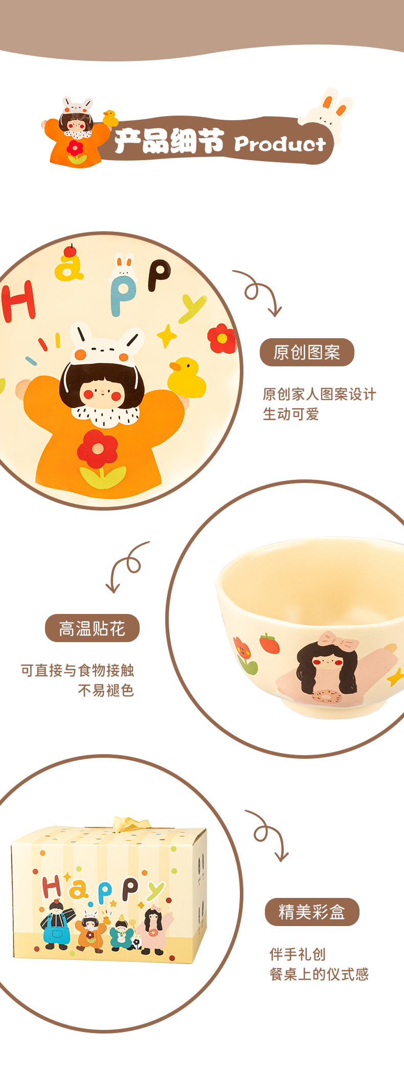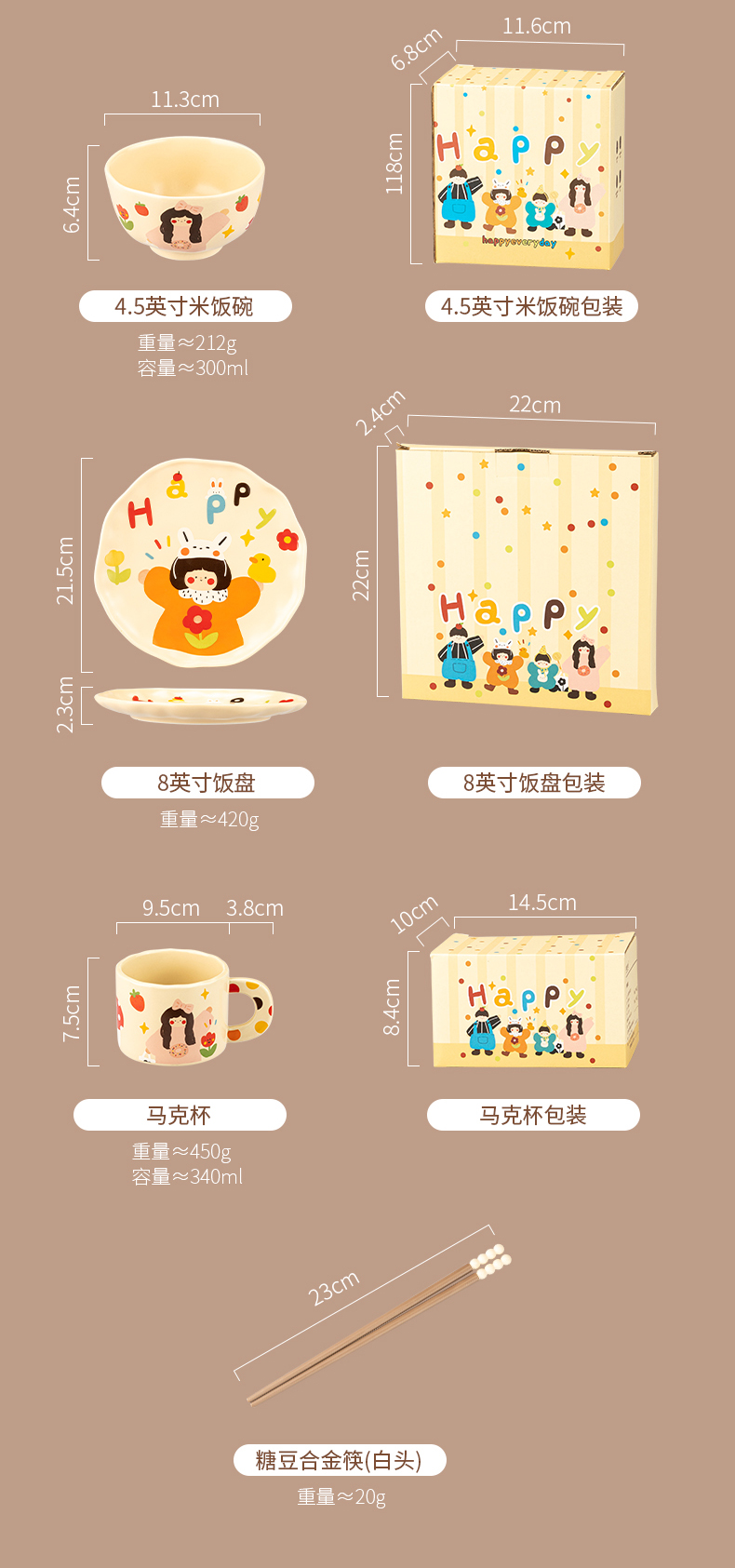 摩登主妇一家三口陶瓷碗亲子餐具可爱儿童吃饭碗筷子杯子盘子菜盘