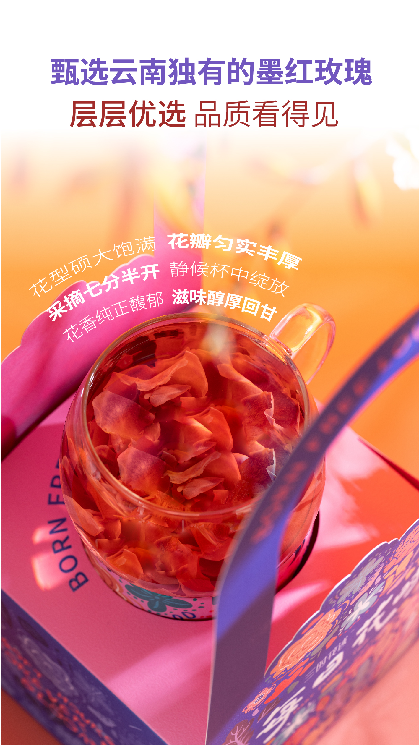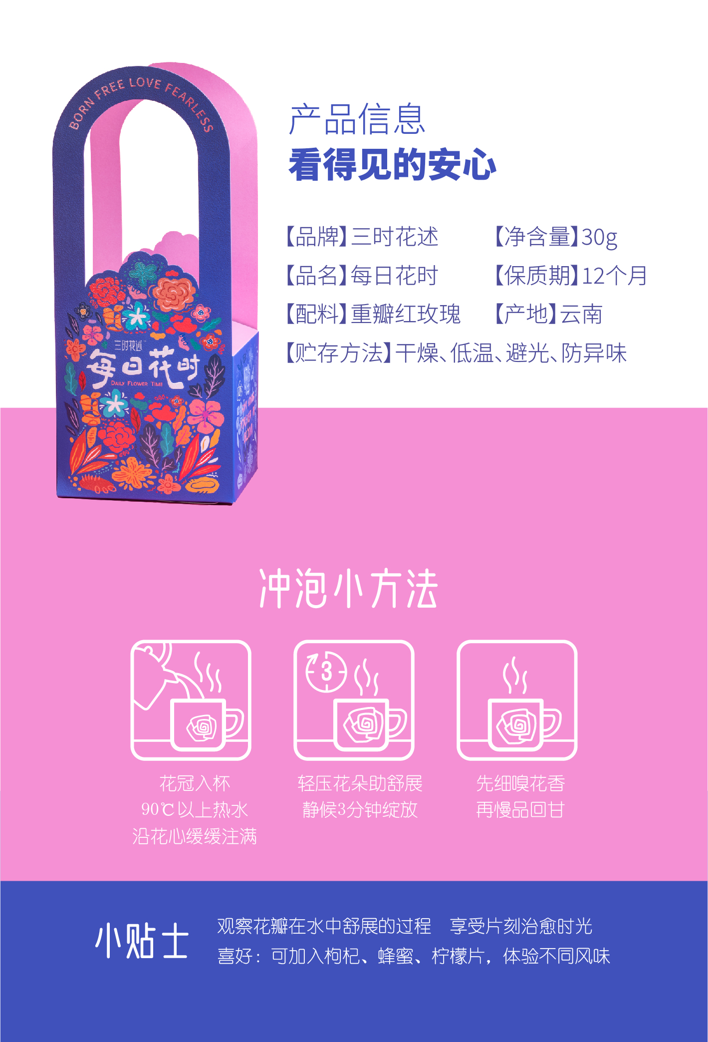 三时花述 每日花时墨红玫瑰花茶30g/罐