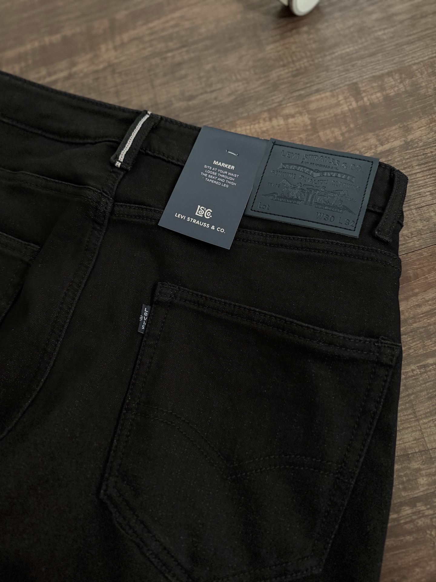 后腰皮革双马牌➕蓝标小旗帜点缀!