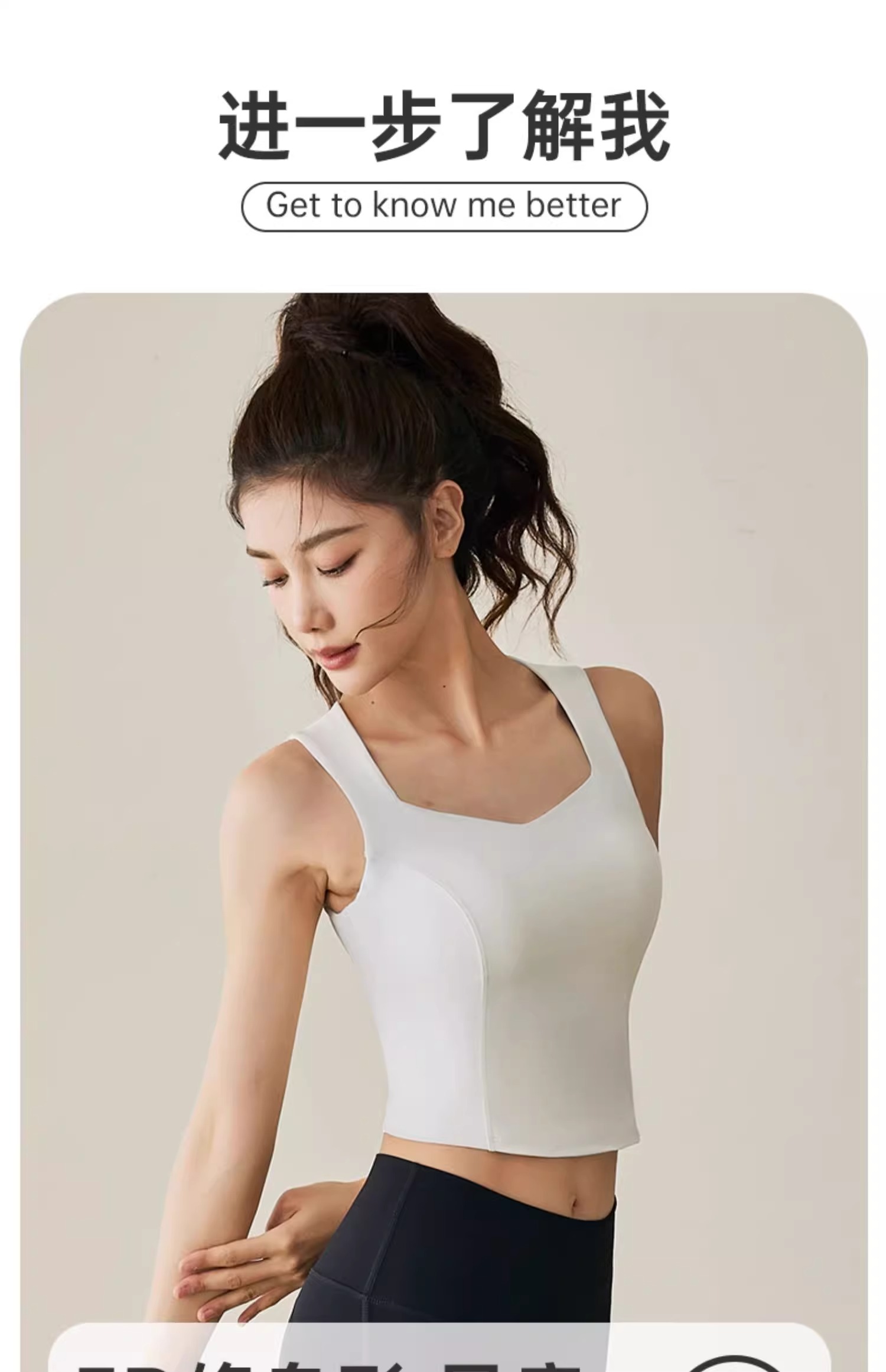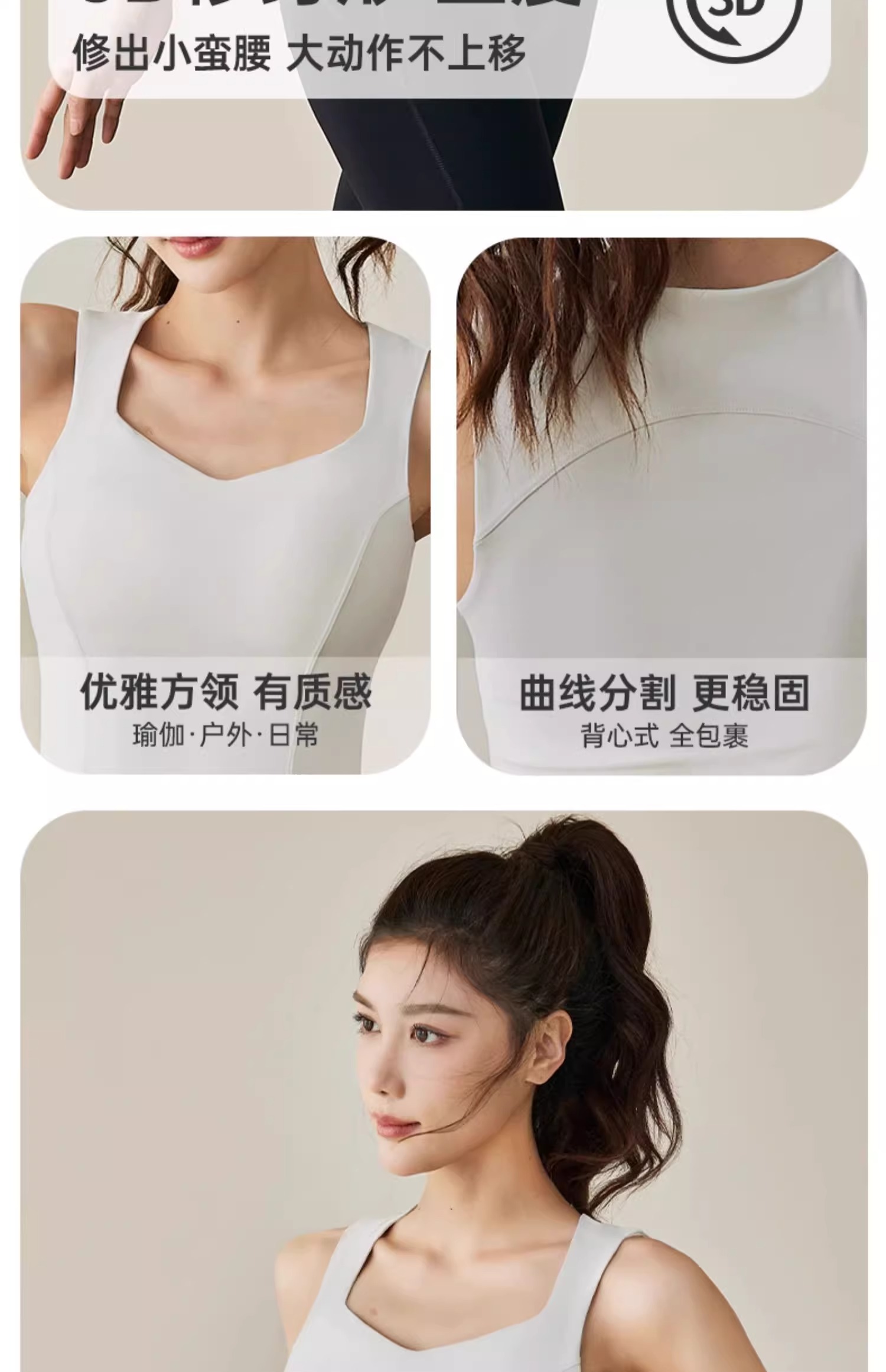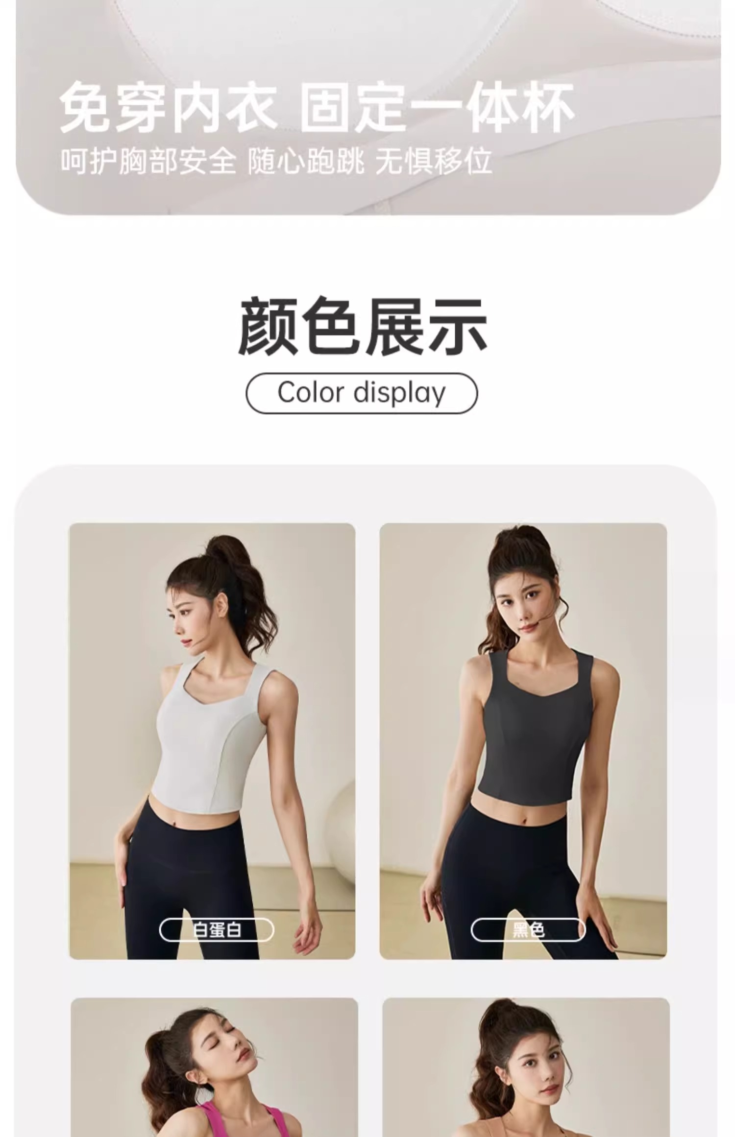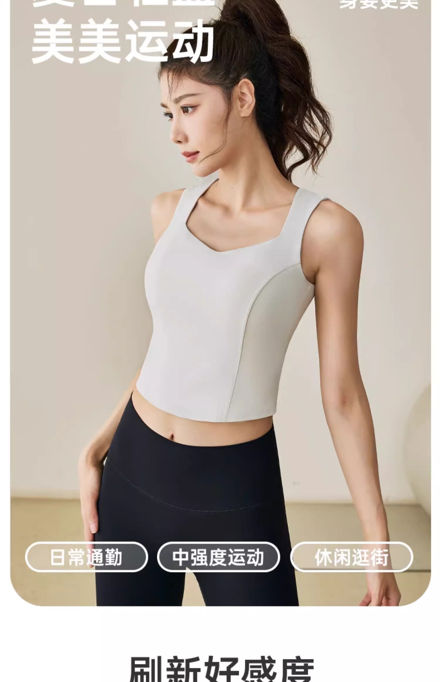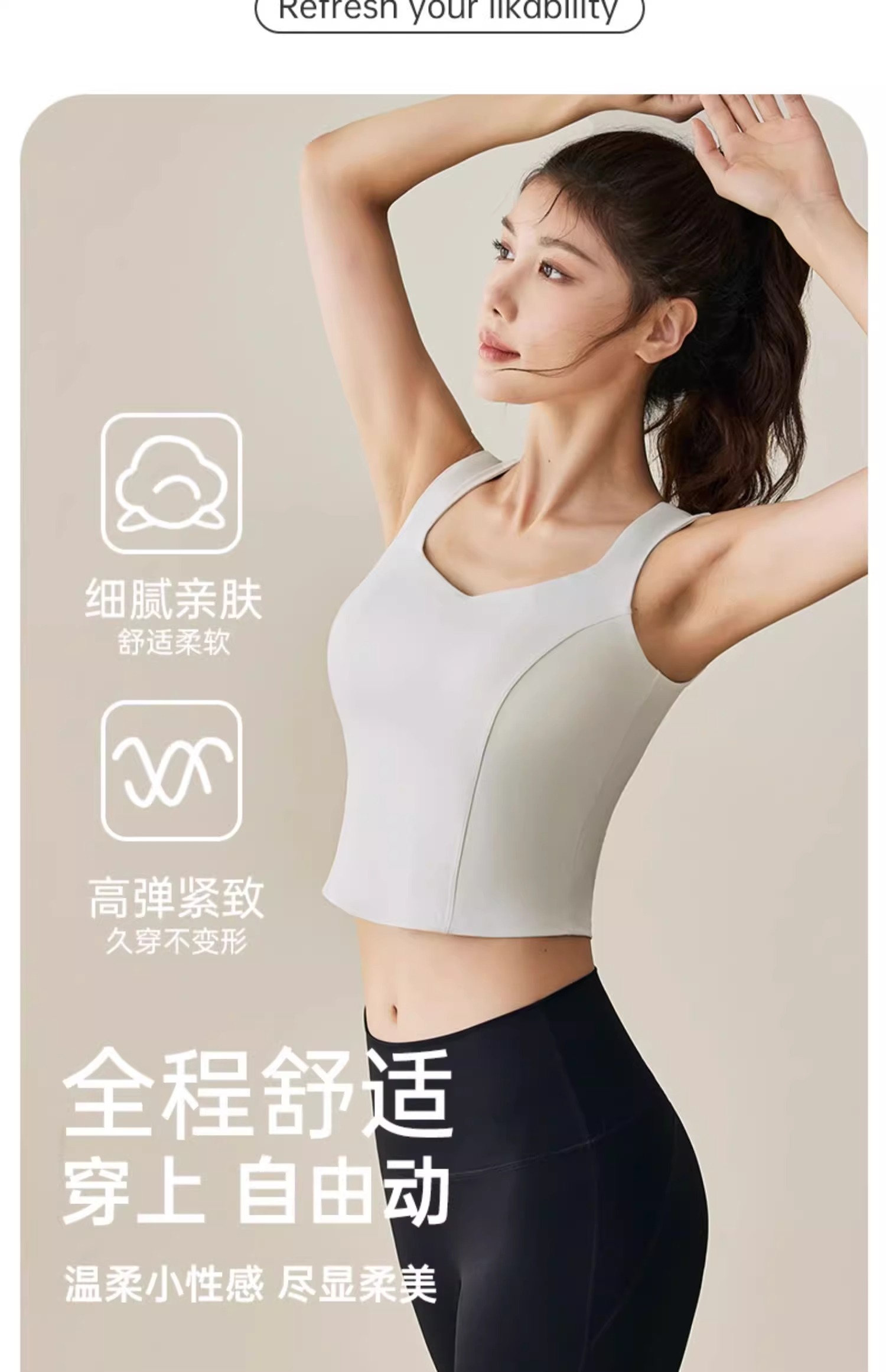 跃牌【倚窗听雨】系列 抗菌一体式瑜伽背心女裸感美背固定杯运动内衣DA61