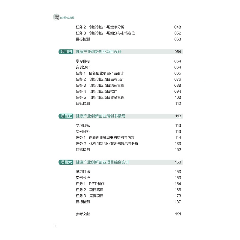 《健康产业创新创业实践》是一本基于大卫生大健康产业为背景的,融合了健康创新创业活动过程所需的理论和技能。教材以健康创新创业的活动过程为主线贯穿创新创业活动的每一个环节,以理论知识为引导,以实践操作为主体,强化创新创业理论与实践的统一,凸显健康产业创新创业的项目特色。《健康产业创新创业实践》教材编写注重以下几个方面:(1)针对性——教材围绕健康卫生产业,依托健康卫生产业发展需求、发展趋势和发展方向,开展健康创业创新内容编写。(2)体系性——教材以健康创业项目的流程性活动过程,从健康创业知识、健康创业能力和创业活动过程着手。(3)拓展性。