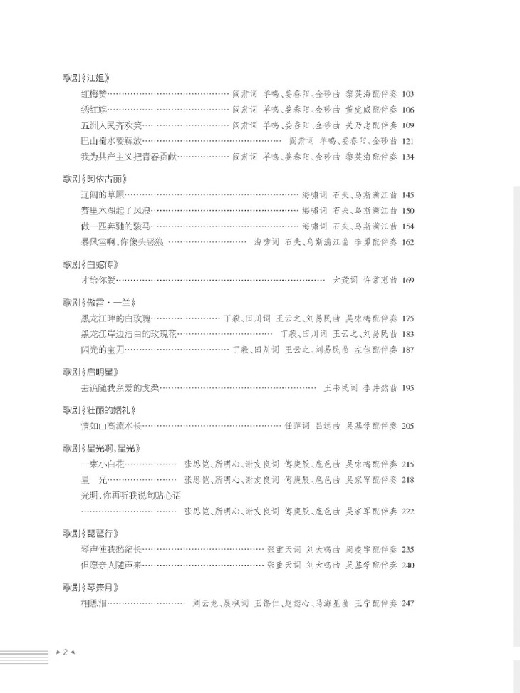 《中国歌剧百年——精选唱段集萃》以年代为编辑原则分为九册,涵盖了20世纪20年代至2018年创作的117部歌剧,366首唱段。乐谱均以五线谱记谱,并全部配有钢琴伴奏谱;曲谱后有作品简介,包含剧情介绍、音乐本体分析和演唱技术提示等内容,使演唱者可以更加直接地了解作品的年代归属与时代特性,从而对音乐本身有了更深层次的理解。