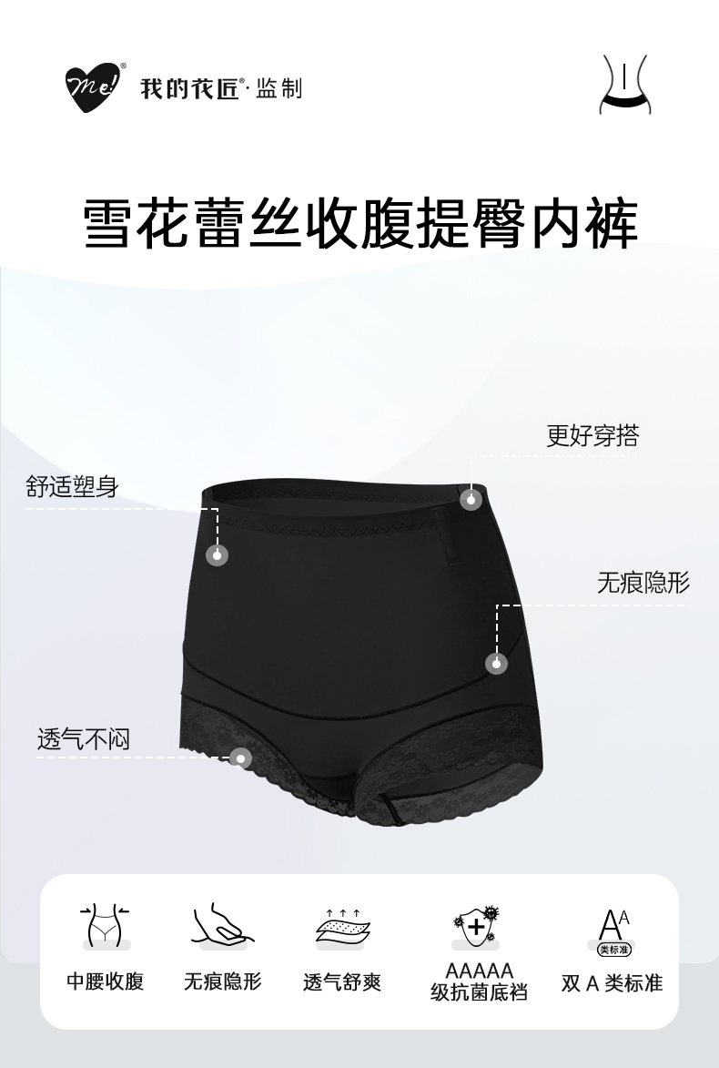 我的花匠雪花蕾丝收腹提臀冰丝中腰舒适无痕内裤