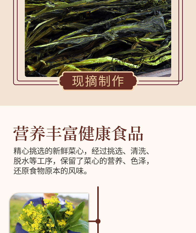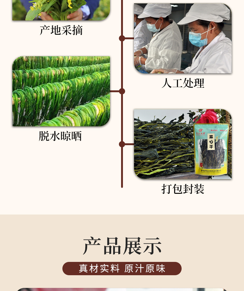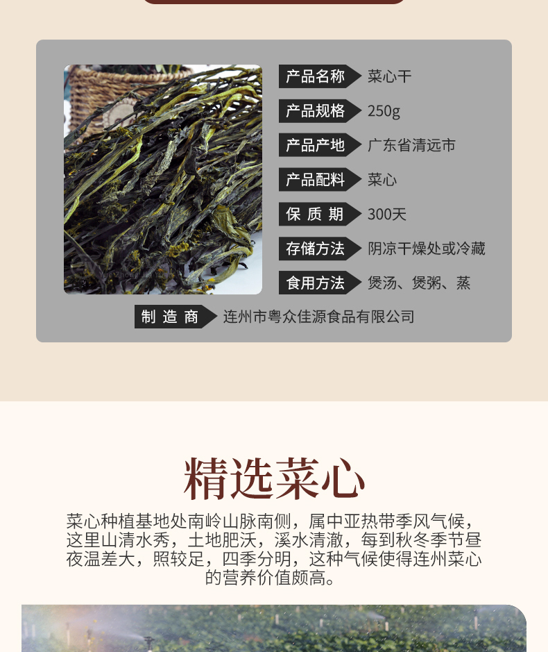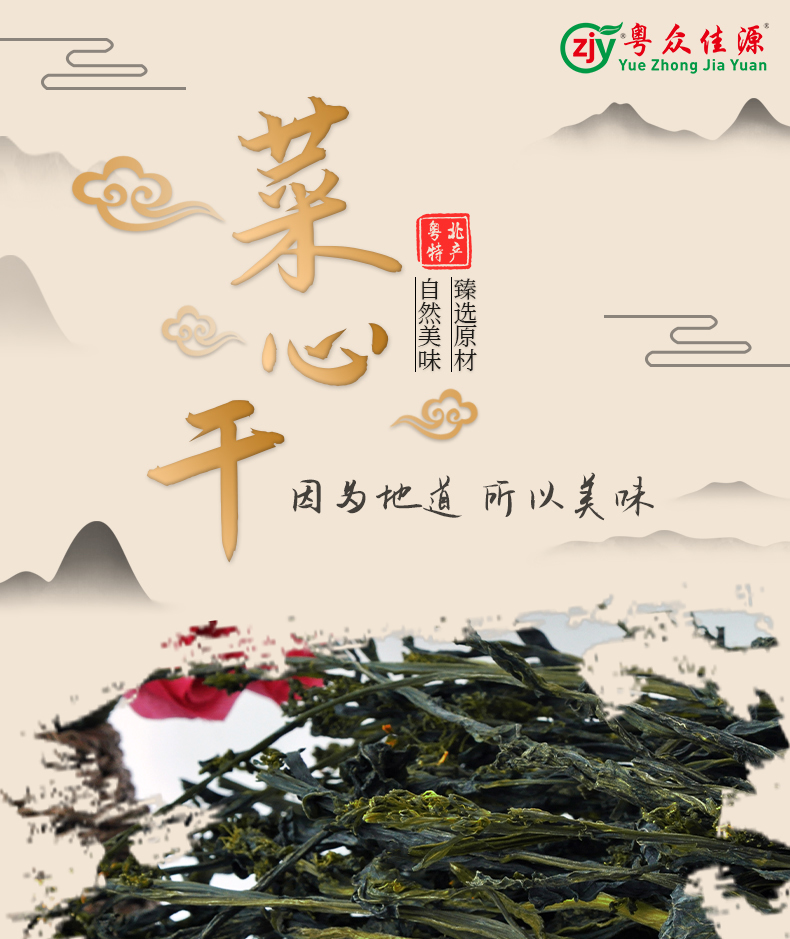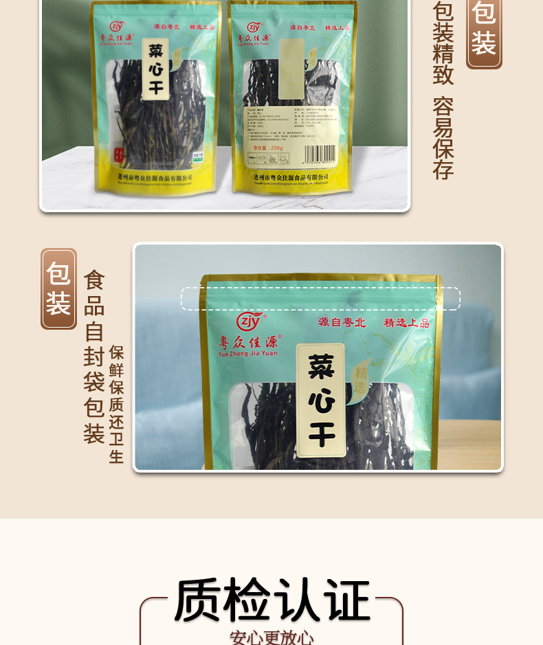 连州粤众佳源菜心干八边封自立袋250克蔬菜干制品