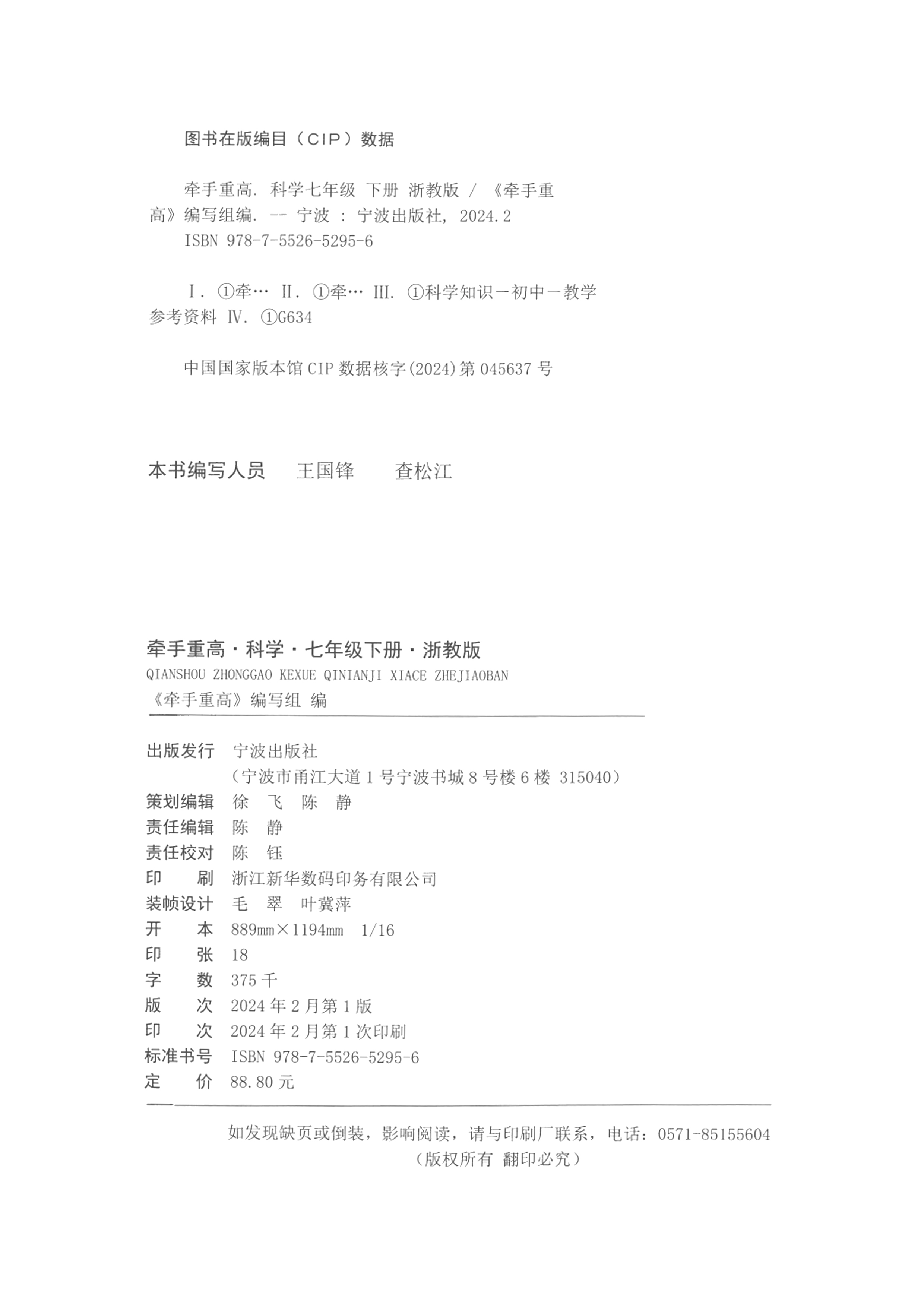 牵手重高 科学七年级下册 浙教版