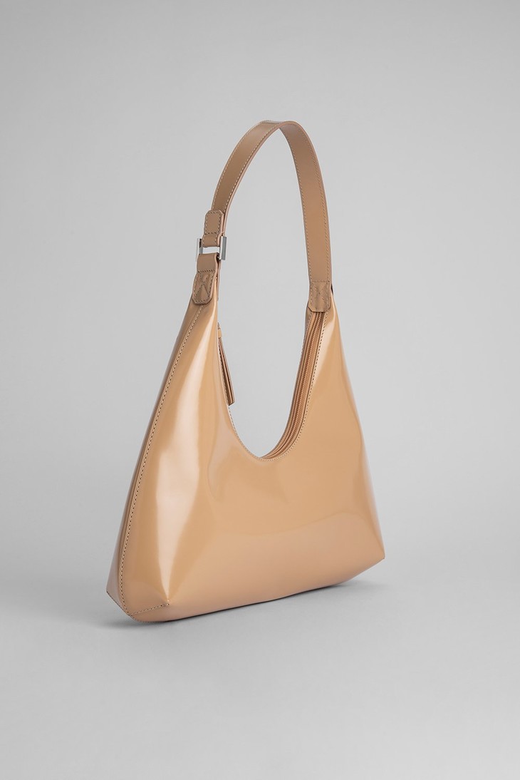 月牙形的弧形包口打破了扁平的线条,充满摩登感,扩大了包身容量的同时令包身更显小巧。包内夹层设计,方便使用。选用质地挺括的牛皮制作。