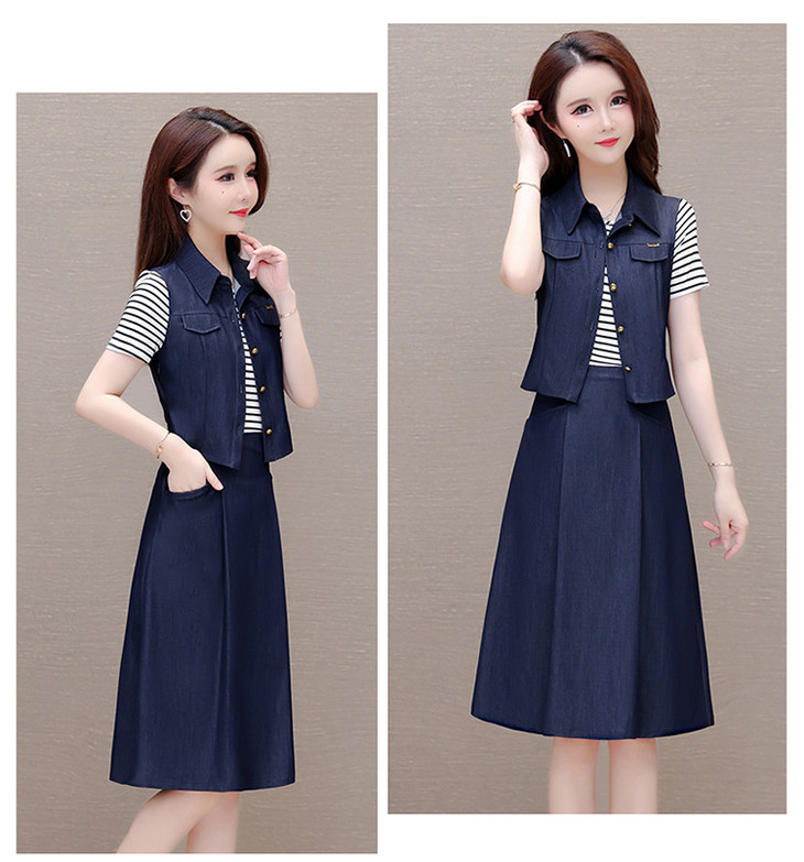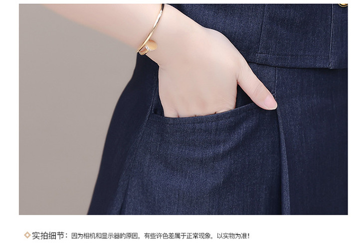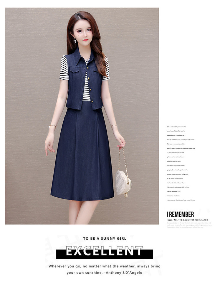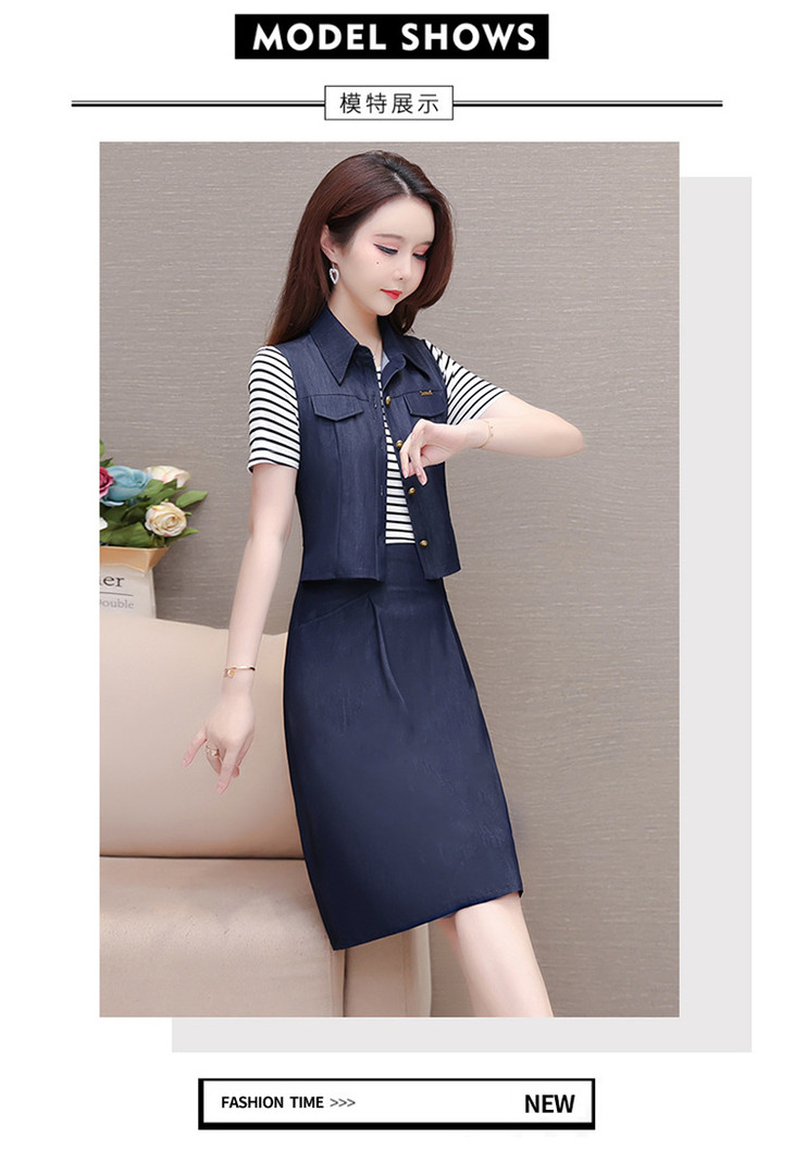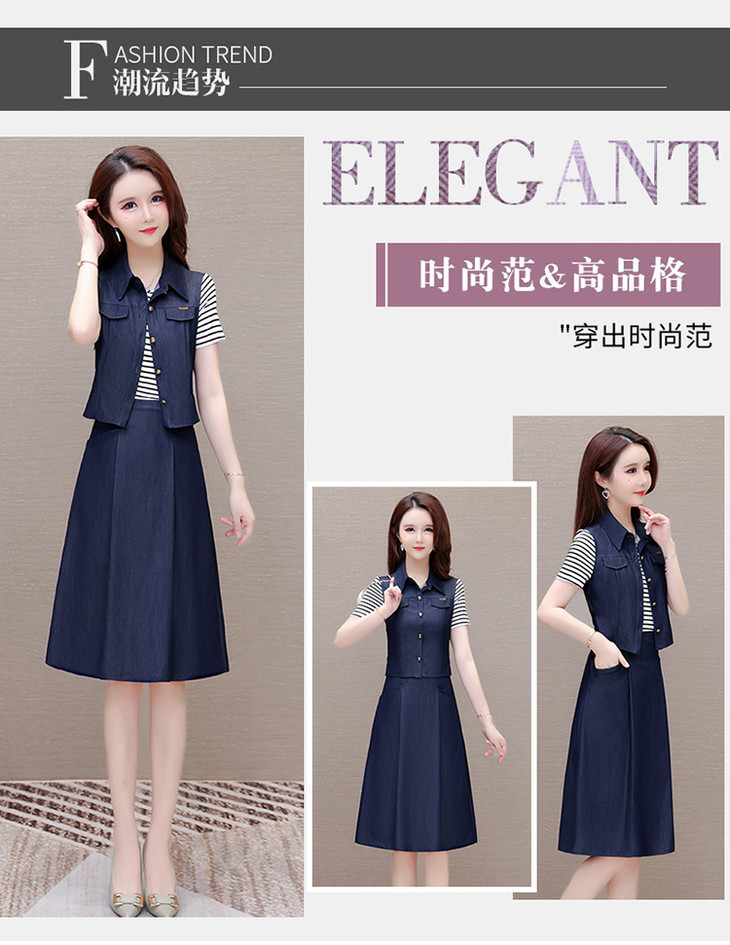 QYMOMS-YQA417-L-2024年夏款中长款条纹短袖拼接时尚连衣裙POLO领显瘦假两件A字裙