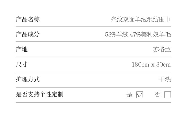 180x30cm 羊绒/毛混纺围巾 宽条纹 碳灰色