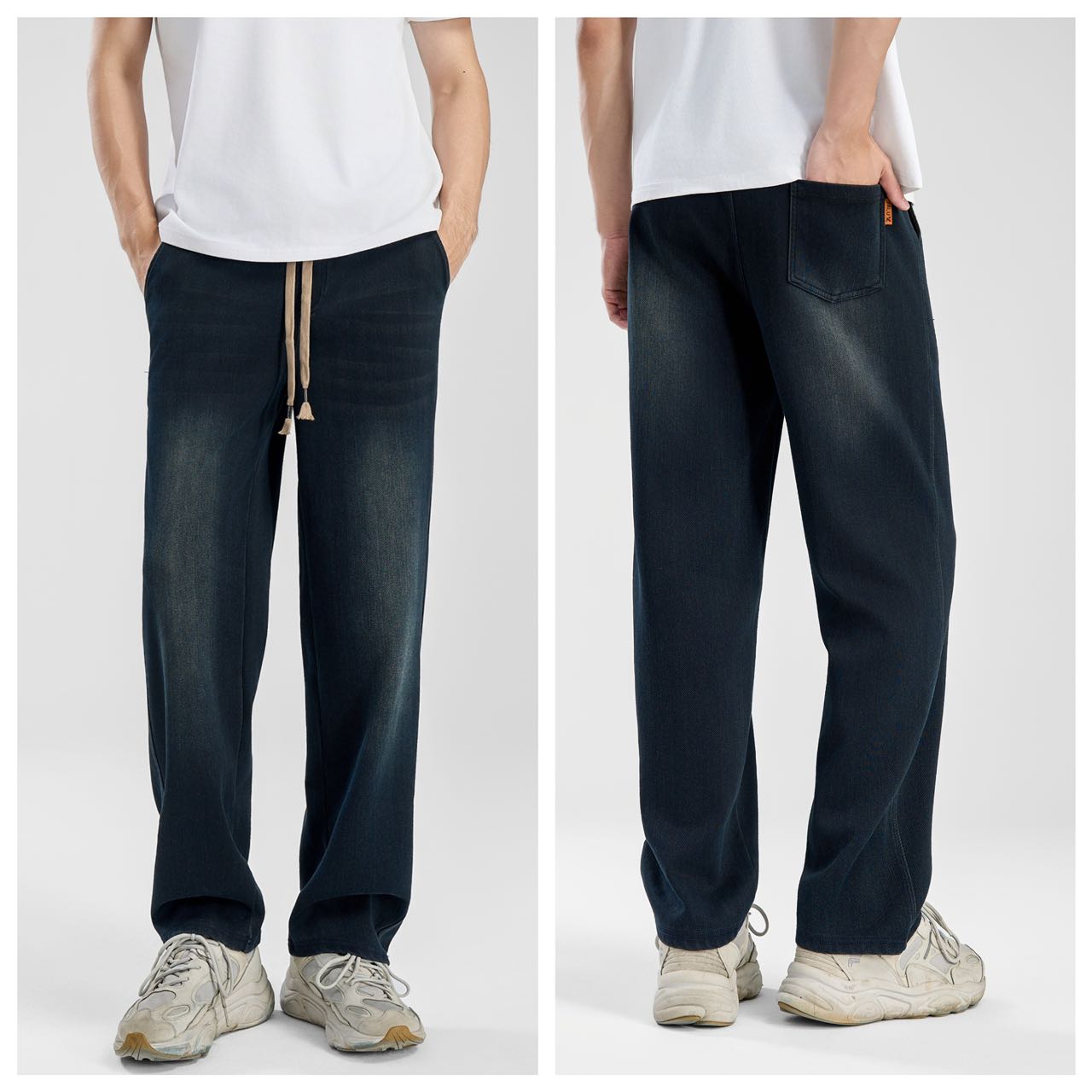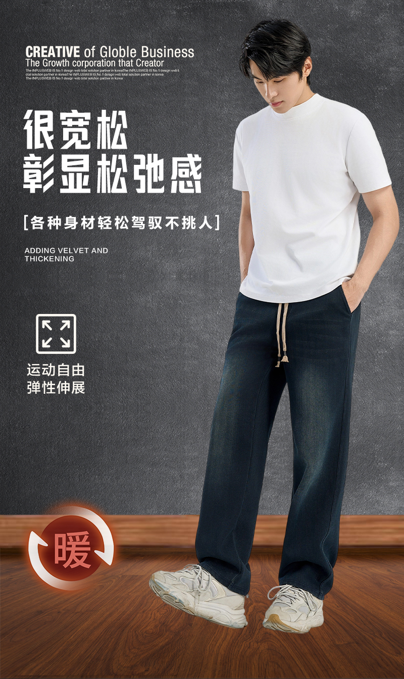 【雅鹿 男士直筒加绒牛仔裤】常规款/加绒款,蓝色/黑色可选,软而有型,贴身舒适不磨肤,弹力腰头,挺括舒适超百搭!