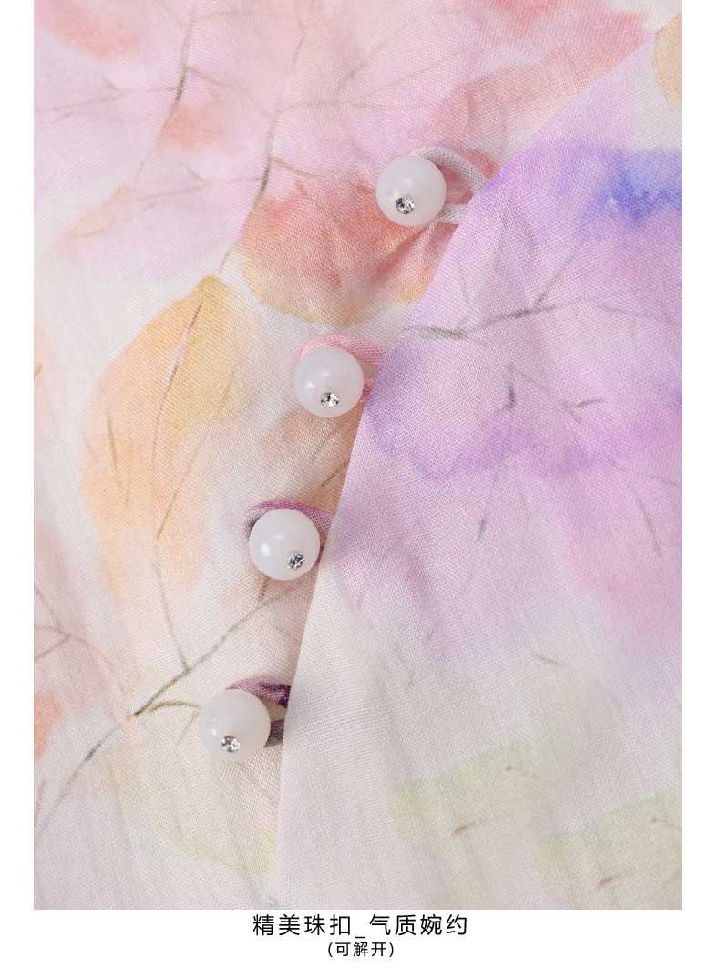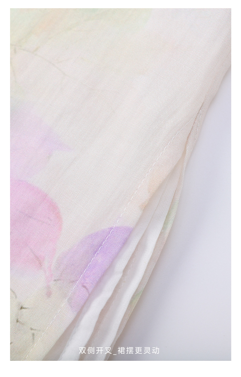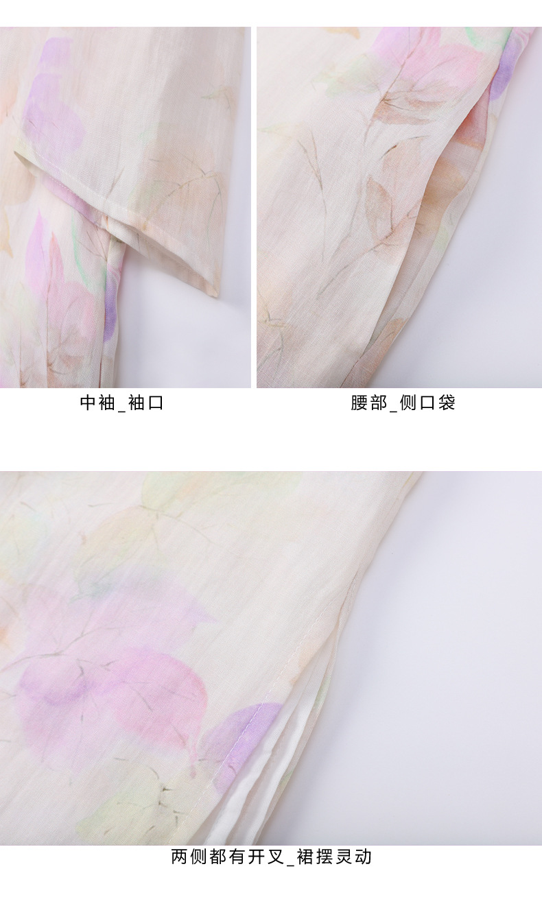 HM-S234-3春夏新款原创文艺立领苎麻印花改良旗袍侧开叉复古素雅连衣裙
