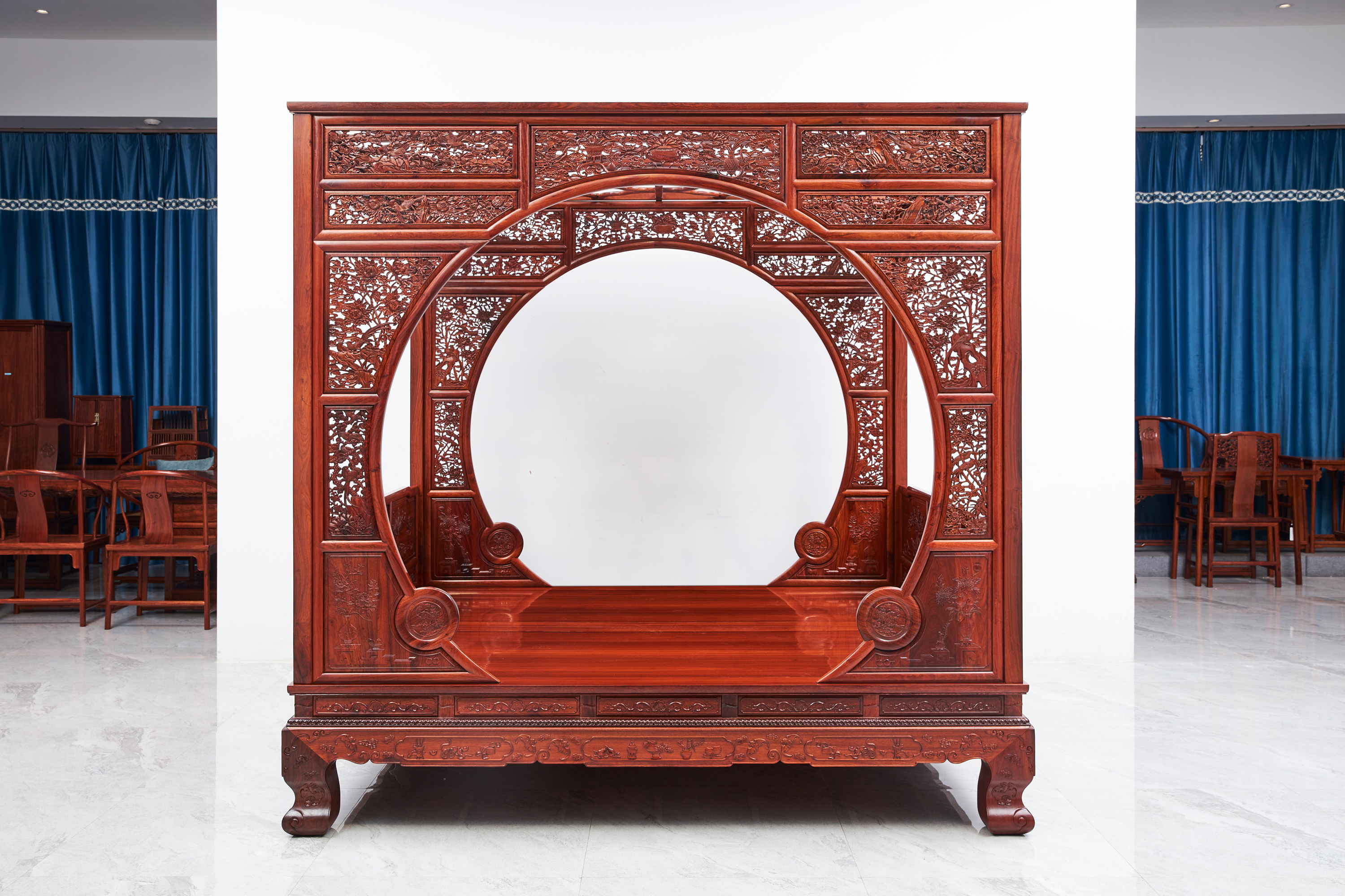 双月洞架子床便是取此意像,圆中有圆、空旷深邃,故又名“月亮门”。