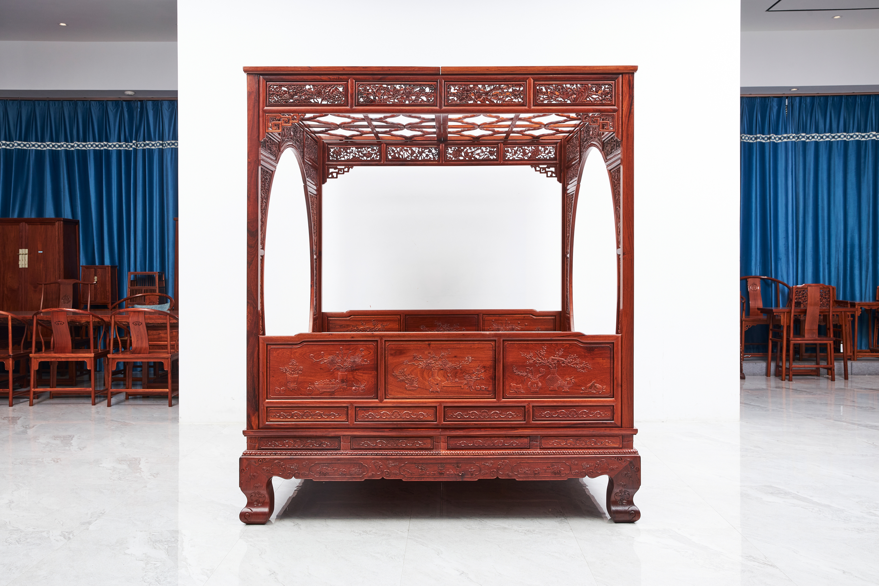 此例架子床制作精细、堂皇雍容,正适宜半生相共。