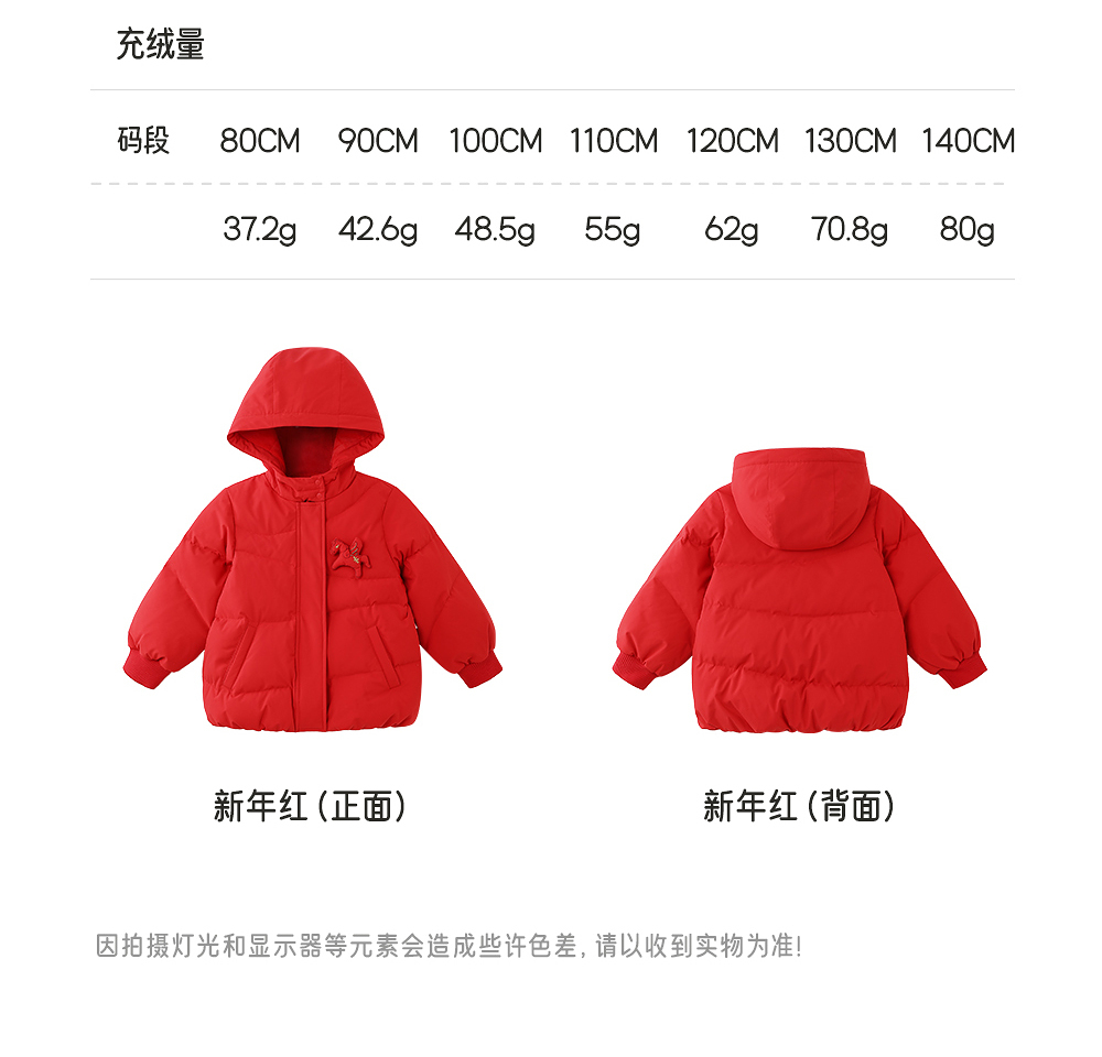 【商场同款】英氏儿童羽绒服短帽外套秋冬保暖防寒新年喜庆新款