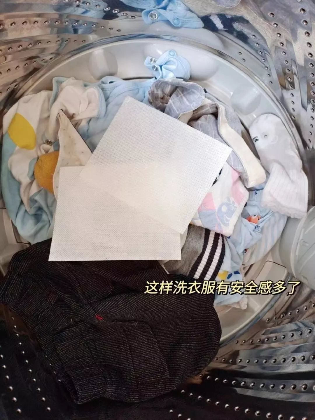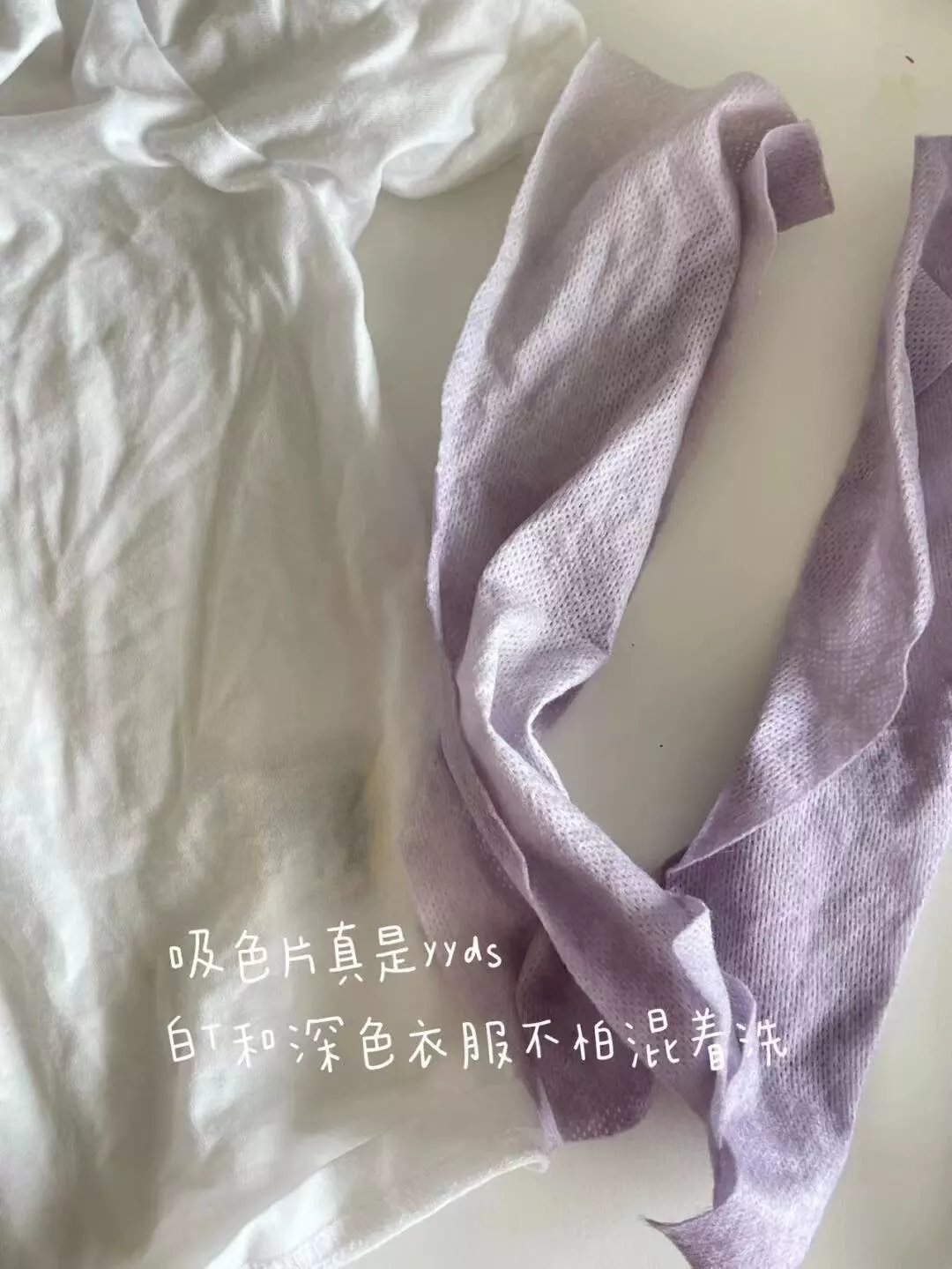 它能够在机洗衣物掉色时,把掉落的染料吸附