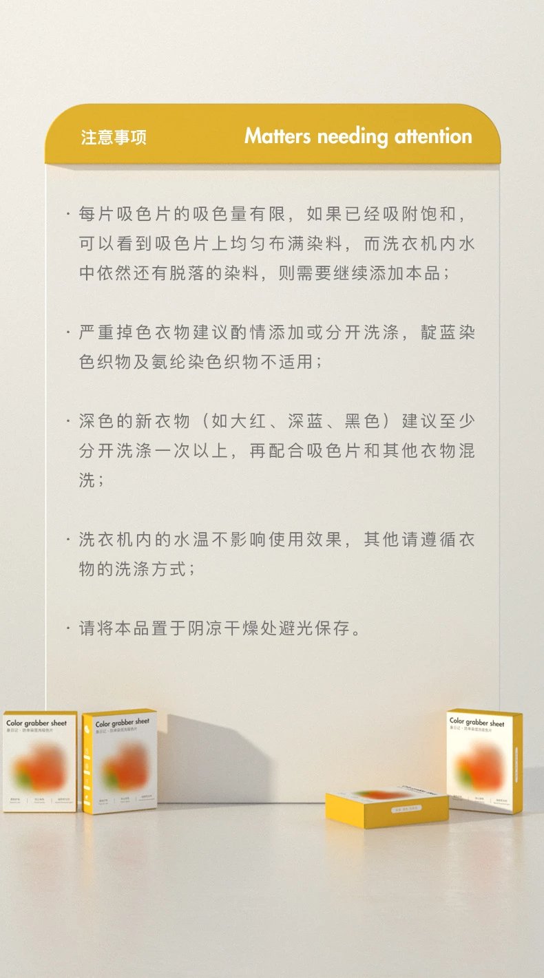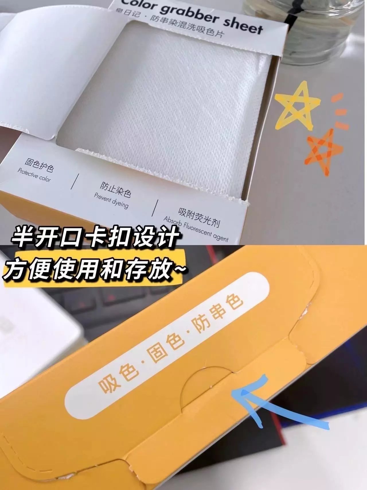 用法也超简单的每次从黄灿灿的包装盒里抽取1~2片(多颜色的衣物放3~4片)