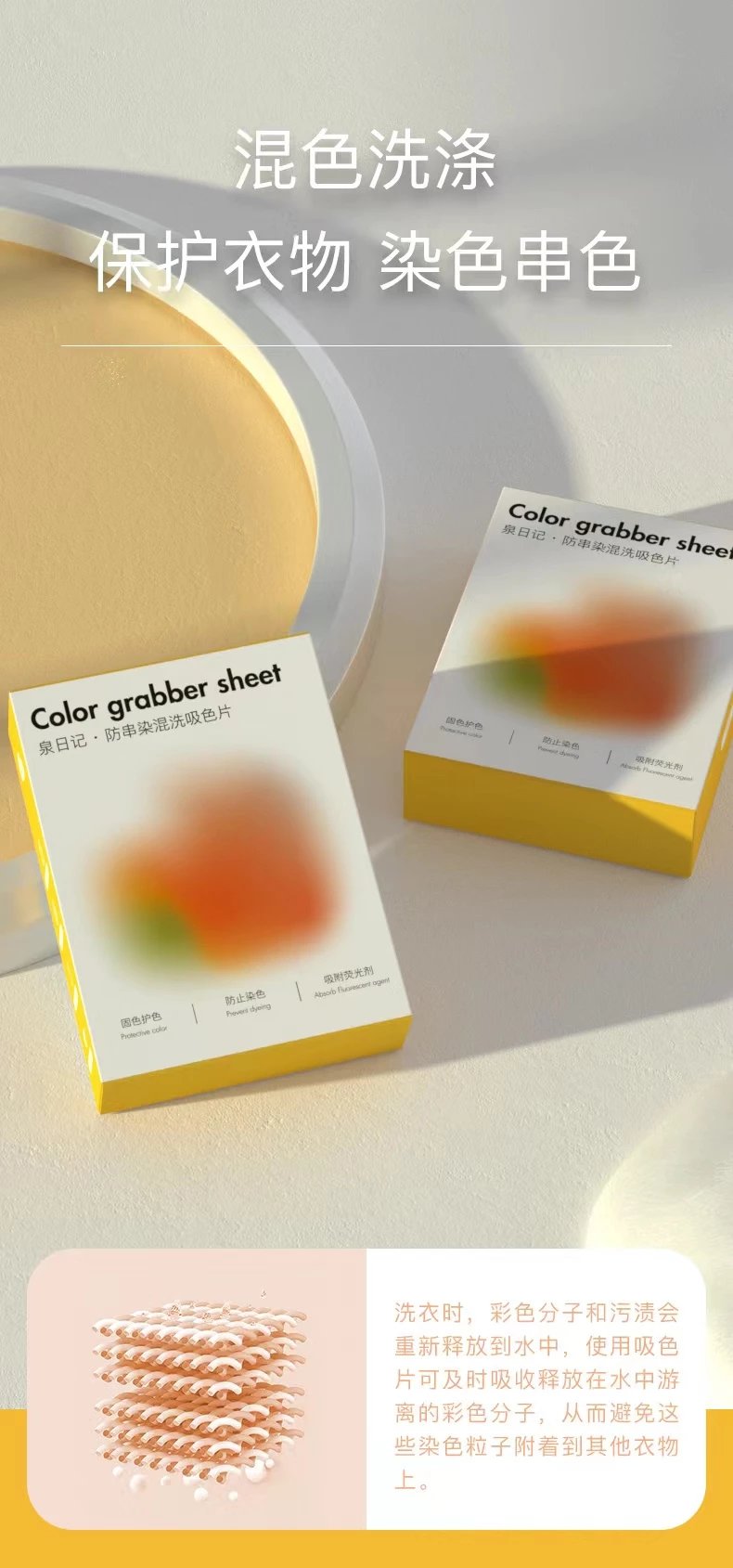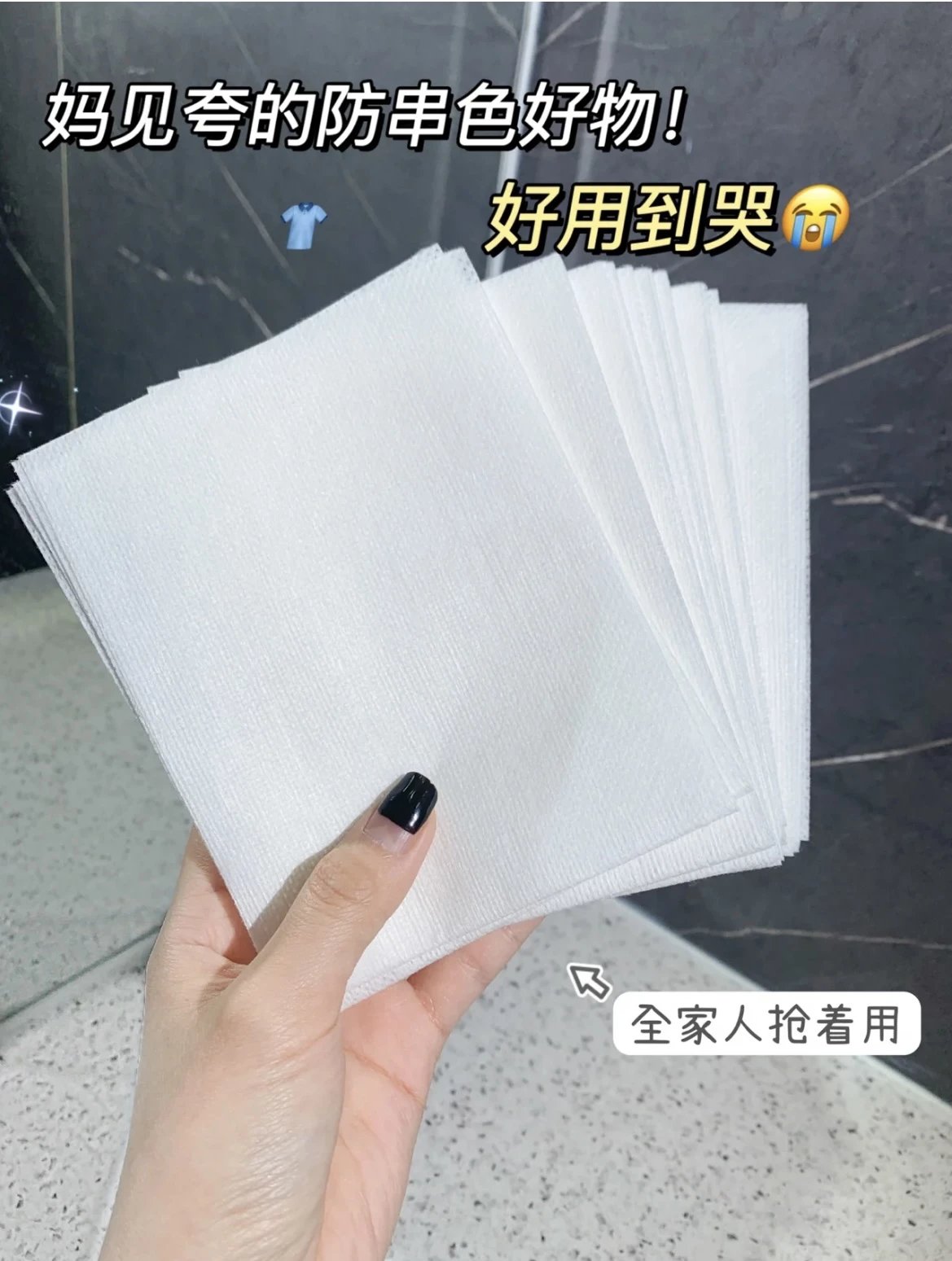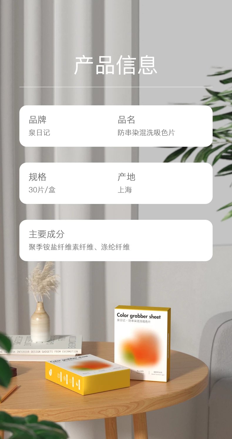 泉日记 · 防串染混洗吸色片,洗衣必备神器!✅不添加化学成分,可吸附荧光剂 ✅环保材质,即用即抛 ✅固色保护,防止多色混洗衣物染色