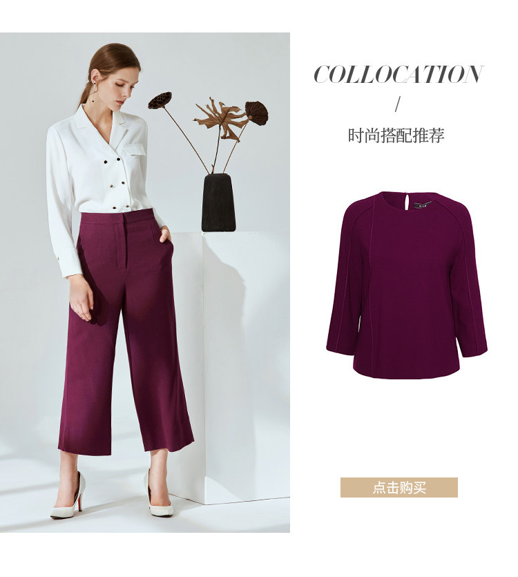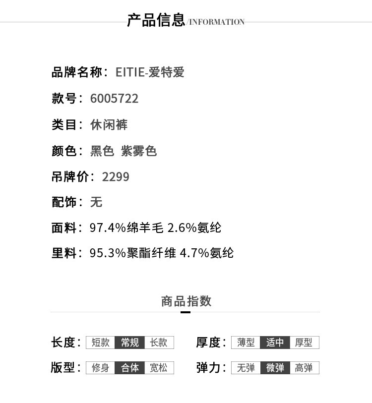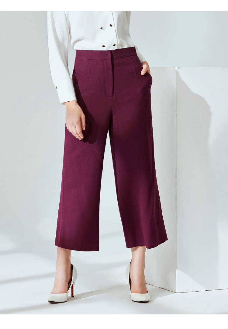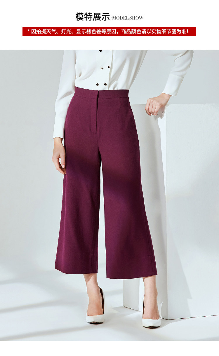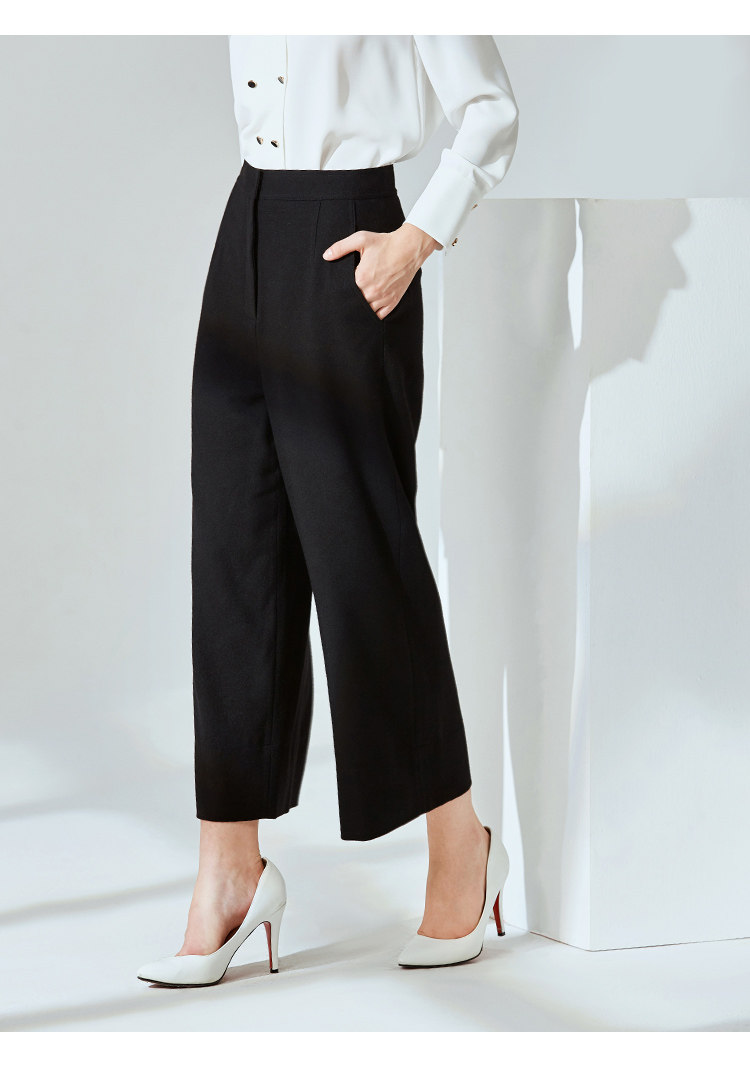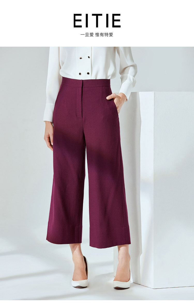 EITIE爱特爱冬季新款通勤职业显瘦羊毛九分裤阔腿裤休闲裤女6005722