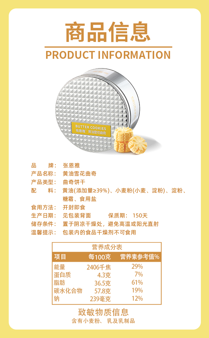 【产品名称】张恩雅·黄油雪花曲奇