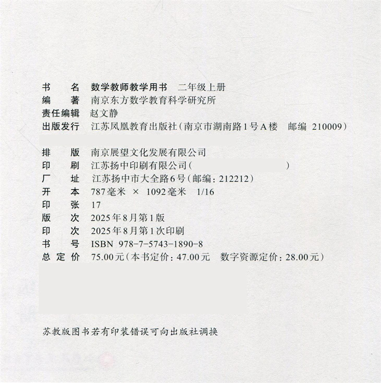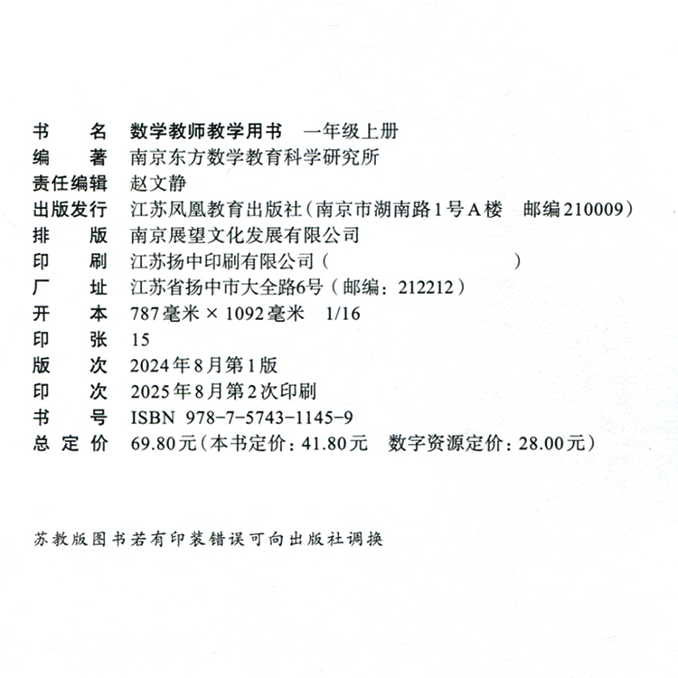 2025年秋 数学教师教学用书 一二三年级上册任选 教师用书 苏教版 123上 含资源码 小学数学 江苏凤凰教育出版社
