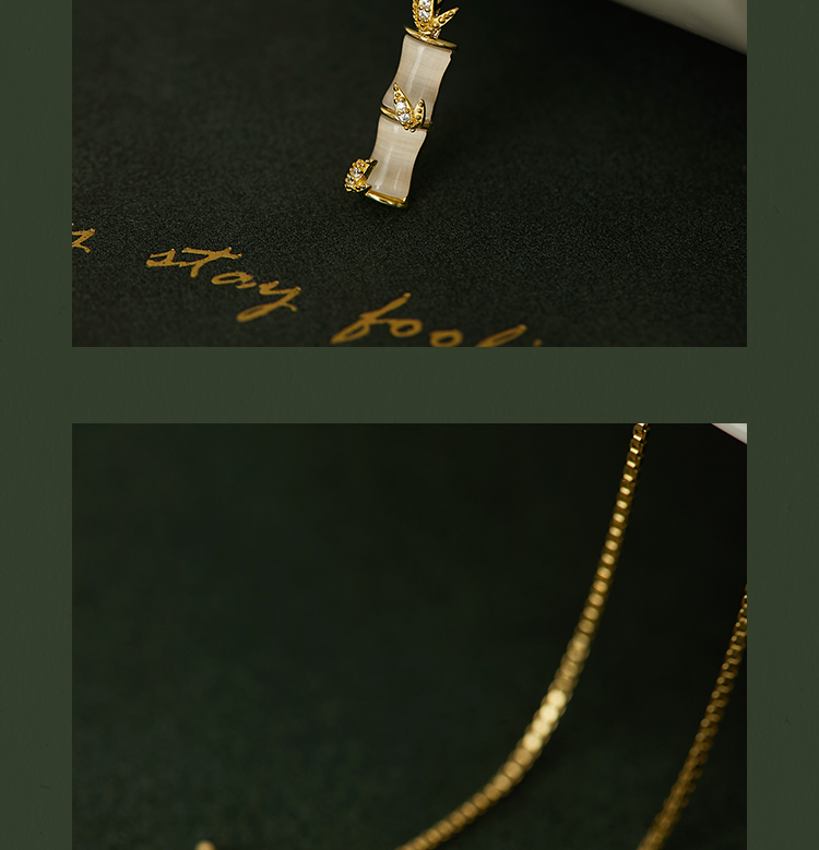 Oflye潮流饰品 S925银项链女气质百搭竹吊坠轻奢锁骨链小众设计感时尚百搭饰品