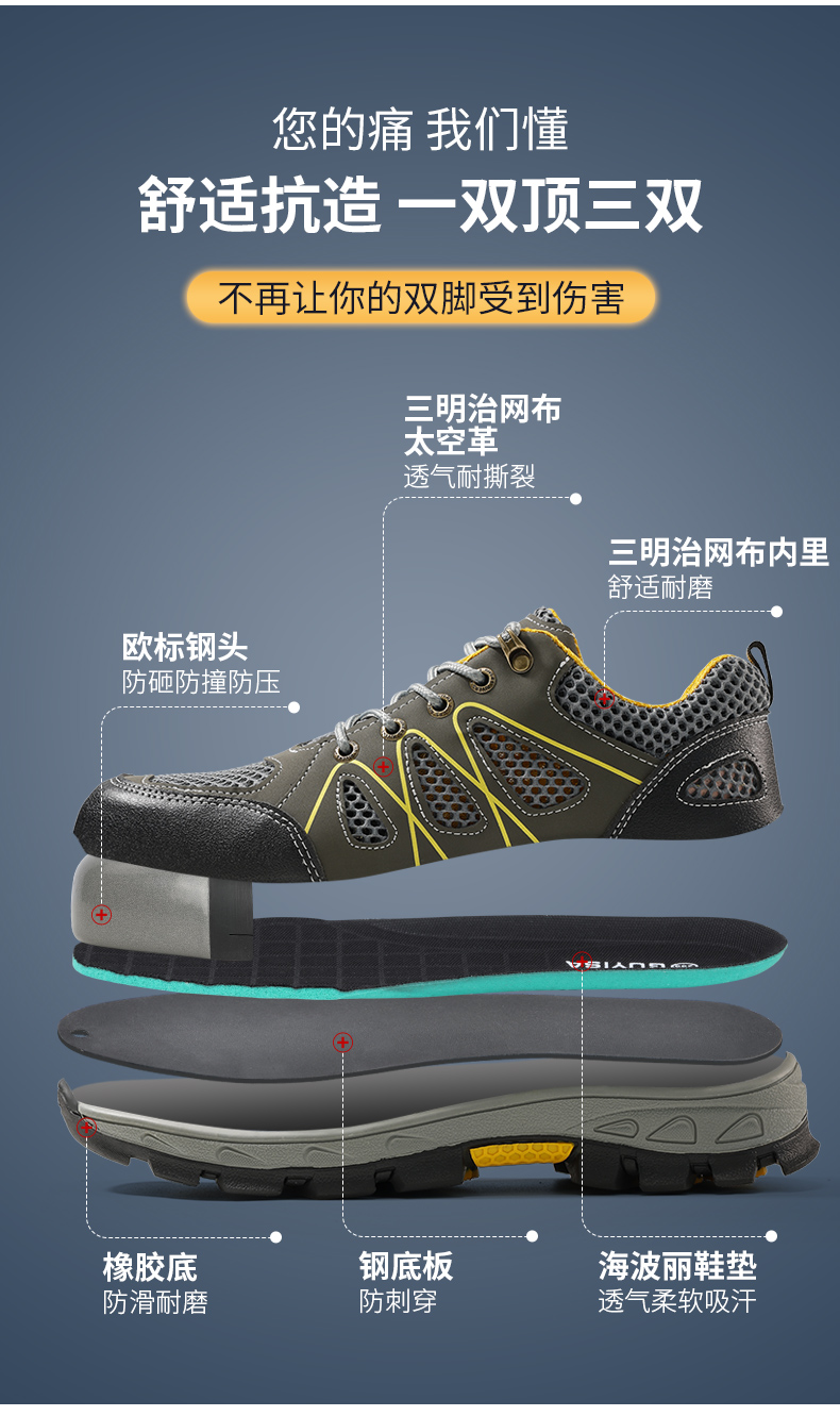 劳保鞋男防砸防刺钢包头钢中底夏季透气安全鞋功能鞋