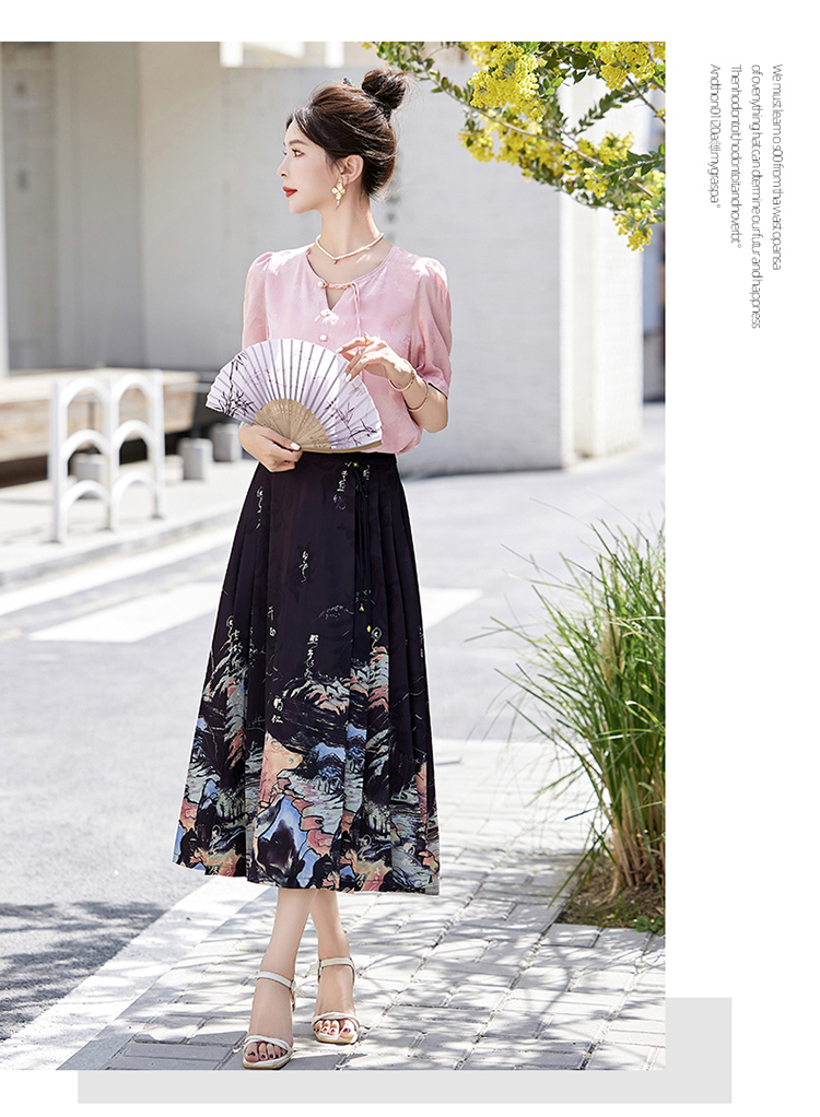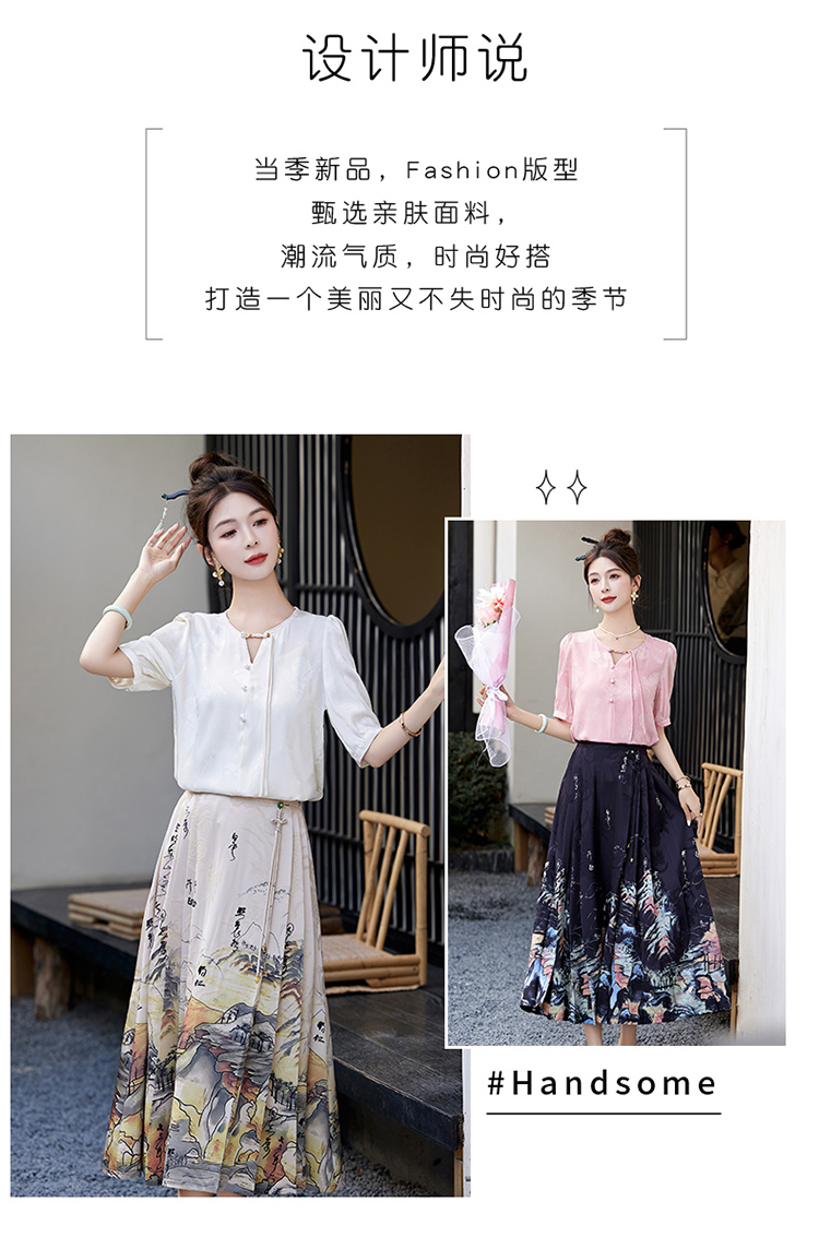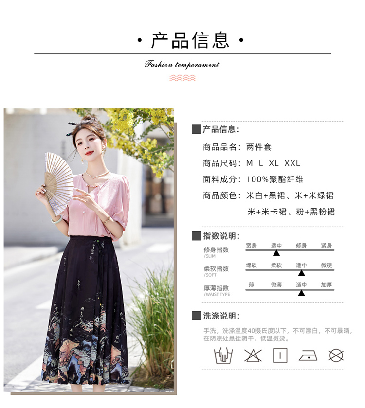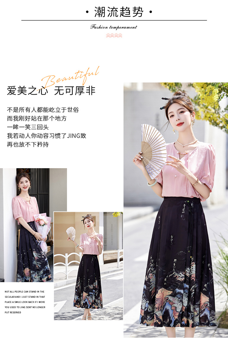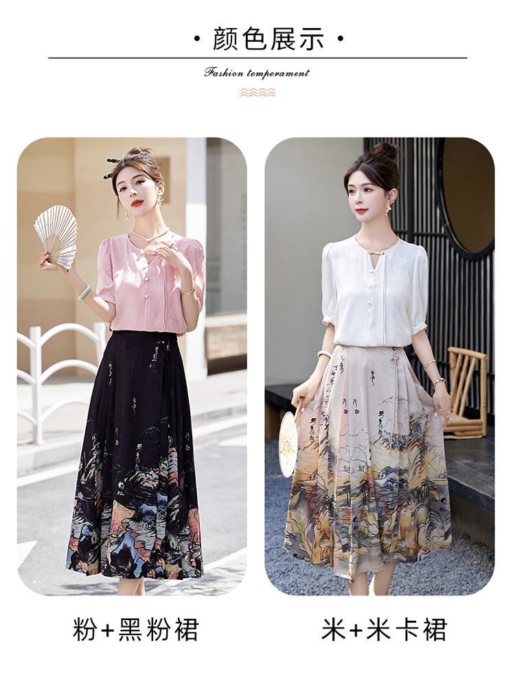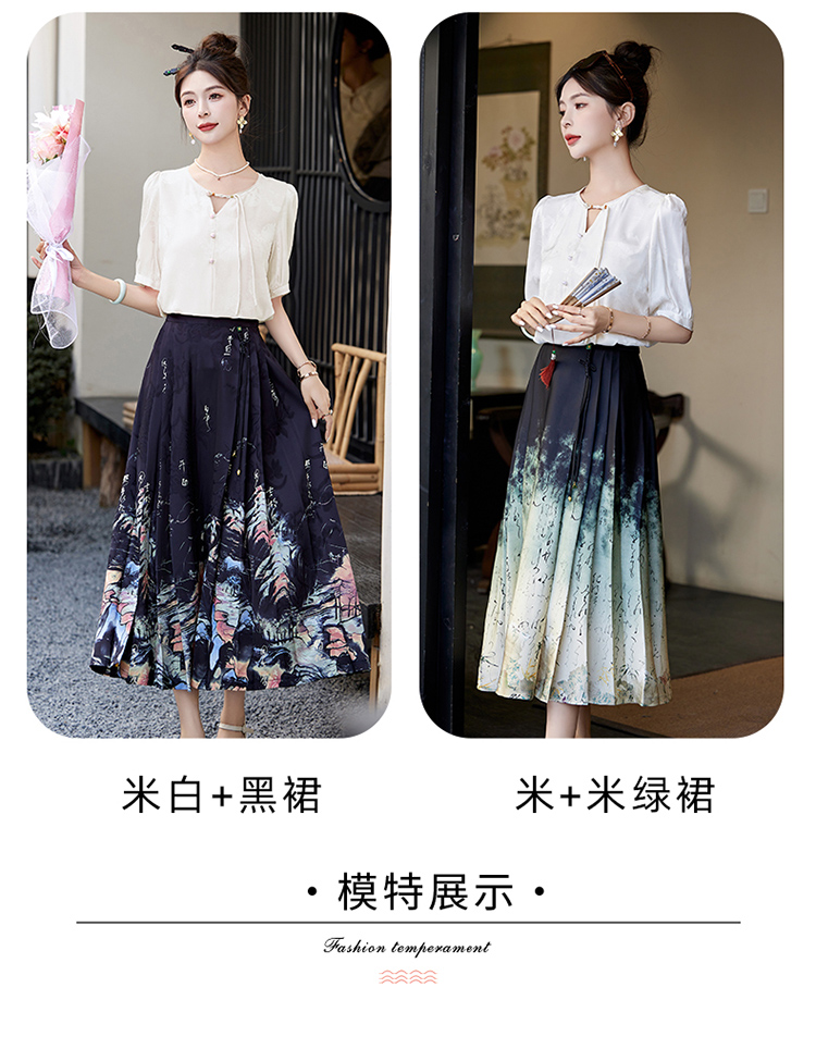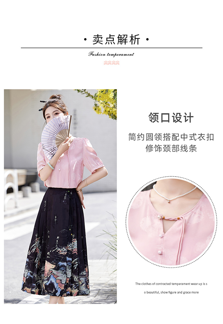 简约新中式,圆领上衣搭配马面裙两件套HR-SNX2936-2
