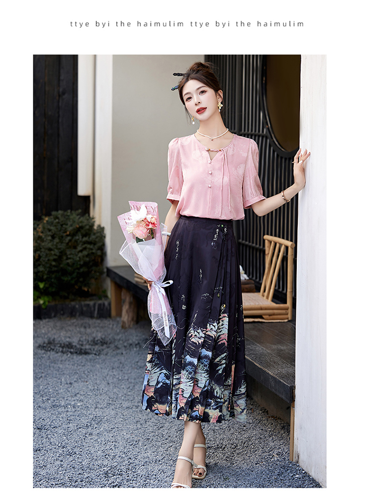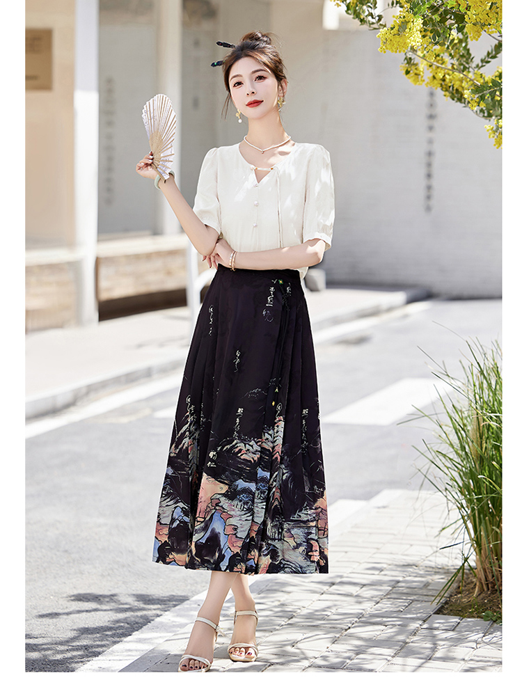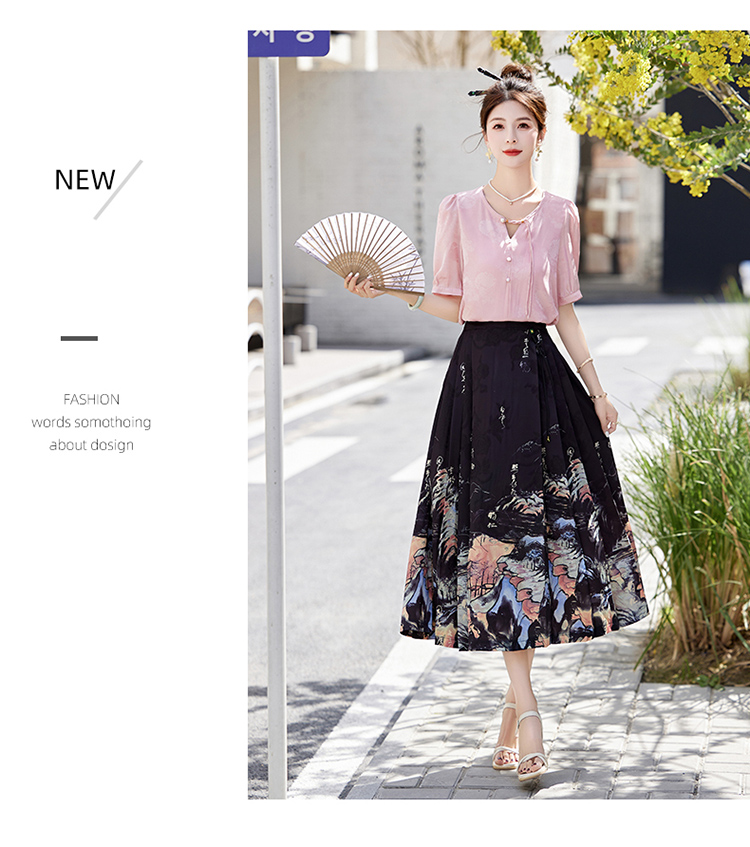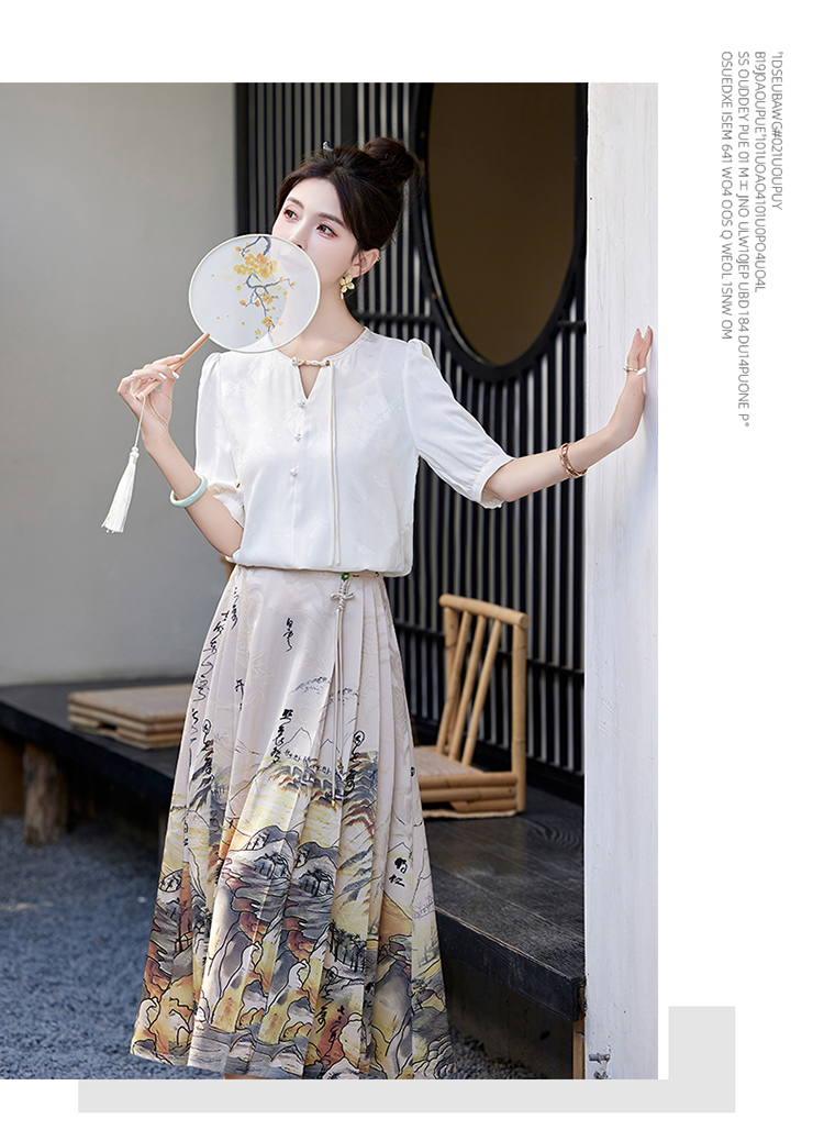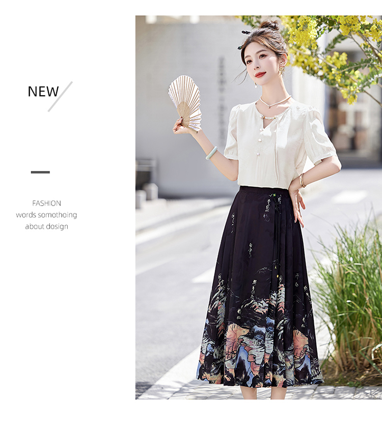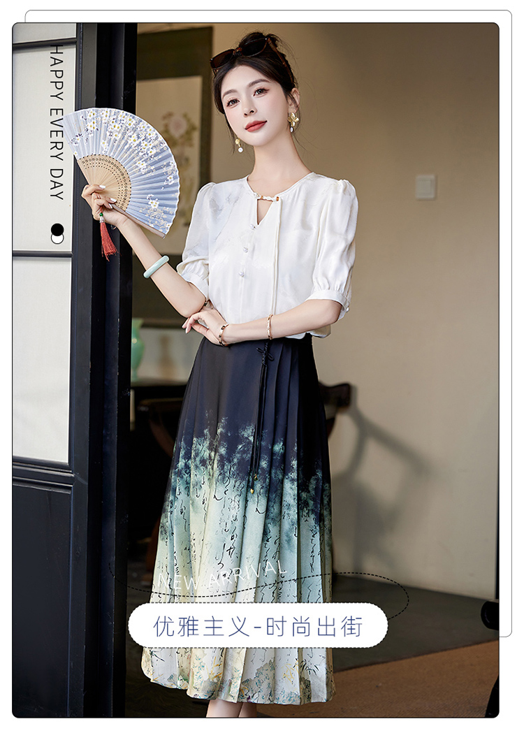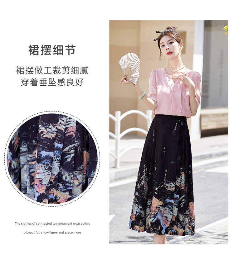 简约新中式,圆领上衣搭配马面裙两件套HR-SNX2936-2