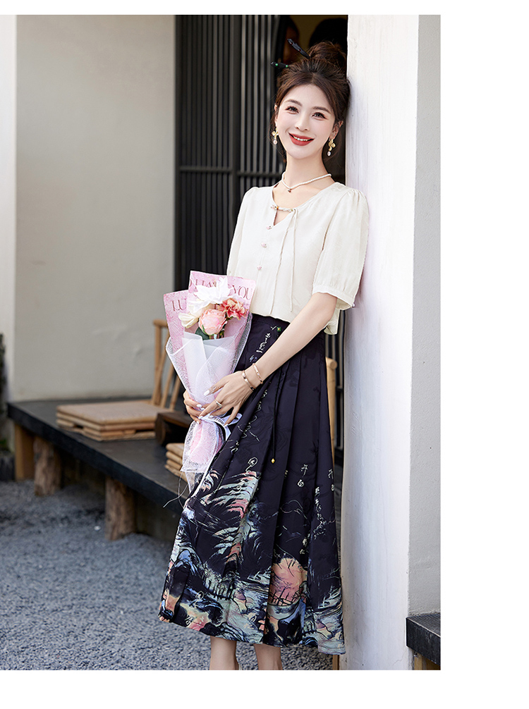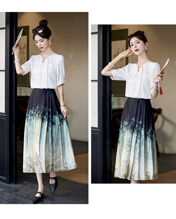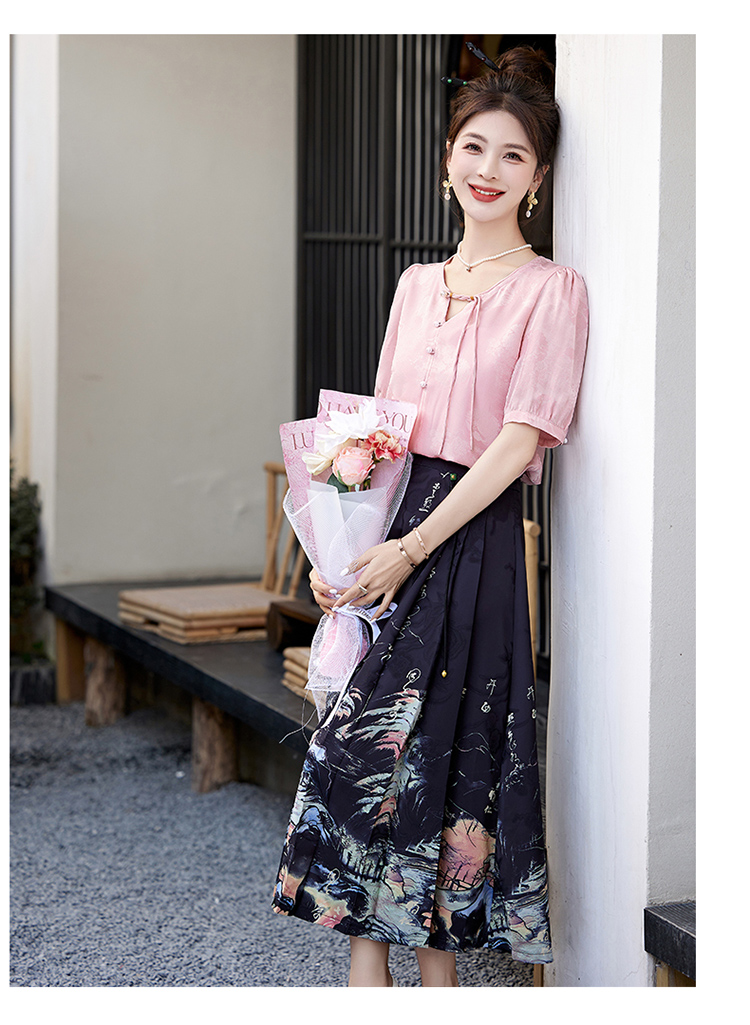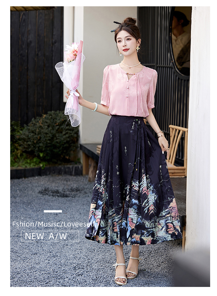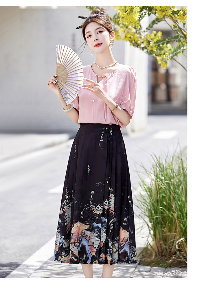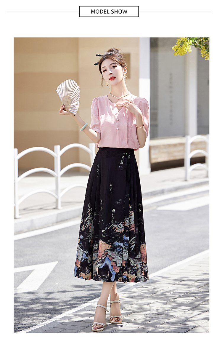 简约新中式,圆领上衣搭配马面裙两件套HR-SNX2936-2