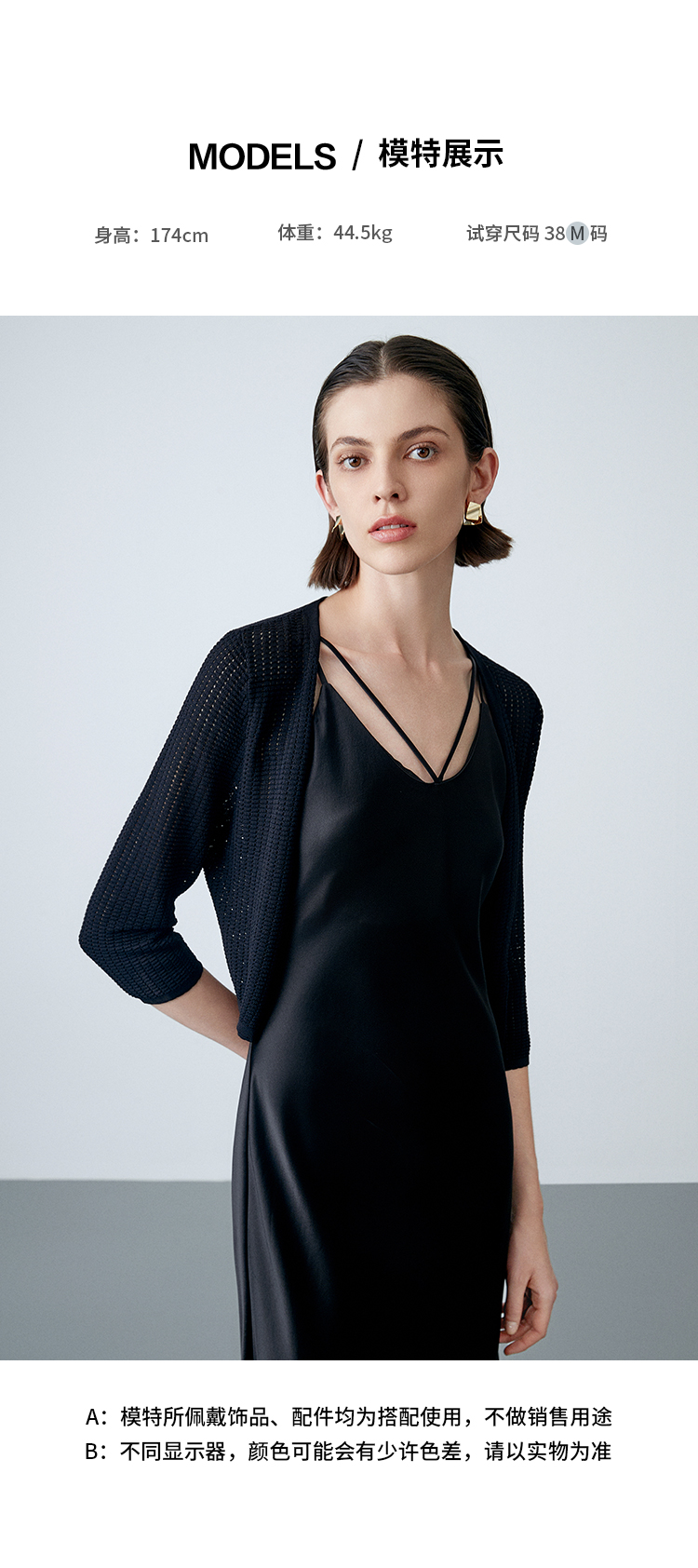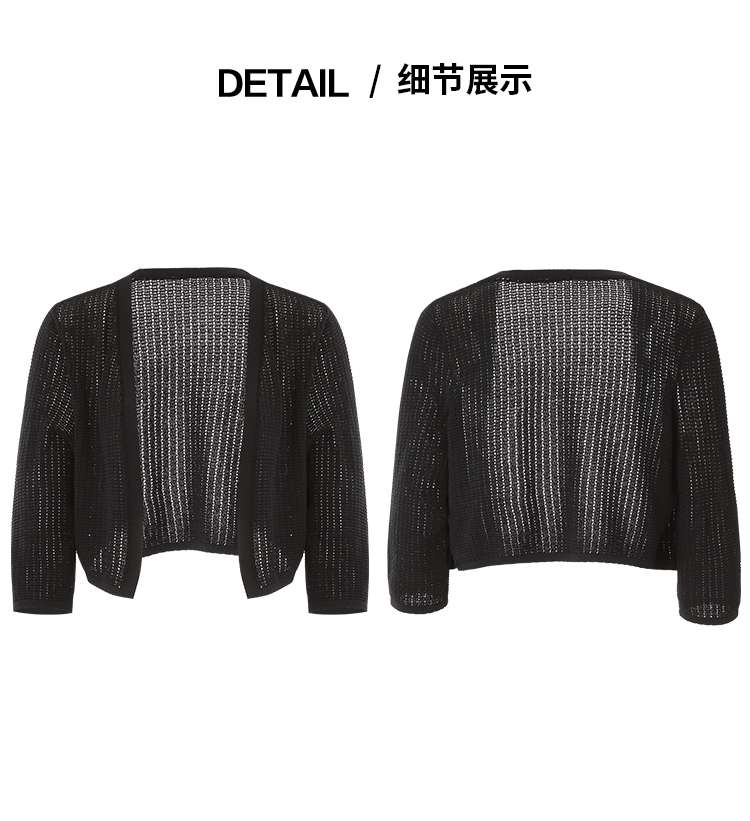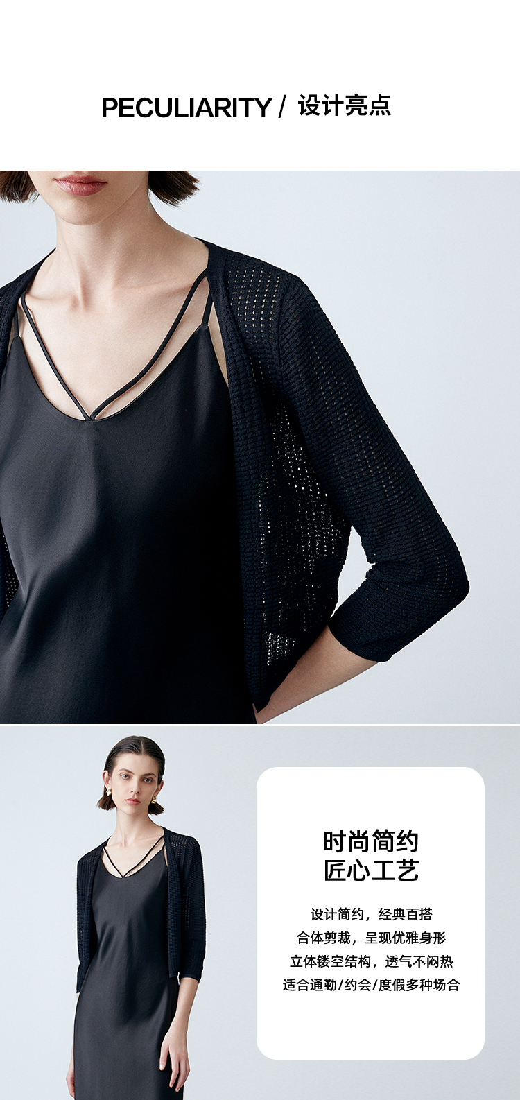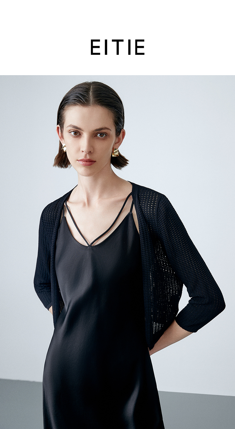 EITIE爱特爱夏季新款通勤纯色简约薄透针织开衫7801508